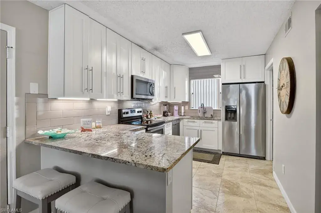 Welcome to your beautifully remodeled Oasis in the heart of North Naples, just minutes from upscale shopping, fine dining, and only 10 minutes to the beach. Enjoy breathtaking sunset views from your West-facing lanai, complete with stylish tile flooring and premium Hunter Douglas sunshades for ultimate comfort.