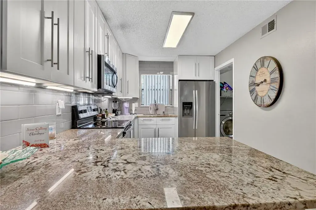 Inside, sophistication meets modern convenience: Fully Furnished and a Gourmet kitchen with 42″ cabinets, granite countertops, Bosch dishwasher, and LG stainless washer & dryer. The Master Bedroom features a walk-in closet and remodeled Bath with Standup shower. The Guest Bedroom also has a Walk-in Closet and remodeled Bath. The entire condo boasts all-new flooring, fresh paint, and is offered fully furnished—move-in ready.