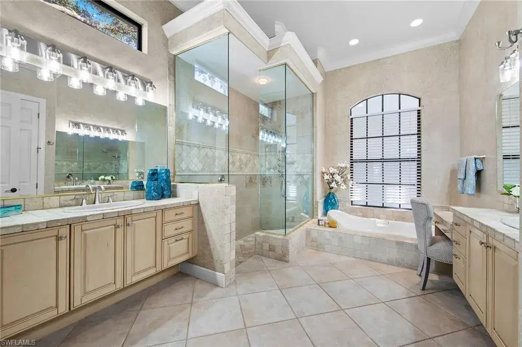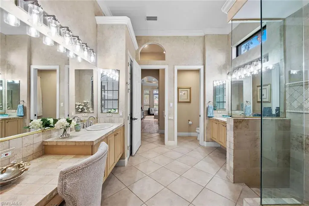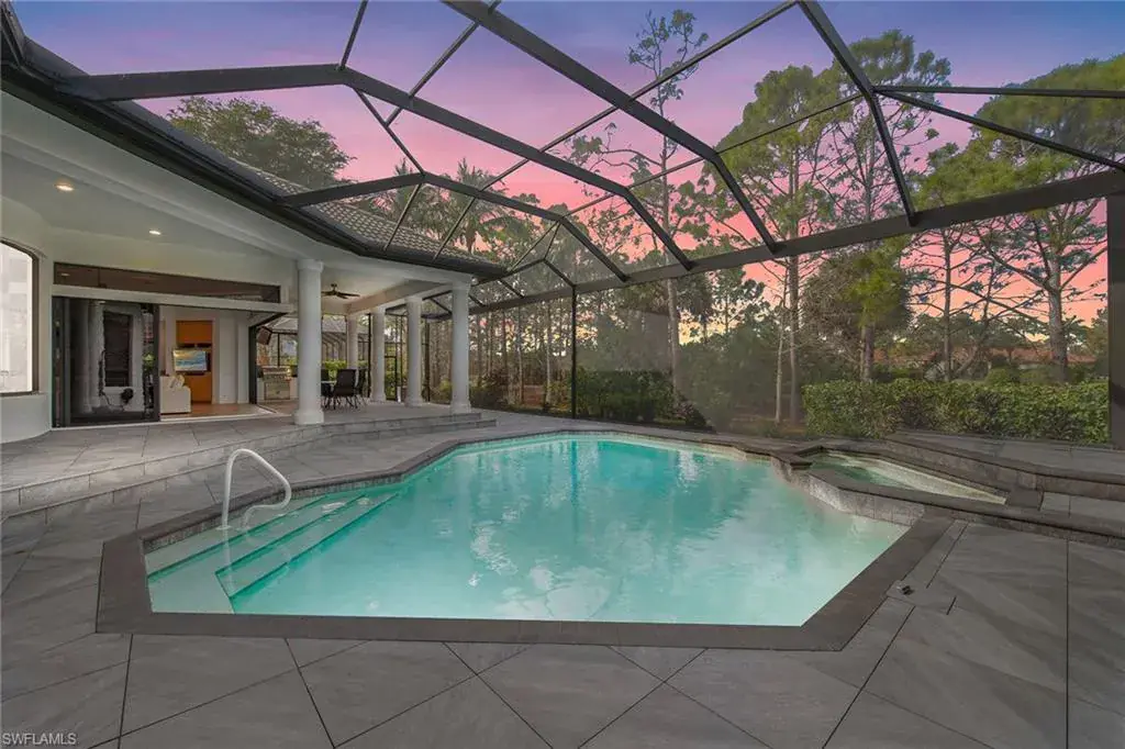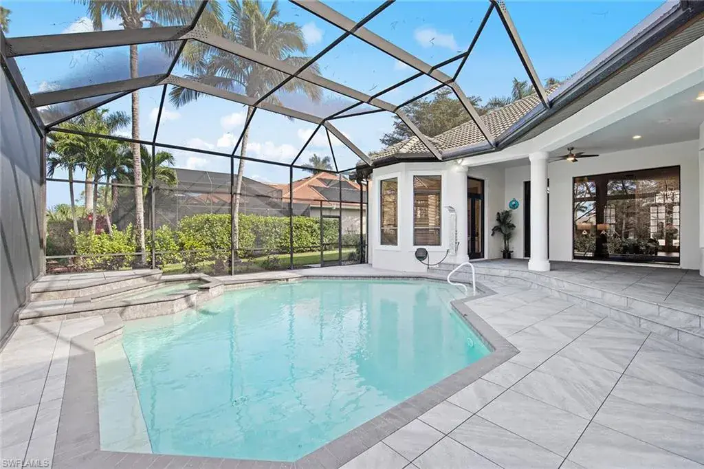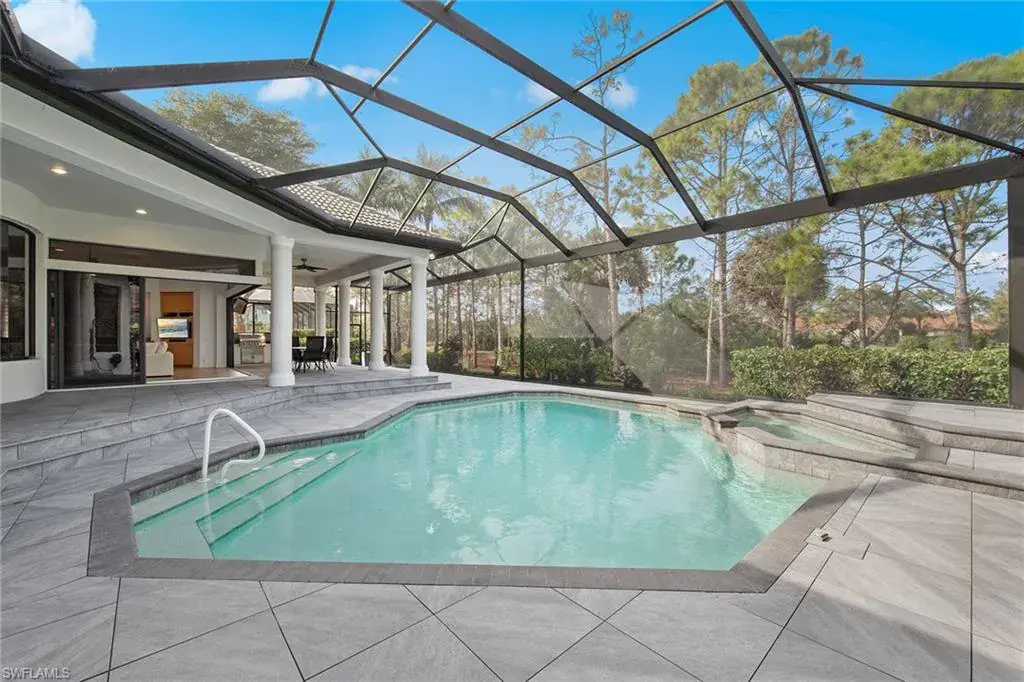 Discover this exceptional home, offering golf course views and lush landscaping for added privacy. As you step inside, you’ll be greeted by a bright and airy open floor plan with stunning views leading to the expansive lanai. This residence features four generously sized bedrooms, each with its own en-suite bath, including a separate casita ideal for accommodating out-of-town guests. The gourmet kitchen, complete with abundant cabinetry, overlooks the large great room, making it the perfect space for both casual living and entertaining. Recent upgrades include a newly paved driveway, updated lighting, a new HVAC system and a new pool heater. The lanai has been enhanced with new tile and a picture-frame screen, offering an ideal space to unwind while enjoying panoramic golf course views and breathtaking sunsets. Olde Cypress is a first-rate private country club with a P.B. Dye designed golf course with no wait list and a very active social calendar.