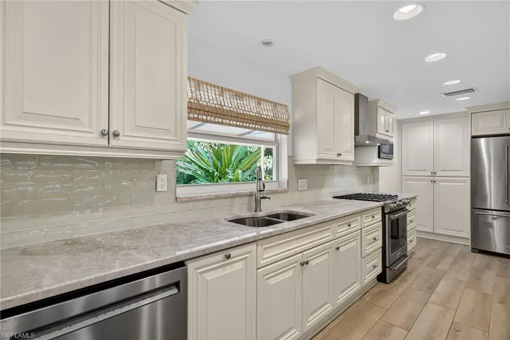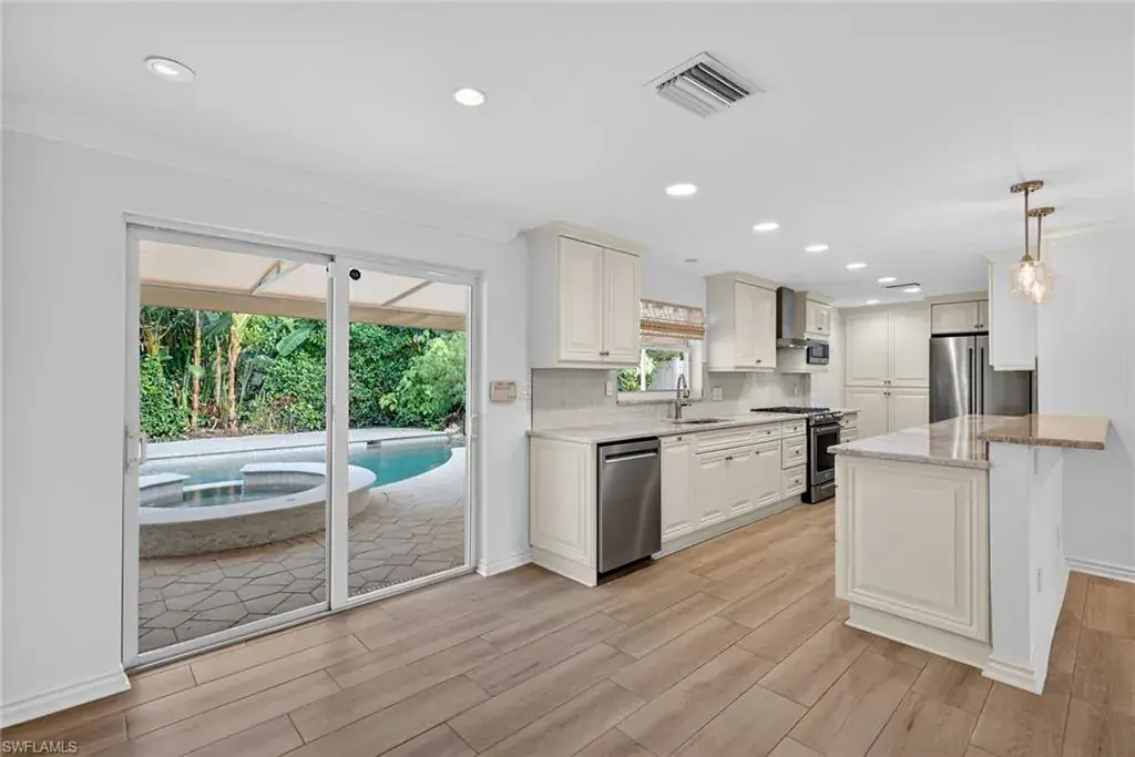 Welcome home! This FULLY RENOVATED 3-bedroom, 3-bath WATERFALL POOL W/ SPA home is nestled in the heart of Old Naples—one of the most desirable locations in all of premier Southwest Florida. Located 6 blocks to 5th Ave, 4 blocks to 3rd Street, 7 blocks to the beach and pier, and just down the street from Cambier Park, this home is sure to satisfy everyone! Tons of upgrades include: propane tank, new Generac generator, remodeled pool deck, tankless water heater, 2024 AC w/ raised air handler, mature landscaping with tall palm trees, pool heater, rain bird irrigation, plantation shutters, high end kitchen aid appliances, granite countertops, tile throughout, modern landscape lighting, shiplap ceiling in the livingroom, ADT security system w/ motion sensors, epoxy garage floor, water filtration system, lap pool views from the master bedroom, tile throughout master bath with dual vanities & walk in closet, windows and doors replaced, sophisticated light neutral palette, and much much more. Beautiful and serene street will WOW you right away. Do not miss this opportunity for your shot at Olde Naples, right before season begins, here in Paradise. The adjacent lot is also available for purchase separately, and can be combined with this sale. Will not last long!