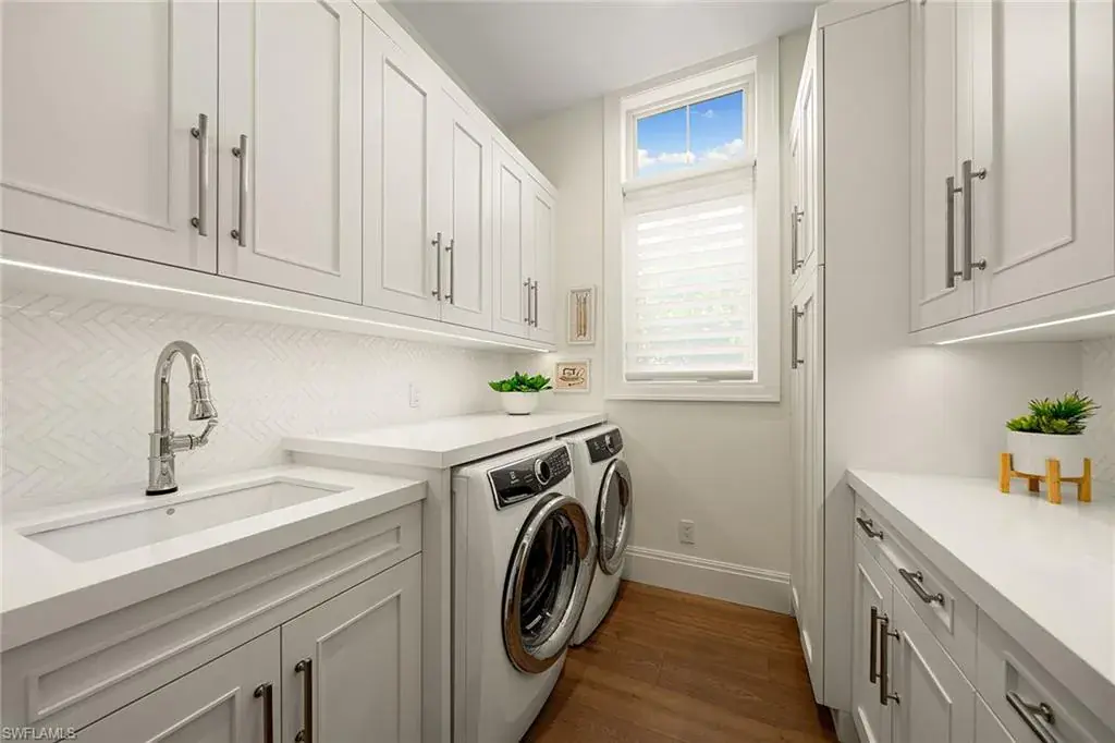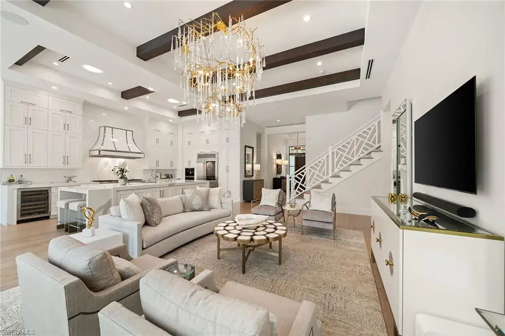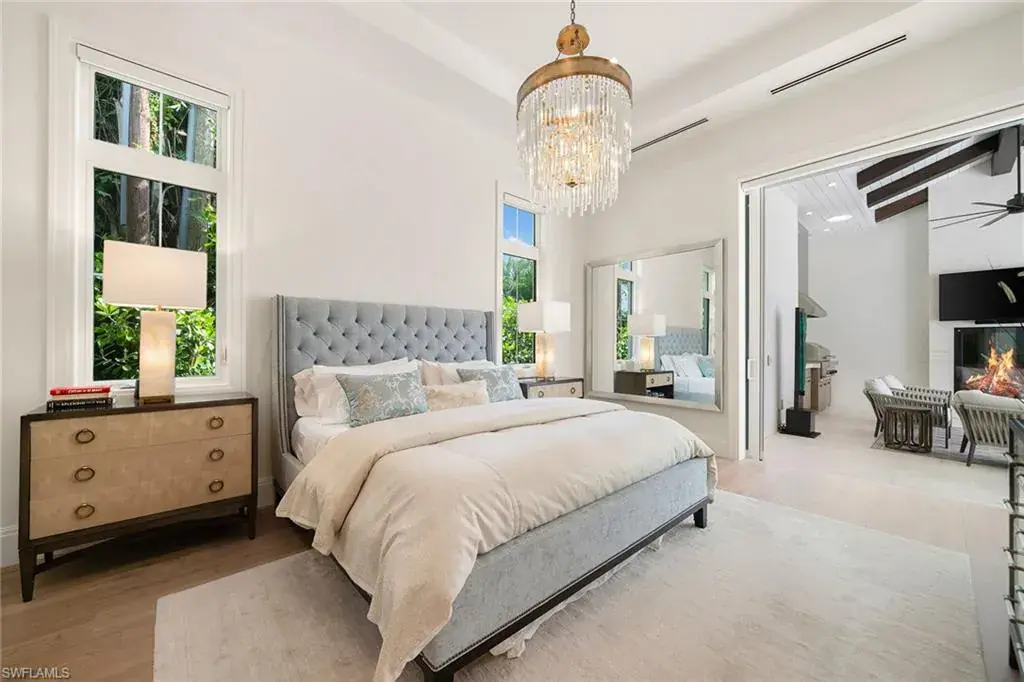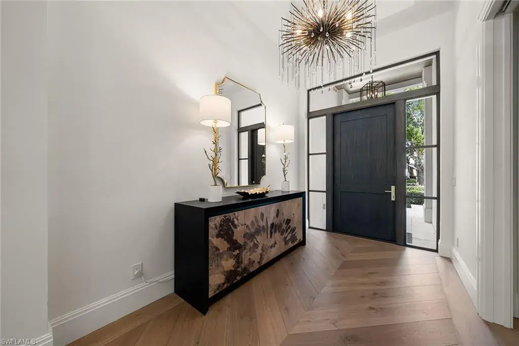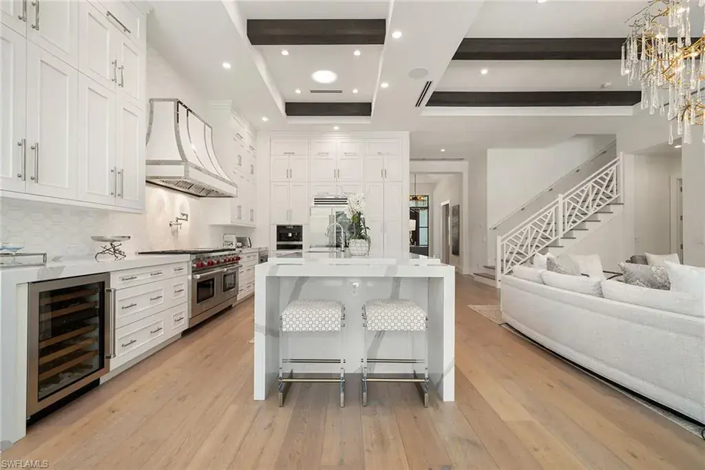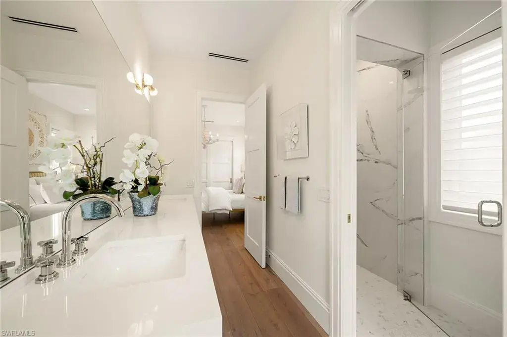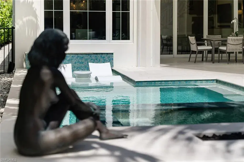 Meticulously designed and crafted to the highest standards, this exceptional residence combines timeless elegance with modern sophistication. Built in 2020, the home boasts wide-plank Legno Bastone hardwood floors, custom millwork throughout, and intricate ceiling details, providing a sense of refined comfort at every turn. The expansive, open-concept layout seamlessly integrates formal living areas with the serene Florida lifestyle. The first-floor primary suite serves as a private sanctuary, complete with three generously sized walk-in closets and a spa-like bath featuring a freestanding tub, dual vanities, and an oversized mother-of-pearl-lined shower. A private study, with its own en-suite bath, offers the perfect space for work or relaxation. Upstairs, the second primary suite is accompanied by a spacious loft and private balcony overlooking the lushly landscaped pool and spa. Plus, two additional guest bedrooms and bath provide the ultimate in comfort and relaxation. The private outdoor living area is an entertainer’s dream, with a tropical-inspired pool and spa, an outdoor kitchen, gas fireplace, and multiple seating areas surrounded by lush, meticulously curated landscaping. Designed for the ultimate in relaxation and style, this serene space offers the perfect backdrop for enjoying the Florida lifestyle year-round. Located on one of the most sought-after tree lined streets in downtown Olde Naples, this property offers a rare combination of a two-car garage off the rear alley and an additional one-car garage at the front of the home. Just minutes from the world-class dining, shopping, and cultural venues along Fifth Avenue South, and a short stroll to the beach to enjoy the gorgeous Gulf waters and fabulous sunsets, this home presents a rare opportunity to experience the finest in coastal living.