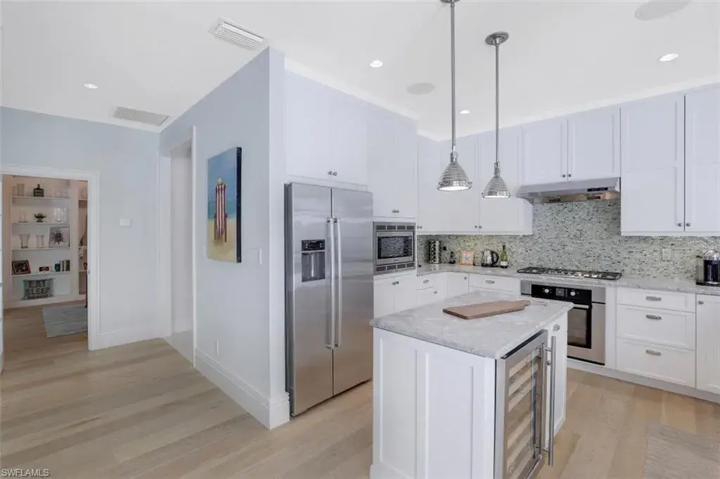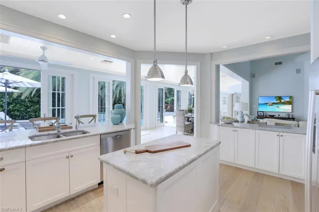 Coastal Chalet in Olde Naples – this stunning coastal dream is only a 2-min walk to the sparkling coastline of the Gulf of Mexico! This beautifully appointed home includes 4 bedrooms (two of them being primary suites), a centrally located study perfect for midday meetings, an upstairs den set up as a 2nd entertainment area, and an upstairs loft perfect for reading or cards. This vacation home is an entertainer’s dream! The kitchen boasts a light and bright atmosphere with six-French doors that open to the outside oasis. The outdoor kitchen & bar provide the perfect SWFL ambiance while overlooking the pristine pool and spa. Enjoy a southern sunset while playing a game on the brand new Bocce Court. Naples is the ideal vacation destination! Enjoy beaches, championship golf courses, tennis, boating, eco adventures to nearby Keewaydin and the 10,000 islands, deep sea and backwater fishing, paddle boarding and kids activities from the Naples Zoo to putt putt golf.
