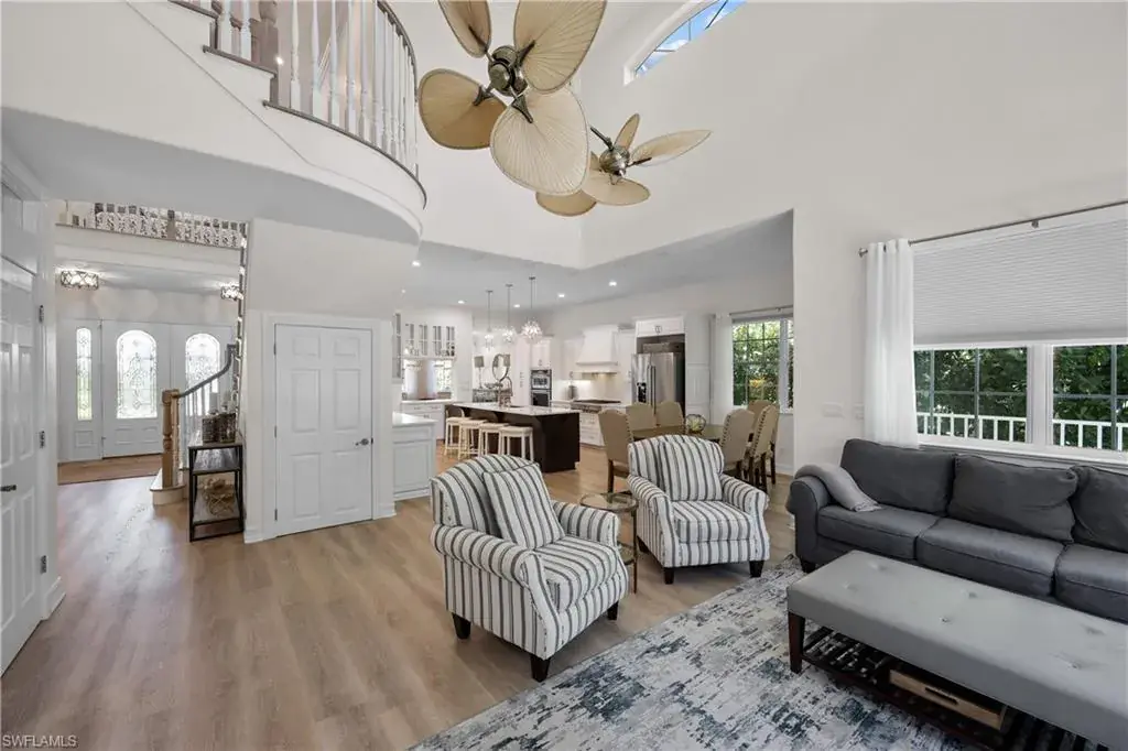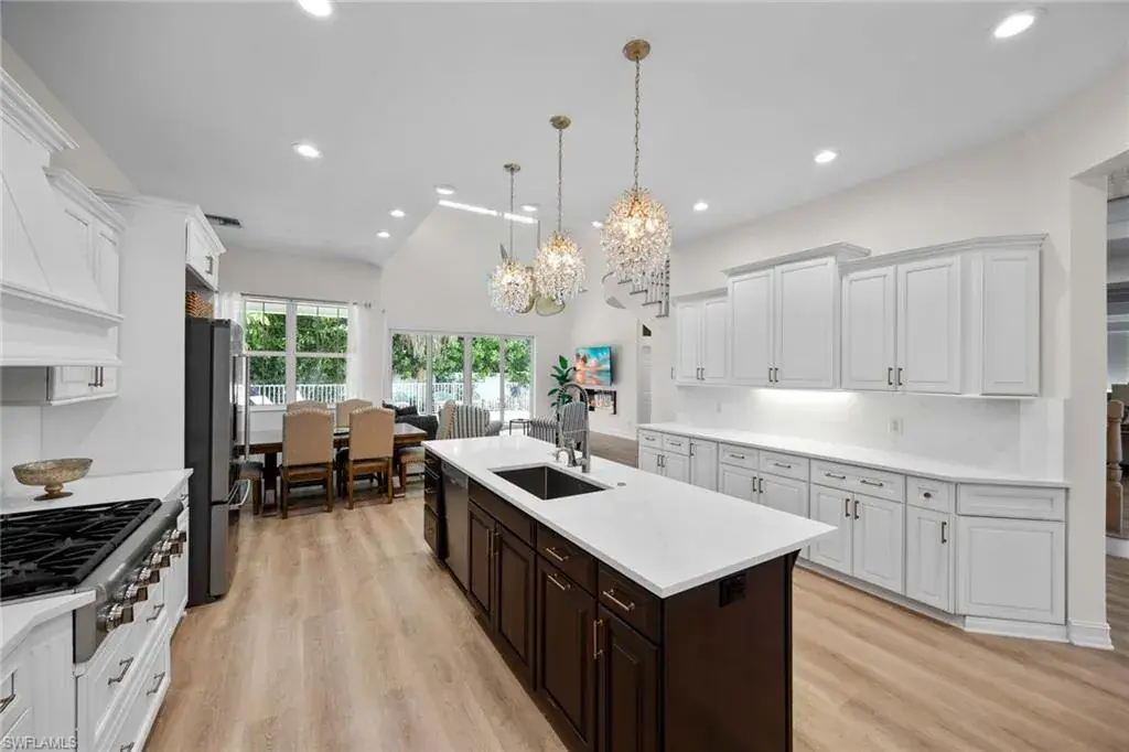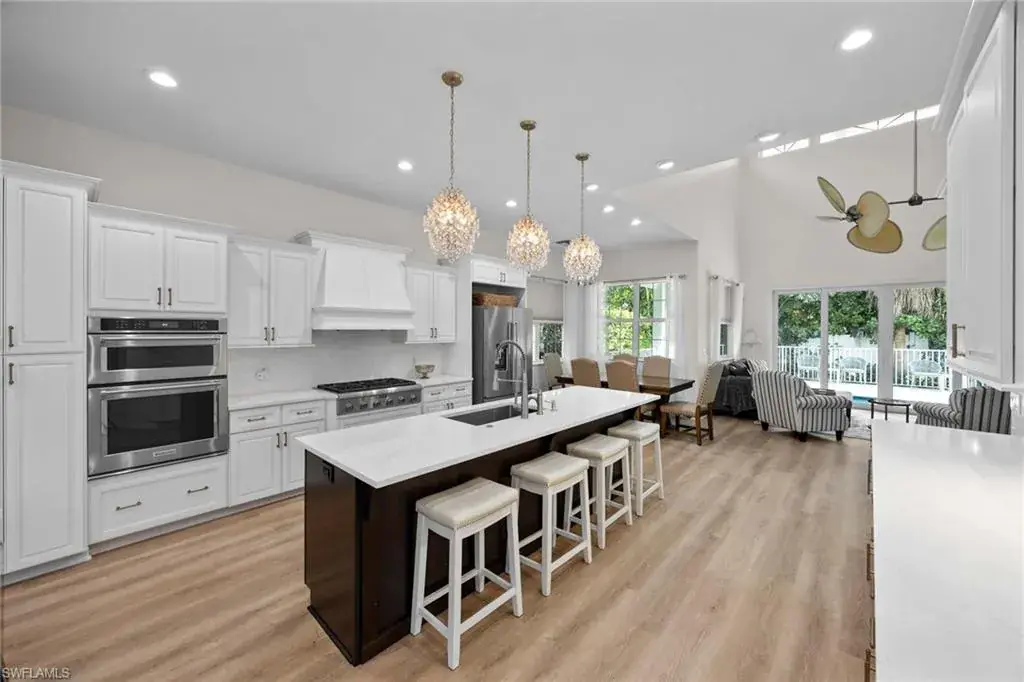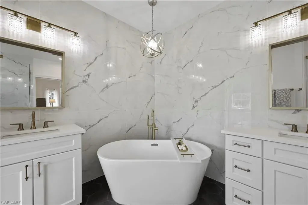 JUST COMPLETED a MAJOR exterior facelift updating this beautiful Old Naples gem that also underwent a recent interior renovation and offered turnkey furnished. Just steps from the white sugar sand beaches of the Gulf and a short stroll to both 5th Avenue and 3rd Street quaint boutiques and upscale restaurants, the home has over 3,500 square feet of interior living space. Beyond an expansive front porch, you enter through large glass double doors into a foyer with soaring ceilings leading to a formal living room with fireplace, adjacent study, separate dining room, powder room, and an upgraded kitchen with stainless steel chef’s appliances and large center island. The kitchen opens to a large family room with double volume ceilings and French doors leading out to a sparkling new saltwater pool and luxurious spa with surrounding deck. Upstairs are three large bedrooms including a sumptuous primary suite with balcony and luxurious bath with separate shower, soaking tub and double vanities. Two additional en-suite bedrooms and a large front patio complete the upstairs. Large two car garage with lots of storage is accessed by an alley. Don’t miss this opportunity to enjoy the superb Naples lifestyle!!