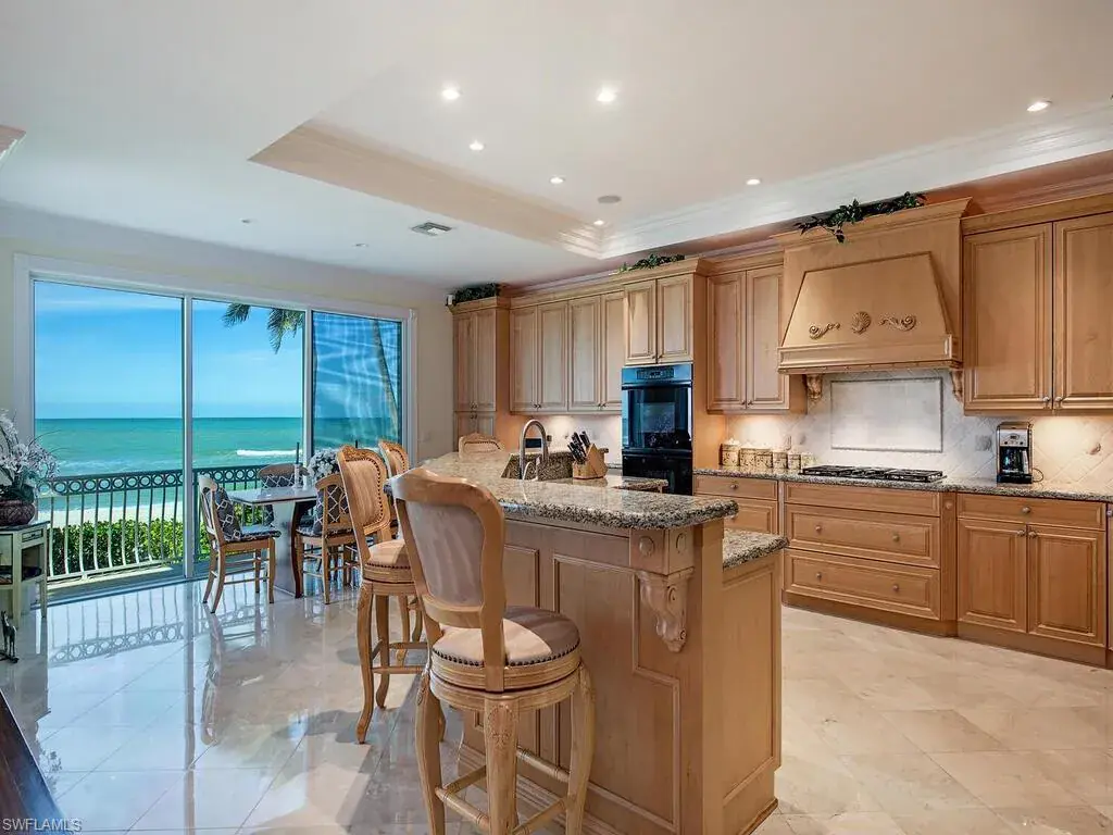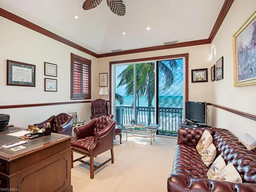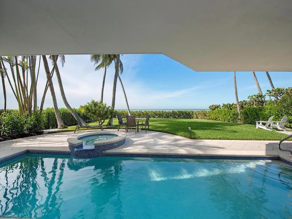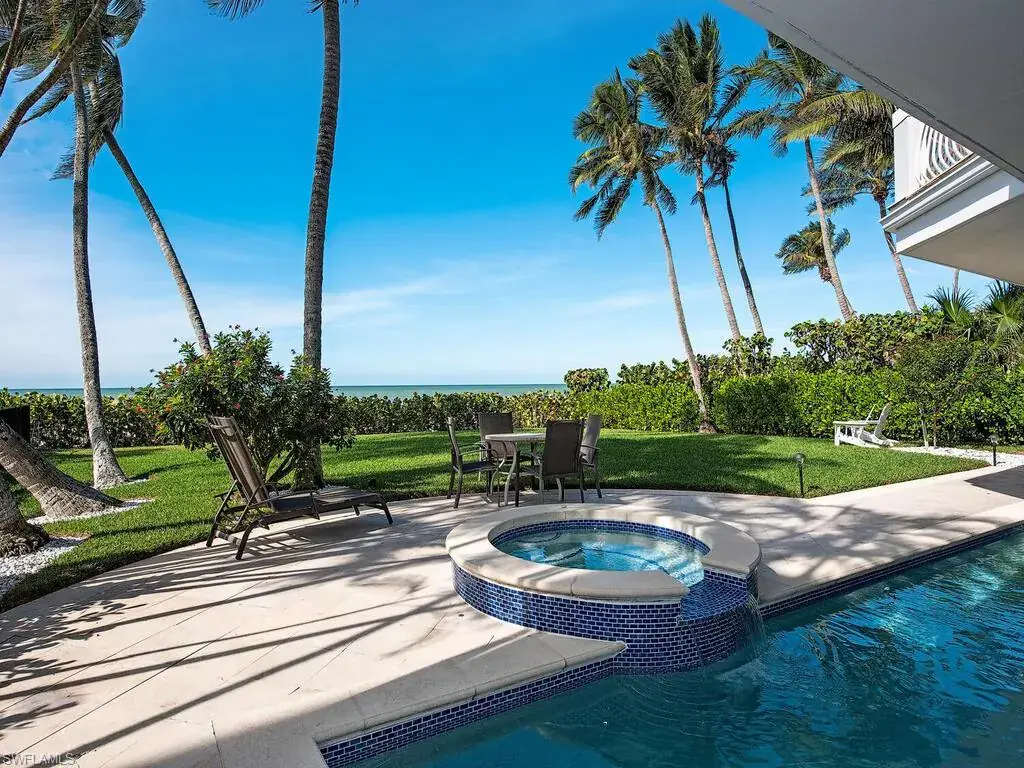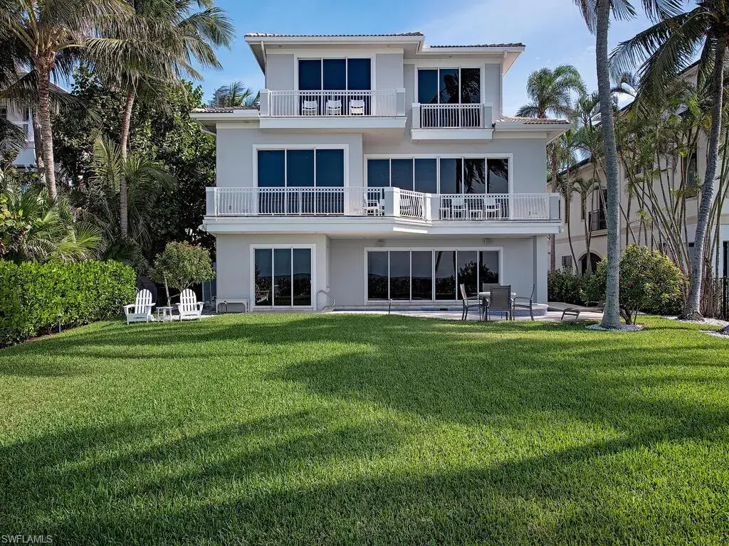 Accessed via a quiet lane, this incredibly unique residence represents the best value in single family beachfront living and provides no shortage of unrivaled scenery through its floor to ceiling windows and terraces. The home, built in 2003, encompasses three bedroom suites, a study, three full bathrooms + a powder bathroom, a private three-floor elevator, wet bar, multiple west-facing terraces, as well as stunning floor-to-ceiling high impact windows and sliding doors that showcase glistening Golf of Mexico views. The master suite spans across the entire top floor and features a Gulf-front study, fitness studio, and sprawling dressing room. Providing the utmost in privacy, the verdant Gulf-side backyard meets the sandy edge of the beach and is further highlighted by a beachside pool and spa. In addition to the copious features found within, this beachfront home is also conveniently close to the chic Fifth Avenue restaurants and boutiques that make living in Naples a true delight.