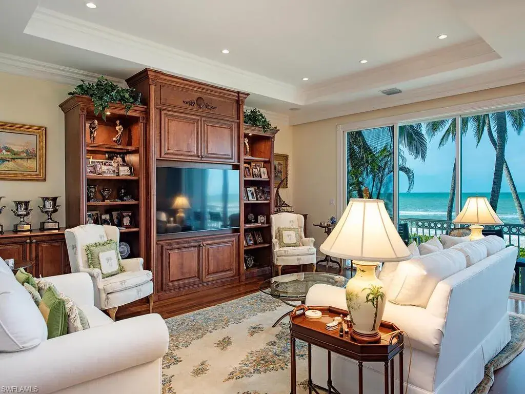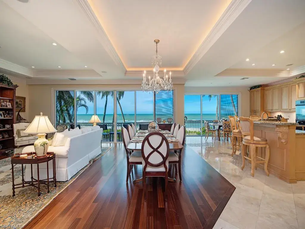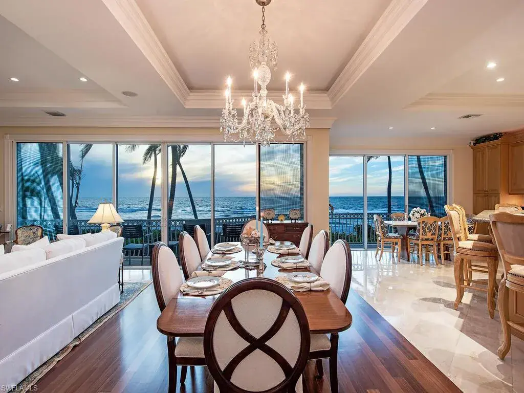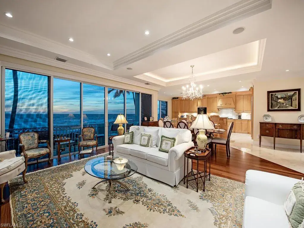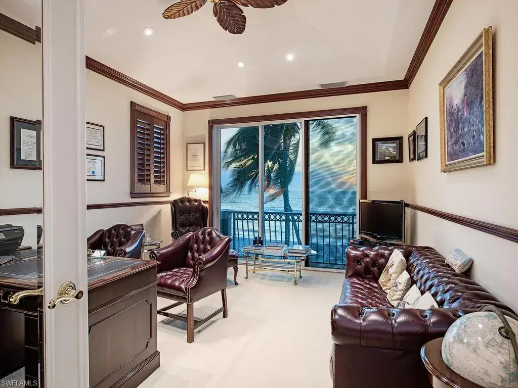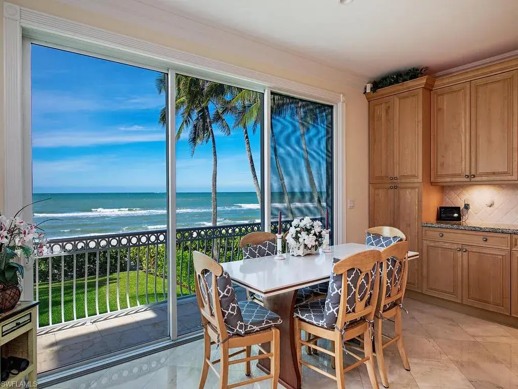 Accessed via a quiet lane, this incredibly unique residence represents the best value in single family beachfront living and provides no shortage of unrivaled scenery through its floor to ceiling windows and terraces. The home, built in 2003, encompasses three bedroom suites, a study, three full bathrooms + a powder bathroom, a private three-floor elevator, wet bar, multiple west-facing terraces, as well as stunning floor-to-ceiling high impact windows and sliding doors that showcase glistening Golf of Mexico views. The master suite spans across the entire top floor and features a Gulf-front study, fitness studio, and sprawling dressing room. Providing the utmost in privacy, the verdant Gulf-side backyard meets the sandy edge of the beach and is further highlighted by a beachside pool and spa. In addition to the copious features found within, this beachfront home is also conveniently close to the chic Fifth Avenue restaurants and boutiques that make living in Naples a true delight.