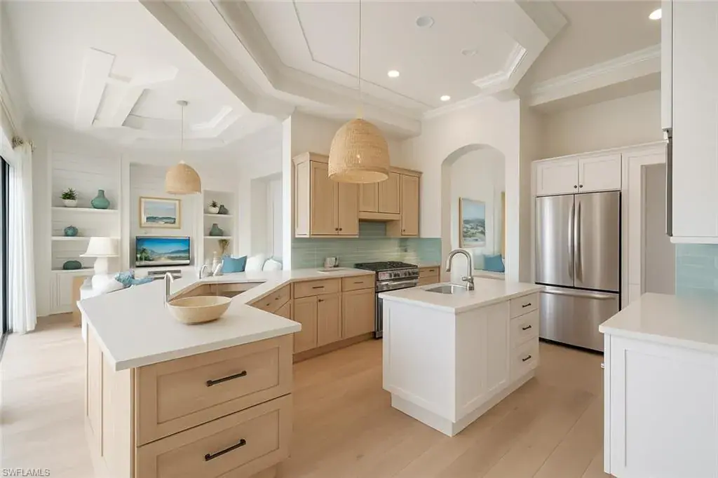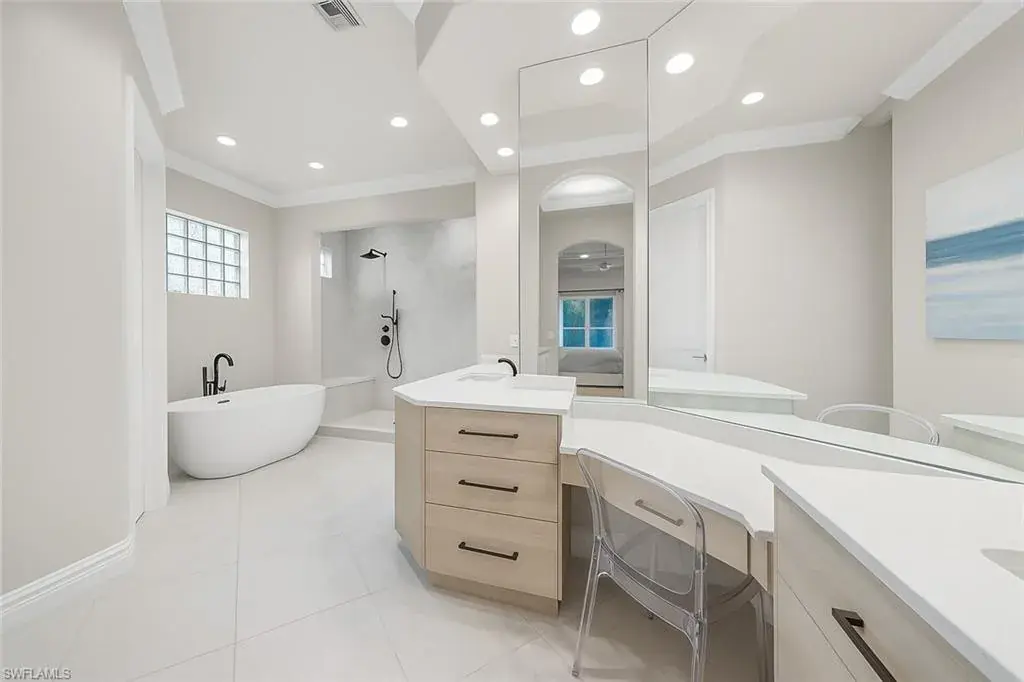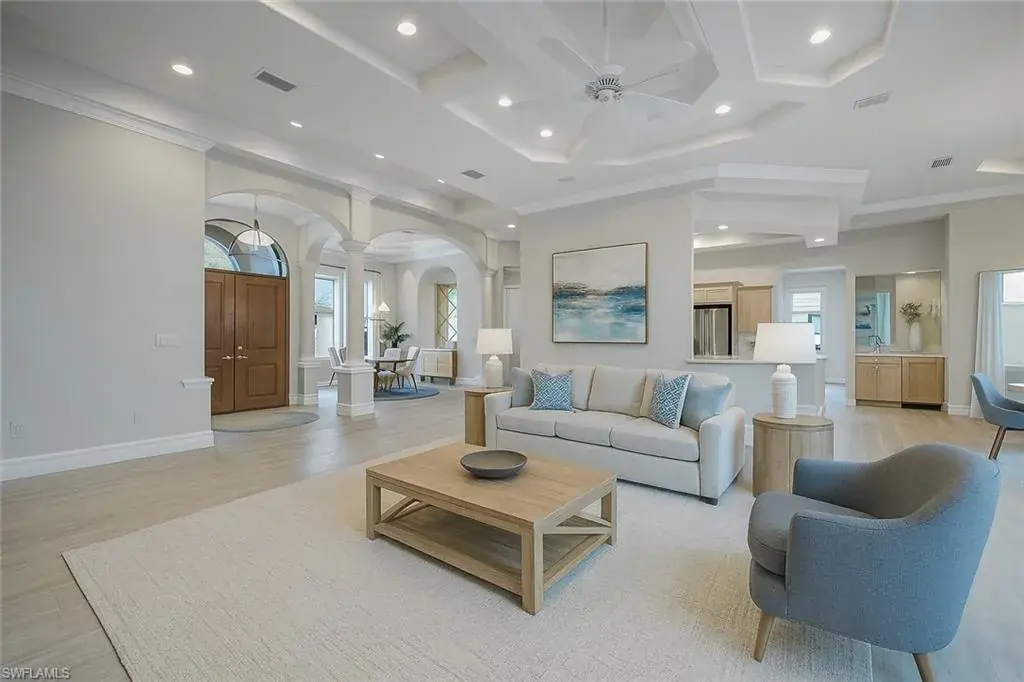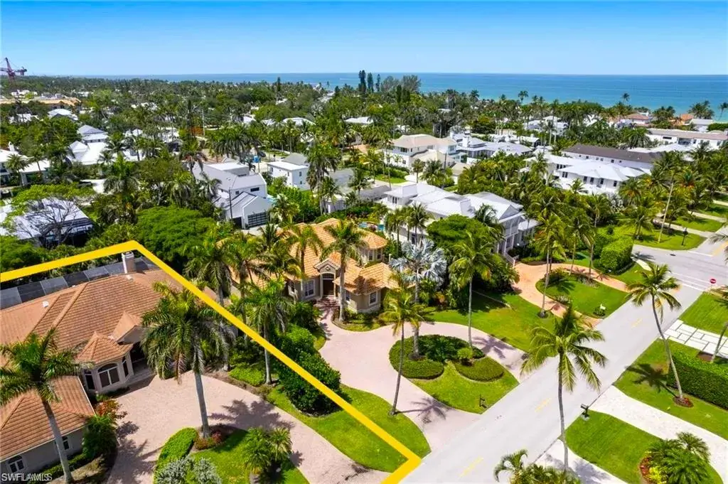 Situated in one of the most desirable locations in Olde Naples—perfectly positioned between 5th Avenue South and 3rd Street South—you’re just steps from world-class dining, shopping, entertainment, and only 10 doors from Naples’ white-sand Gulf beaches. This is truly the ultimate walkable lifestyle: no car needed. Stroll to the beach for nightly sunsets, enjoy coffee on 5th Avenue, or dine on 3rd Street—everything is within minutes. This charming property sits on an oversized .34-acre (100′ x 150′) lot, an extremely rare offering in the heart of downtown. Located on the quiet, low-traffic 9th Avenue South, the home also features a rear alley for convenient access and privacy. You are also within walking distance to iconic Cambier Park—home to tennis courts, art shows, concerts, and year-round community events. Built in 2000, this four-bedroom, four-bath residence offers approximately 3,600 square feet under air with an exceptional open floor plan. The expansive great room seamlessly integrates a large kitchen, formal dining space, breakfast area, and comfortable living room—all overlooking the impressive outdoor living space. The backyard features a massive pool and spa, surrounded by a spacious, landscaped yard ideal for family and friends. The home is constructed of solid concrete block and already has a brand-new roof, creating the perfect opportunity for someone to renovate and enjoy for many years to come. Importantly, the house and lanai have remained completely dry during all previous hurricanes—providing peace of mind and confidence in its elevation and structural integrity. Additional highlights include a horseshoe-shaped driveway for easy in-and-out access, southern exposure, and one of the last remaining opportunities to secure an oversized lot in the most prime section of Olde Naples.