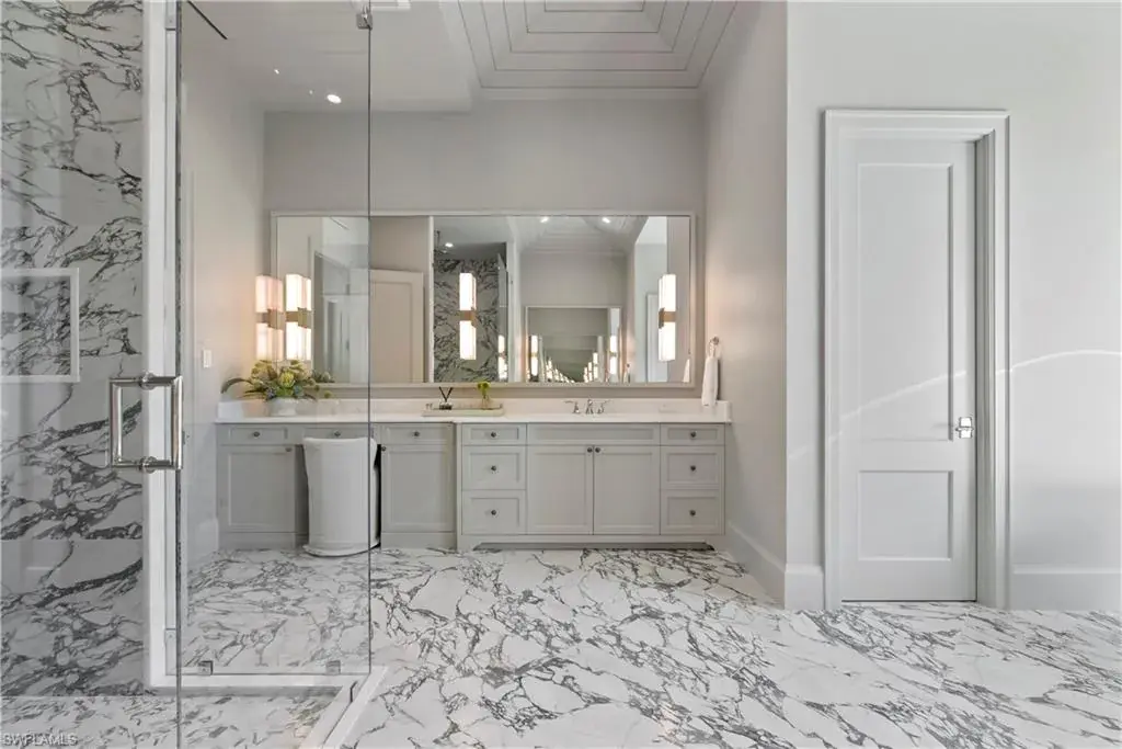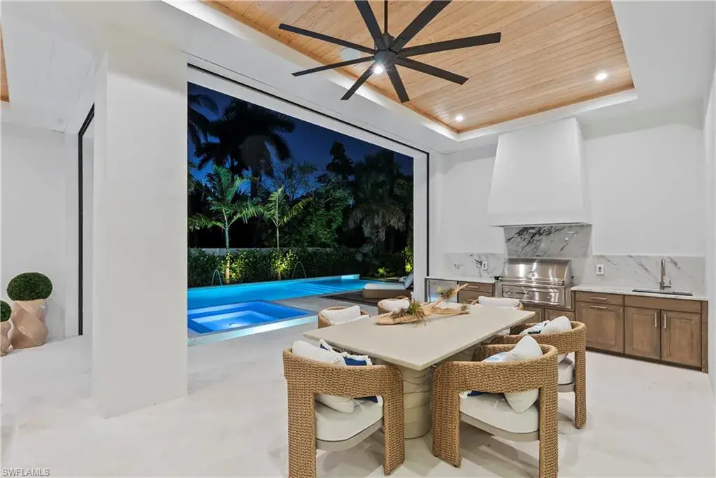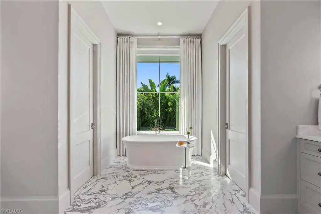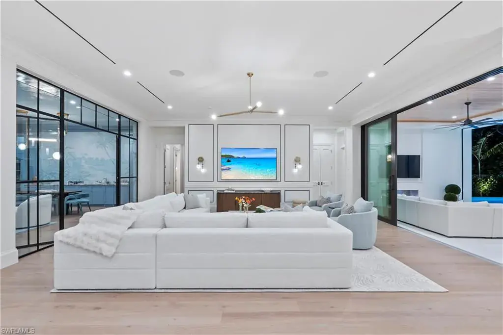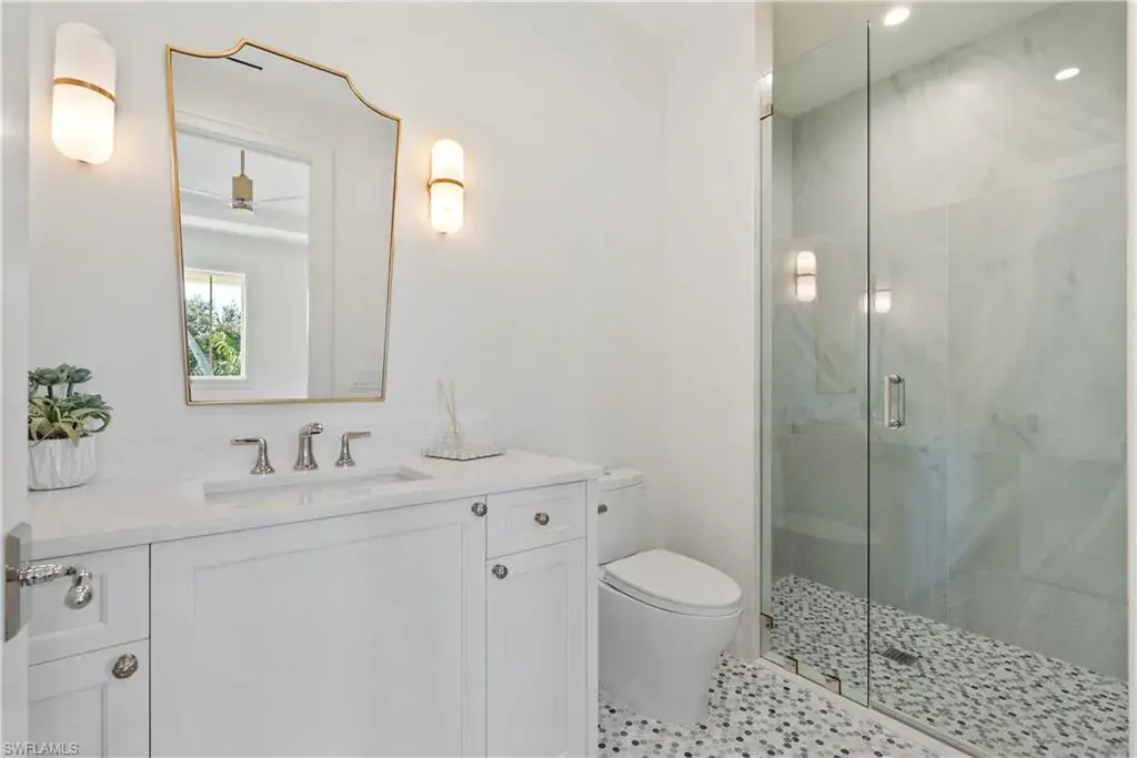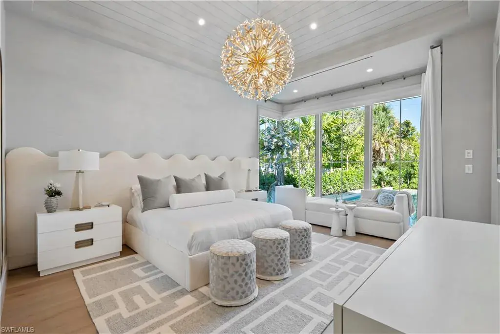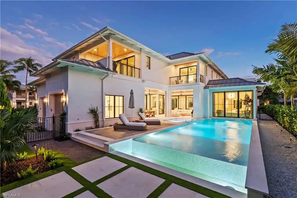 Step into refined coastal living with this exceptional new construction home located just two blocks from the beach in the heart of Olde Naples. Designed by Stofft Cooney Architects, built by Equinox Construction Group, and styled by Freestyle Interior Design, this residence blends timeless elegance with modern functionality. The spacious great room floor plan invites seamless indoor-outdoor living, ideal for both relaxed family life and sophisticated entertaining. A chef’s kitchen equipped with premium appliances and a separate prep kitchen offers versatility for everyday meals or catered gatherings. The home features five bedrooms, five full baths, and three half baths, including two luxurious master suites, one on each level, providing privacy and flexibility for family and guests. Additional spaces include a club room, two laundry rooms, and thoughtfully designed living areas throughout. A three-car garage with alley access preserves the classic charm of the front facade while adding convenience. With white oak wood flooring, high-end finishes, a whole-house generator, and an unbeatable location in one of Naples’ most coveted neighborhoods, this property presents a rare opportunity to enjoy brand-new luxury living just moments from the Gulf of Mexico.