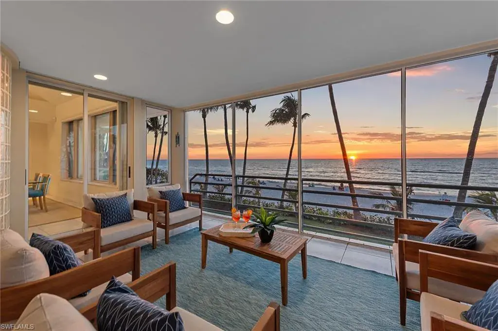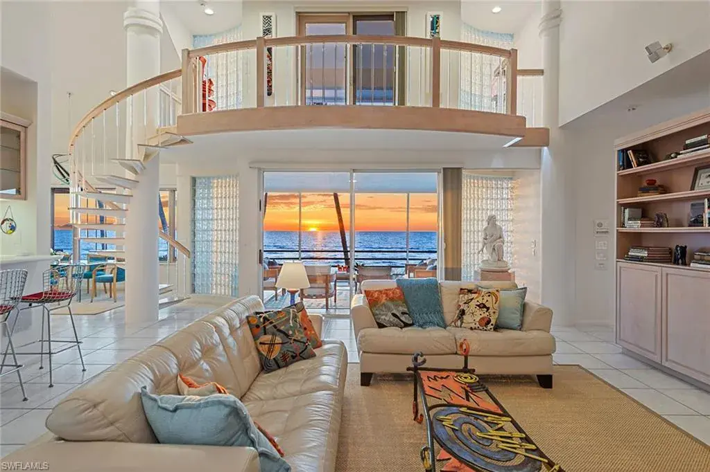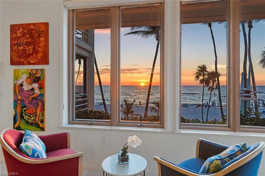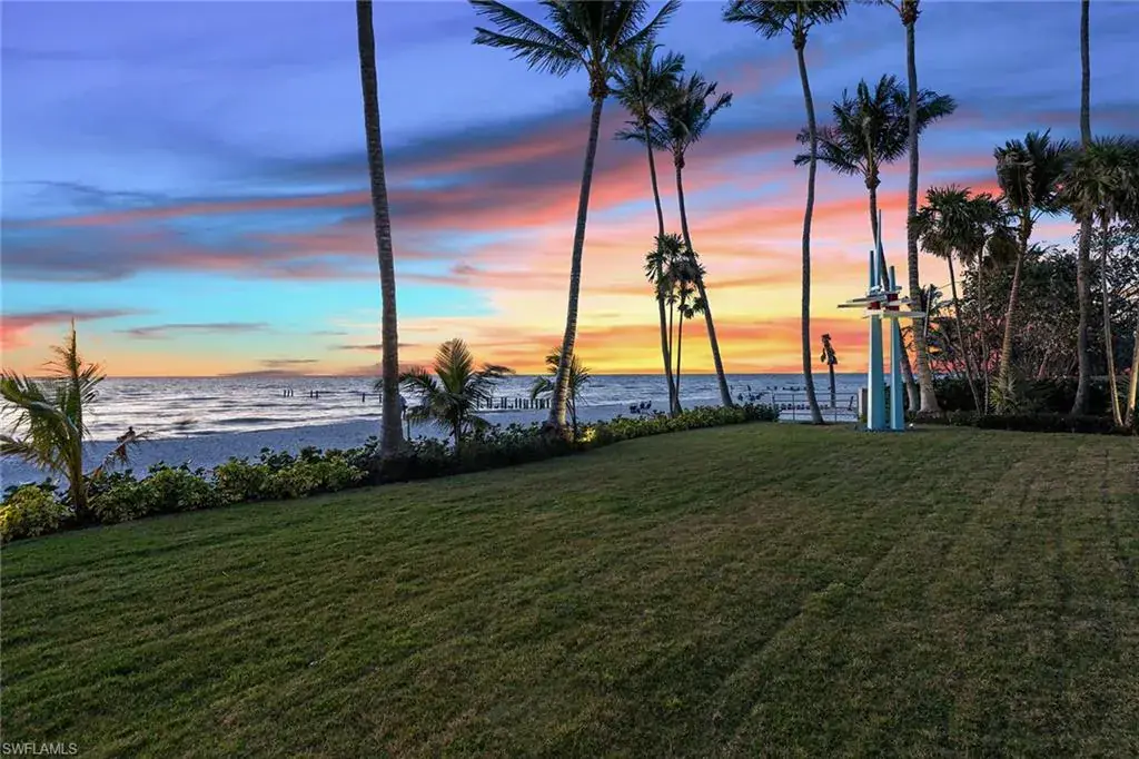 Rarely does an opportunity arise that compares to 30 3rd Avenue South in Old Naples with .67 acres and 169 feet of pristine beachfront. Just a few blocks to Fifth Avenue’s popular boutiques and restaurants, this property offers a lifestyle that is perfection. Designed by Richard Morris, this art deco-inspired architectural gem was designed to maximize the stunning water views, showcase fine art, and create a seamless flow of interior and exterior living. A grand entry welcomes you into a soaring 22-foot foyer where a sweeping staircase or personal elevator takes you to the elevated art gallery, setting the stage for the breathtaking interior. The great room, expanding with volume and light, is the heart of the home. It flows seamlessly into the adjacent dining area, lanai, and lounge with custom millwork and a wet bar. A spiral staircase rises to an intimate observation deck with endless ocean views. The spacious kitchen suite offers everything a chef needs for effortless entertaining, featuring an open plan with indoor and outdoor dining counters, a walk-in pantry and high-end stainless-steel appliances. Your primary suite is a private oasis with direct access to the beach-front balcony, and private pool and lanai. The spa-inspired en-suite bath features a glass-enclosed walk-in shower with ocean views. Steps away, a private bedroom/den provides an ideal home office or quiet retreat. The east wing of the residence features four large en-suite bedrooms and a dedicated laundry. The versatile northeast bedroom could double as an ideal artist studio due to its exceptional natural light and storage. Outside, the elevated screened courtyard and gardens create a soothing sanctuary for year-round enjoyment. The expansive covered lanai features a kitchenette and dining area making it a focal point for causal entertaining. Exterior block construction, a first-floor elevation of over 19 feet above sea level, NGVD, and electric storm shutters make this rock-solid home a haven of safety and security. Professional landscaping, lighting and iconic outdoor sculptures complete this exceptional residence. This harmonious blend of luxury, serenity and convenience just blocks from the bustling boutiques, galleries and renowned restaurants of 5th Avenue and Third Street. Make it your new home and be just minutes from everything we love about life in Naples.