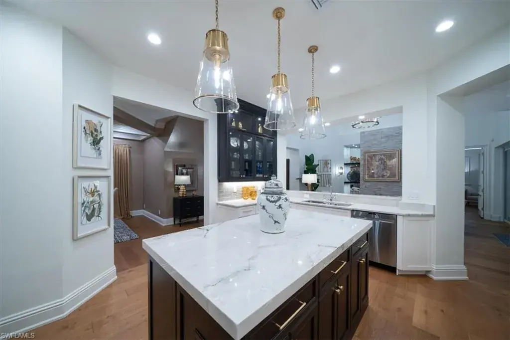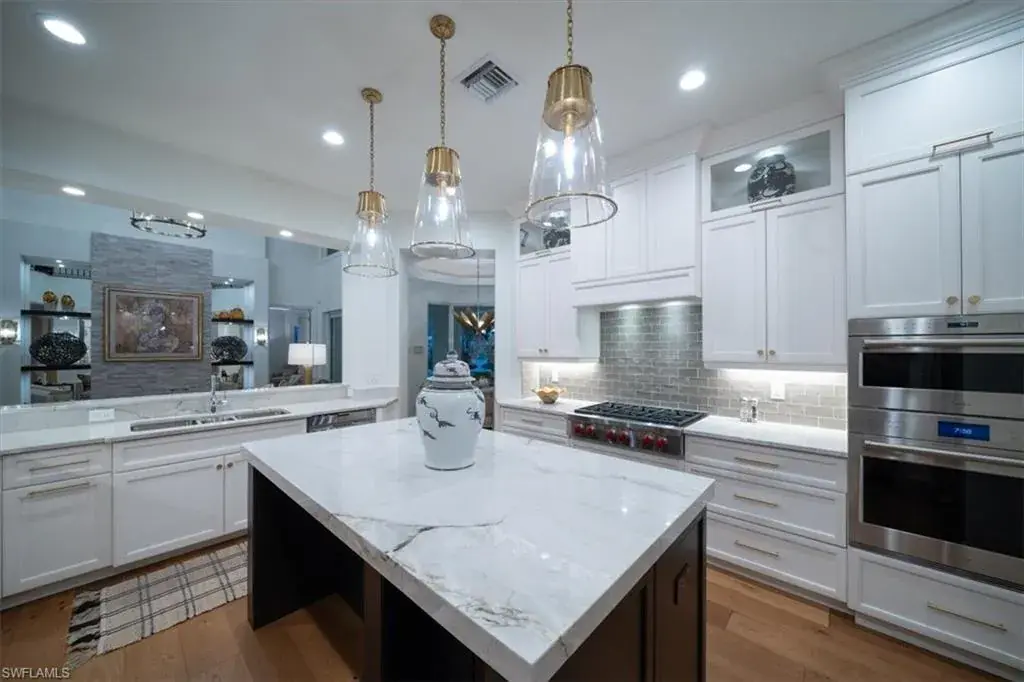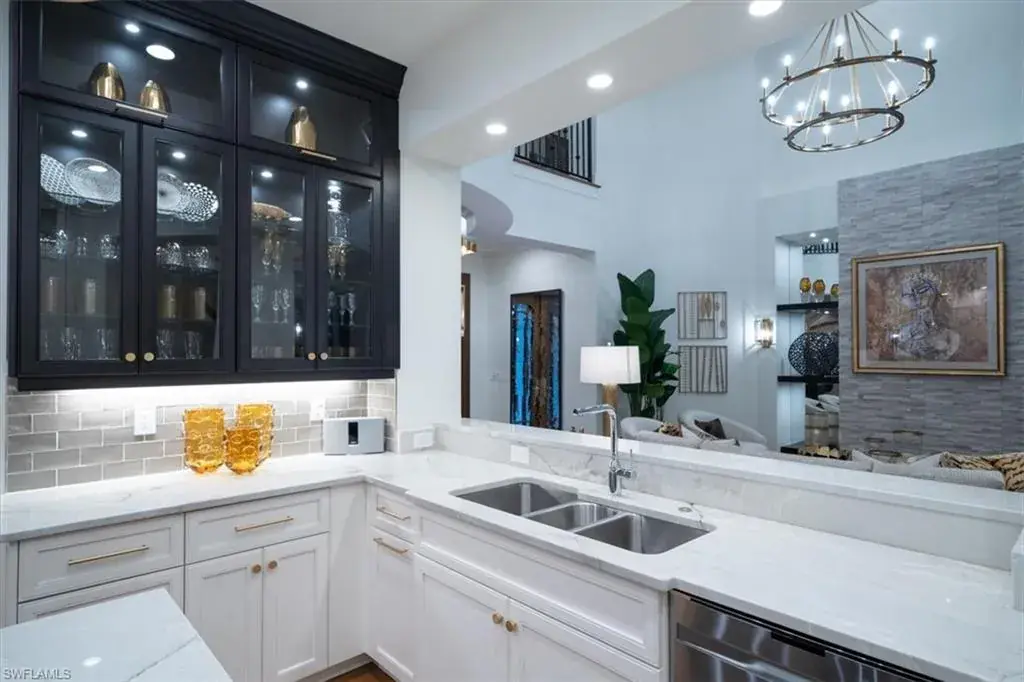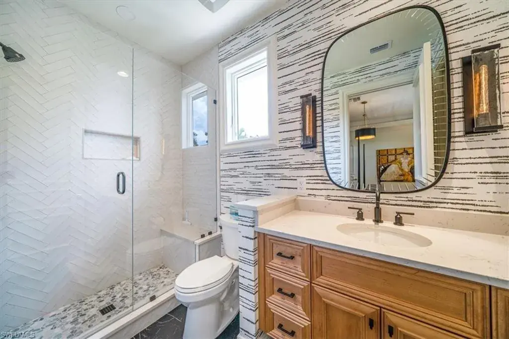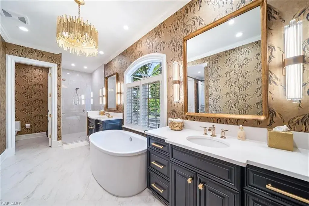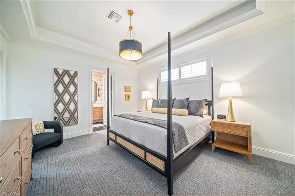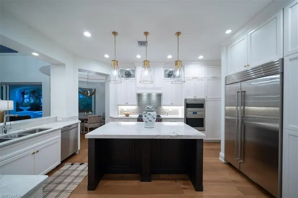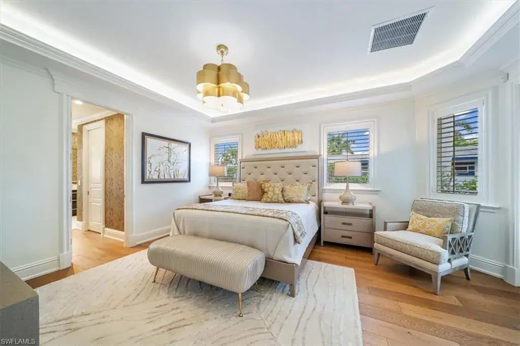 Prepare to be amazed by this exquisite, fully furnished, and remodeled British Cayman inspired haven, just moments from the breathtaking Gulf of Mexico beaches! Positioned a mere three blocks from the shoreline, this luxurious 2-story residence with 4 bedrooms and 3 full and 2 half baths epitomizes the pinnacle of luxury living in Naples. Take a leisurely stroll just five blocks south to immerse yourself in the world-class shopping and dining experiences of 5th Ave S. As you approach, be captivated by the circular paved driveway and meticulously designed landscaping that elevate the curb appeal of this magnificent manor-style home. Enter through the custom Mahogany wood front doors of 33 3rd St and step into a grand yet welcoming great room that offers stunning views of the pool and tropical terrace. The ground floor primary suite features two walk-in closets and a lavish Master Bath. For those passionate about culinary excellence, the spacious gourmet kitchen showcases high-quality appliances, including a gas stove top, complemented by an outdoor kitchen. With ample space for entertaining, this home also boasts a heated pool and spa in your private backyard oasis, perfect for enjoying when you’re not soaking up the Florida sunshine at the beach. With its sophisticated light neutral palette, French oak flooring, Anderson impact windows & doors, impeccable designer finishes and fixtures, and undeniable charm, this home is a true masterpiece waiting to be uncovered and cherished. In addition this home did not sustain any water issues from Ian or Milton.