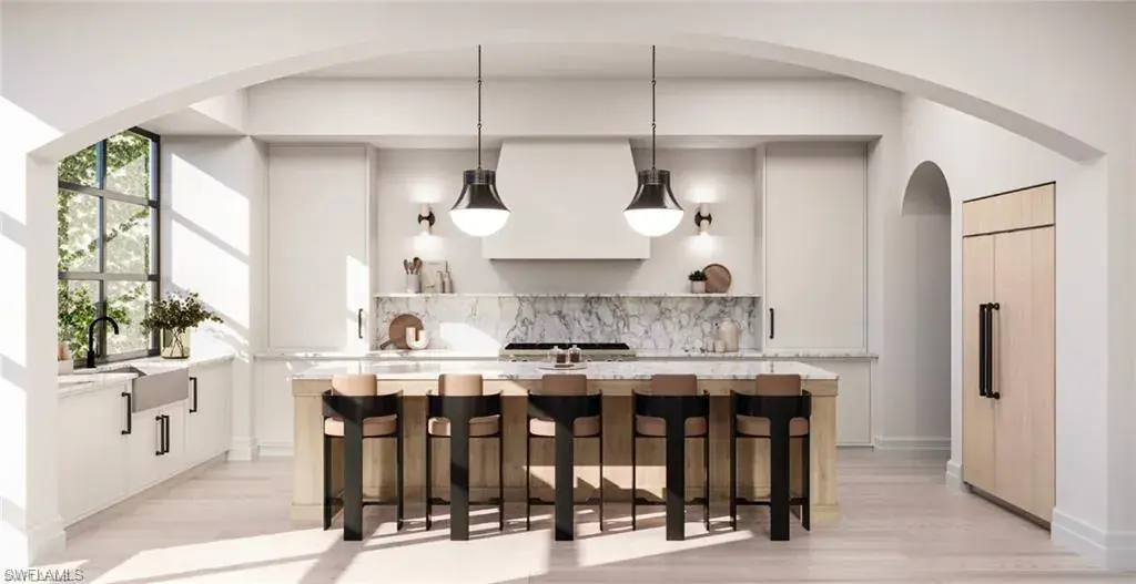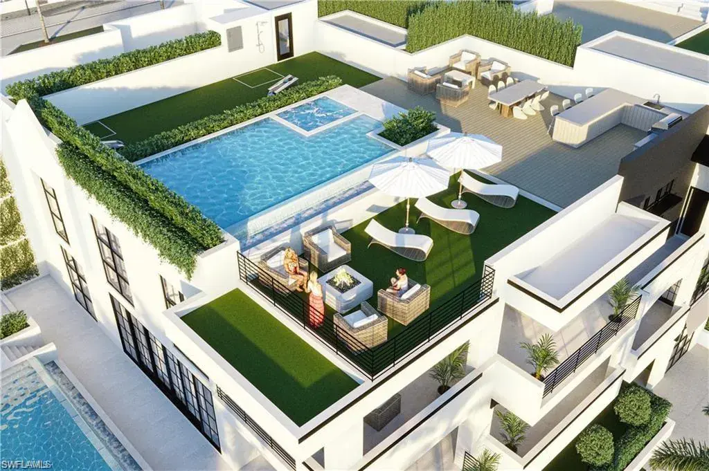 Welcome to The Huxley: A Distinctive Enclave of Luxury Living in Downtown Naples. The exclusive collection of just eight meticulously crafted residences located in the vibrant heart of downtown Naples. Each residence is a testament to refined elegance and sophisticated design, thoughtfully curated with the finest materials to elevate modern living. Step into a world of unparalleled luxury, where every detail has been chosen with precision—from the rich warmth of European oak flooring to the timeless beauty of natural stone countertops and the enduring quality of Waterworks plumbing fixtures. Each home at The Huxley features top-of-the-line Sub-Zero/Wolf appliance packages, as well as stunning herringbone floor and ceiling detailing, creating a seamless flow between spaces. Residence 303: A Masterpiece of Design and Luxury, spans 4,424 square feet of exceptional living space, offering a thoughtful and functional floor plan designed to maximize both luxury and comfort. The grand suite is a true sanctuary, offering a private retreat with every amenity, while the elegant club room—complete with a wet bar and walk-in pantry—provides the perfect setting for intimate gatherings or entertaining on a larger scale. The expansive Great Room invites seamless transitions between living, dining, and social areas, making it ideal for hosting family and friends in style. The design of Residence 303 exemplifies a harmonious blend of light and shade, wood and stone, and a captivating palette of contrasting tones, creating an atmosphere that is both timeless and inviting. State-of-the-art Wolf and Sub-Zero appliances are complemented by warm wood cabinetry, antiqued metal fixtures, and natural stone surfaces, enhancing the home’s sense of understated luxury. With Unrivaled Features and Amenities This residence is further distinguished by an array of exceptional features, including a private four-car garage with lift capabilities, a smart-home integrated system, a private elevator for added convenience, and a backup whole-house generator for peace of mind. Designed with both style and functionality in mind, Residence 303 offers an elevated living experience that ensures comfort, security, and ease. Step outside to the expansive 3,040-square-foot private rooftop, where you’ll find your own personal oasis. Featuring a pool, spa, and outdoor kitchen, this outdoor space is perfect for relaxing or entertaining under the Naples sun. Whether you’re hosting a sunset cocktail party or enjoying a quiet evening by the pool, the rooftop offers a truly spectacular setting for outdoor living. A True Olde Naples Masterpiece Designed by the renowned MHK Architecture, Residence 303 at The Huxley is a one-of-a-kind residence that perfectly balances luxury, privacy, and convenience. With its sophisticated design, exquisite materials, and world-class amenities, this home offers a rare opportunity to experience the pinnacle of downtown living in Olde Naples.