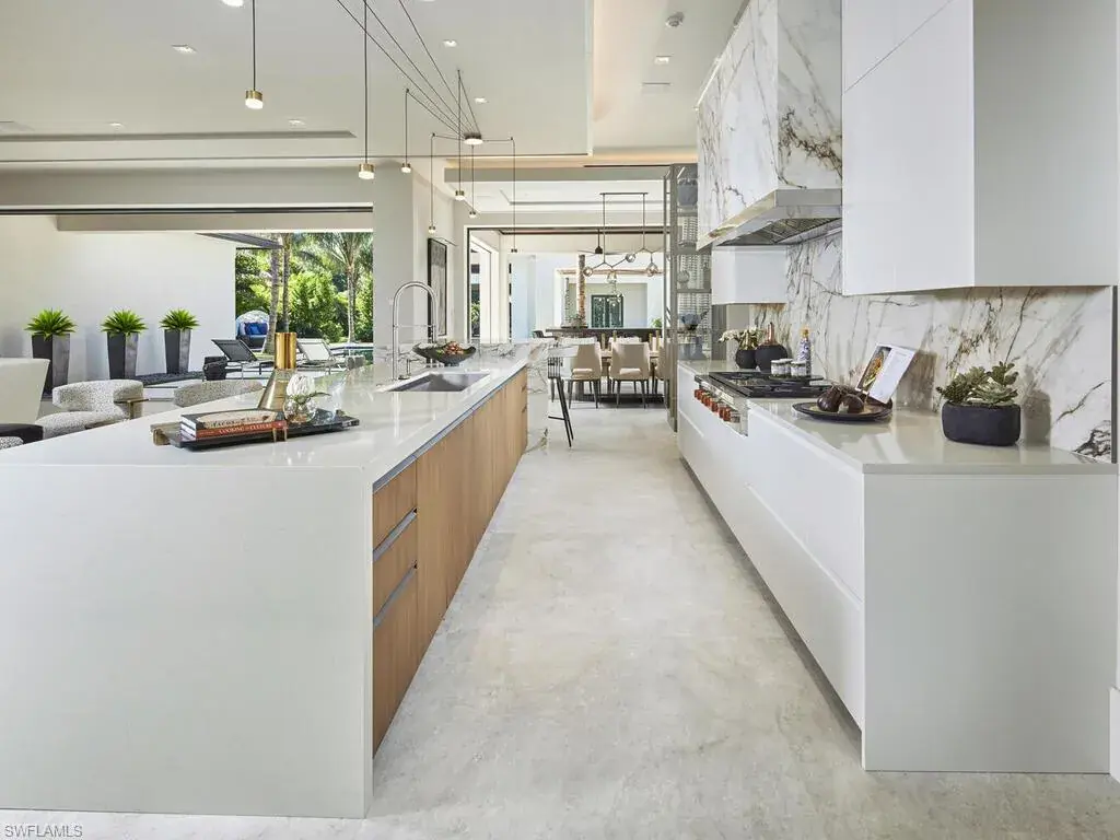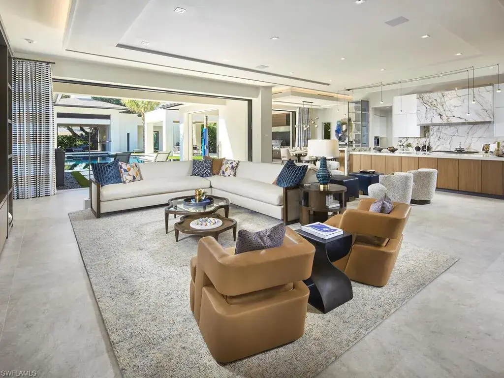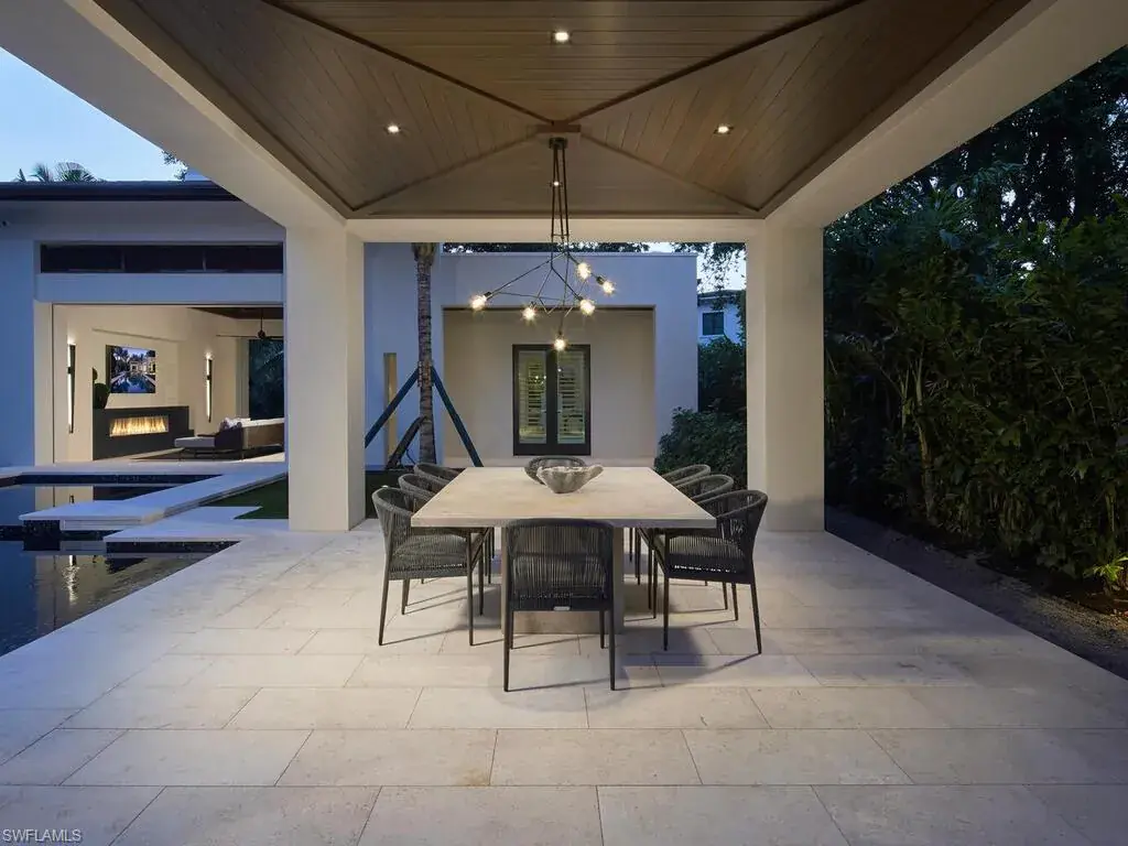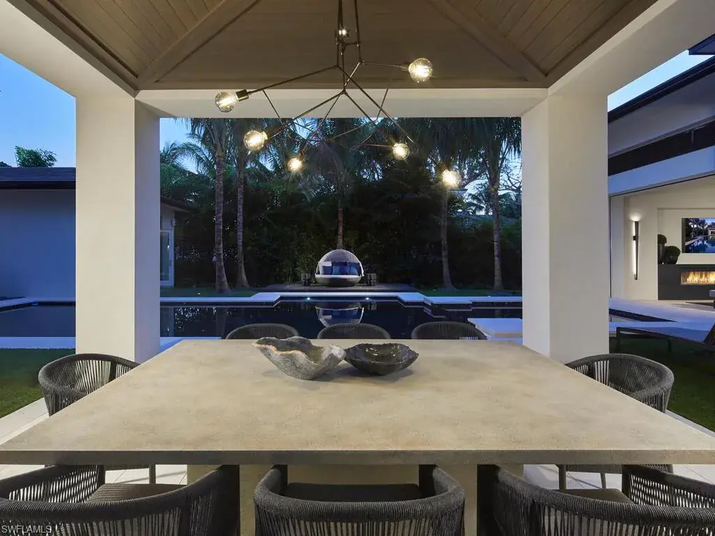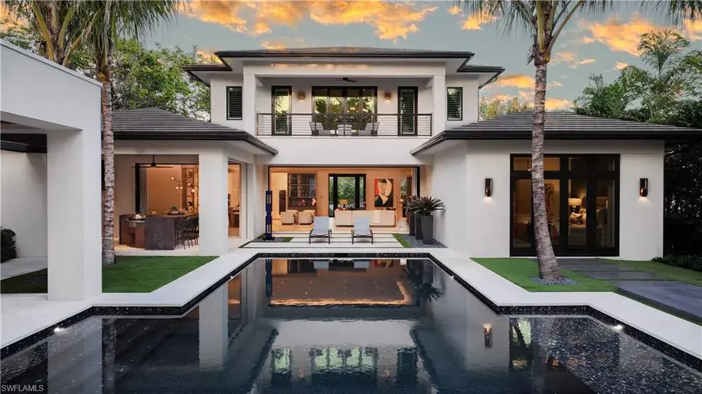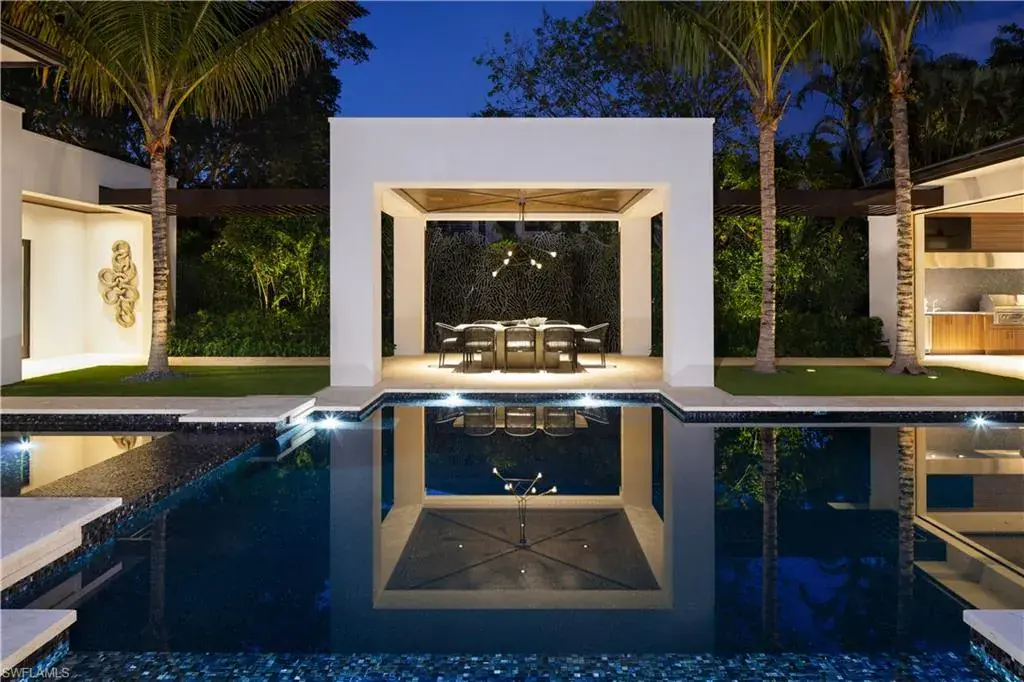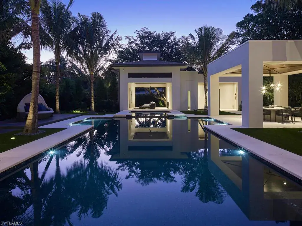 London Bay Homes and Romanza Interior Design have combined their extensive experience of over 25 years in designing and building homes together to create a truly remarkable opportunity. The first floor features an expansive great room, dining area, and café seating, complete with a custom Poliform kitchen and a fully equipped prep kitchen. You can take the stairs or private elevator to the second floor, where you’ll find a lounge, morning bar, and two spacious bedroom suites, all with access to a balcony that overlooks the spectacular rear yard. Step outside to discover a true oasis, featuring a resort-style pool and spa, along with over 1,700 square feet of covered outdoor entertaining spaces. This includes a well-equipped outdoor kitchen with an L-shaped bar and an Evo grill. A separate covered outdoor dining pavilion, situated under a canopy of coconut palm trees, overlooks the pool and tropical landscape. Additionally, a cabana and outdoor living room at the rear of the property includes a fireplace, TV, appliances, and roll-down screens and shutters. Meticulously crafted, this home strikes a perfect balance of refined sophistication and practical elegance. Ideally located just a block from the beach and close to downtown shopping and dining, it promises an enviable lifestyle.