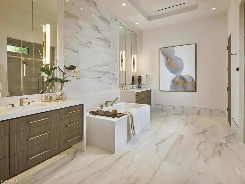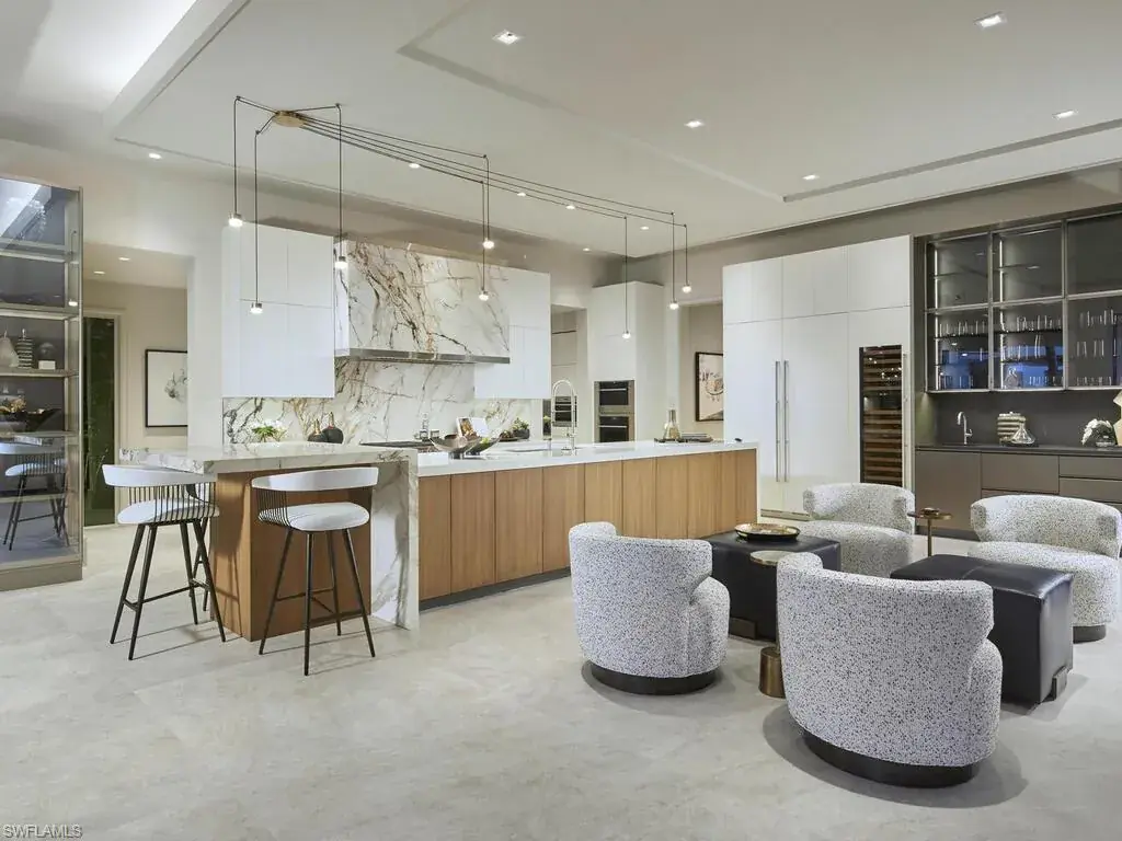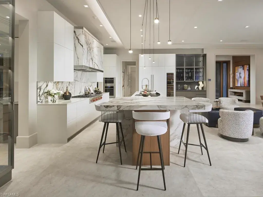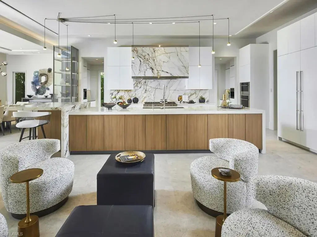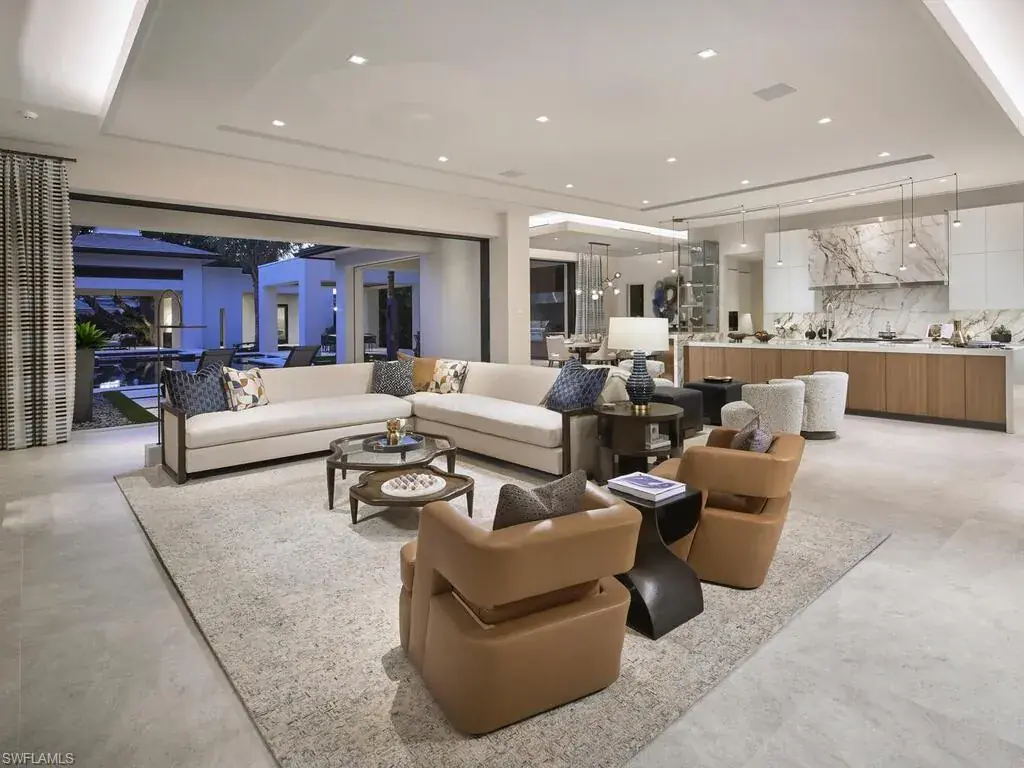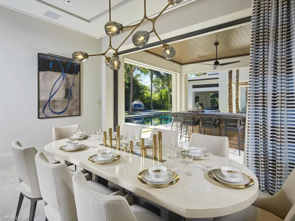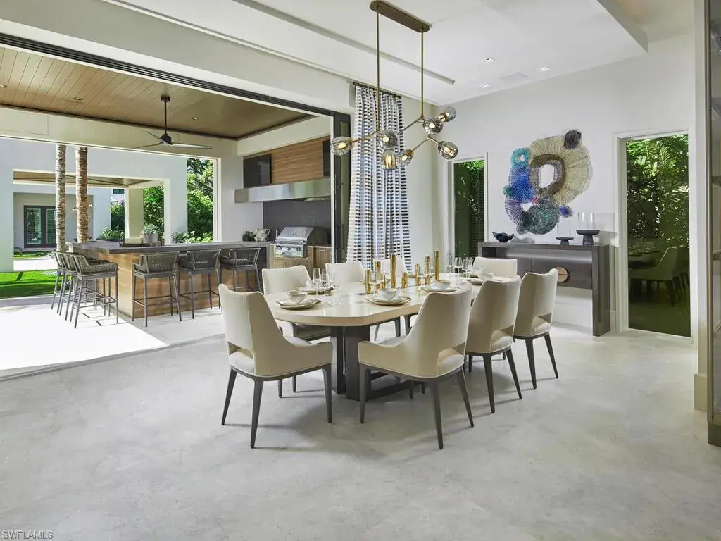 London Bay Homes and Romanza Interior Design have combined their extensive experience of over 25 years in designing and building homes together to create a truly remarkable opportunity. The first floor features an expansive great room, dining area, and café seating, complete with a custom Poliform kitchen and a fully equipped prep kitchen. You can take the stairs or private elevator to the second floor, where you’ll find a lounge, morning bar, and two spacious bedroom suites, all with access to a balcony that overlooks the spectacular rear yard. Step outside to discover a true oasis, featuring a resort-style pool and spa, along with over 1,700 square feet of covered outdoor entertaining spaces. This includes a well-equipped outdoor kitchen with an L-shaped bar and an Evo grill. A separate covered outdoor dining pavilion, situated under a canopy of coconut palm trees, overlooks the pool and tropical landscape. Additionally, a cabana and outdoor living room at the rear of the property includes a fireplace, TV, appliances, and roll-down screens and shutters. Meticulously crafted, this home strikes a perfect balance of refined sophistication and practical elegance. Ideally located just a block from the beach and close to downtown shopping and dining, it promises an enviable lifestyle.