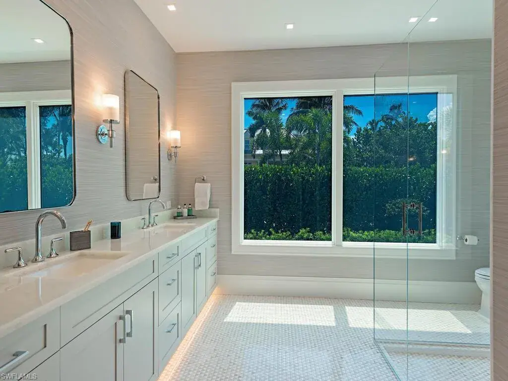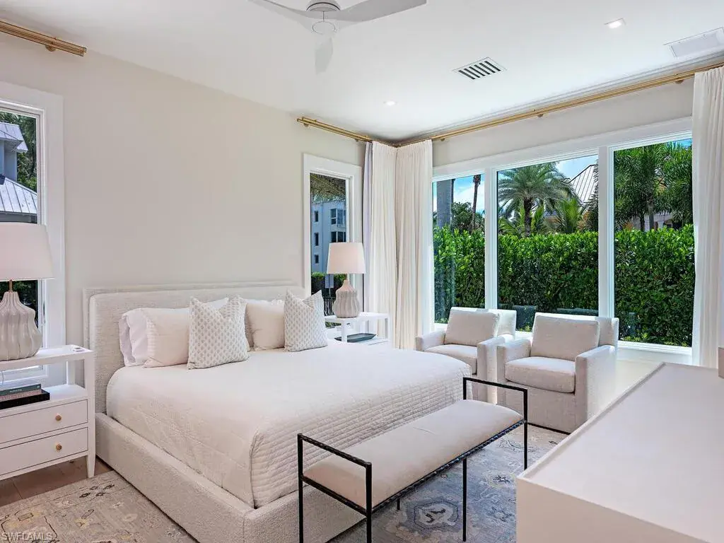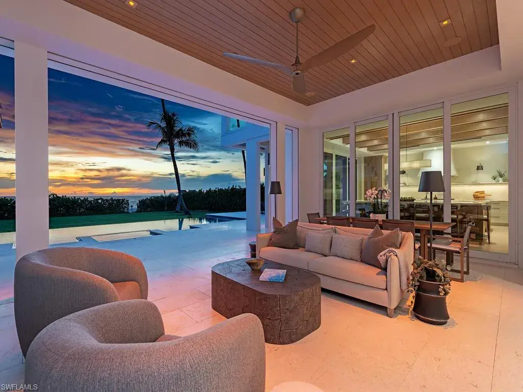 This Gulf-front masterpiece offers an unparalleled blend of location, luxury, and resort-style living. Elevated above FEMA height standards, the home has experienced no water intrusion in living areas during recent weather events. The residence combines historic charm with sophisticated elegance. Originally built in 1886, the home underwent an extensive three-year renovation and reconstruction, completed in 2024 with Kukk Architecture. Now practically new, the residence preserves its heritage, grandfathered footprint, and distinctive character while offering modern luxury throughout. The 6,100-square-foot, fully air-conditioned living space maximizes its premier beachfront setting. The well-designed layout offers five spacious bedrooms, five full and two half baths, a private study, and a flexible sixth bedroom. Sweeping Gulf views provide a stunning backdrop. The gourmet kitchen boasts dual Cristallo quartzite islands, top-tier appliances, custom cabinetry, and a service kitchen. Additional features include a private gated entry, two fireplaces, elevator, whole-house generator, automated screens/shutters, water filtration, and ultra-efficient air conditioning. Perfectly positioned on the Gulf, just moments from the dining and boutique shopping of Third Street South and Fifth Avenue South. A rare opportunity in the heart of Old Naples.