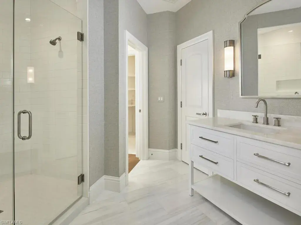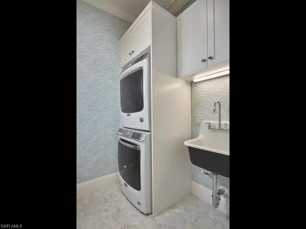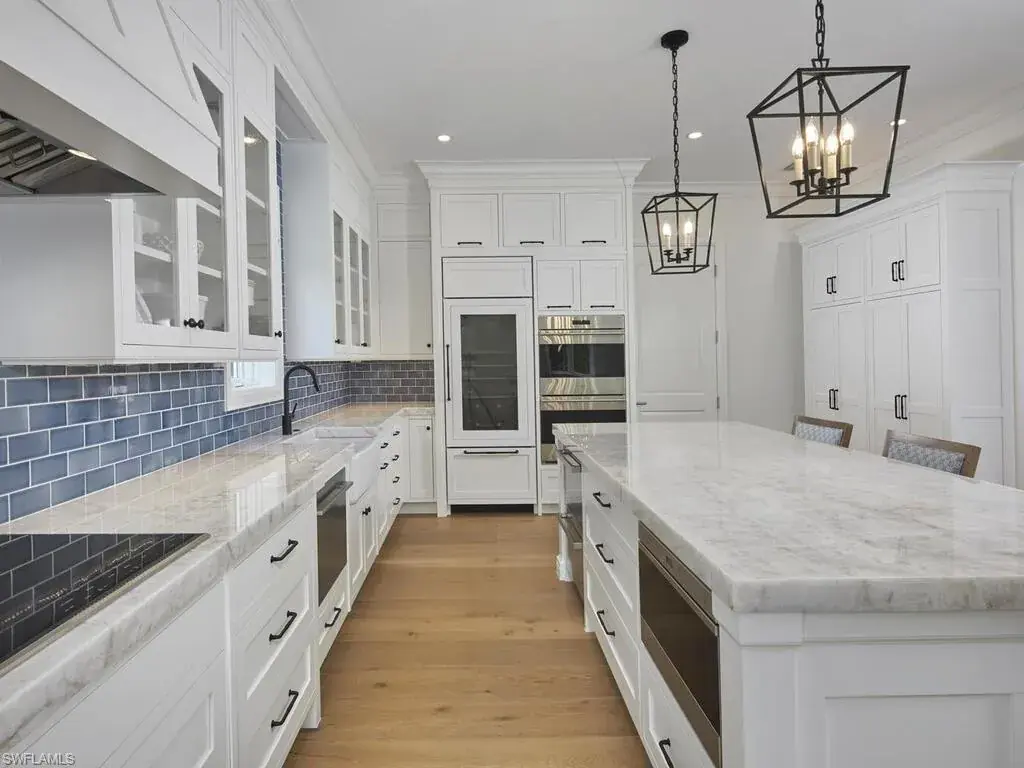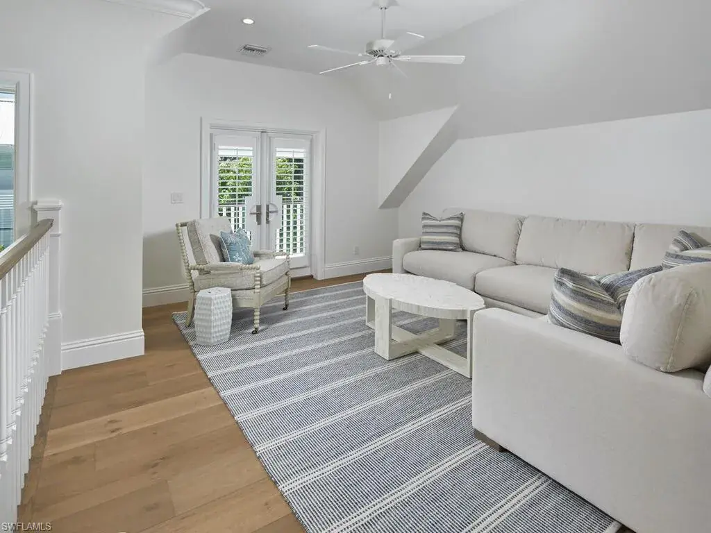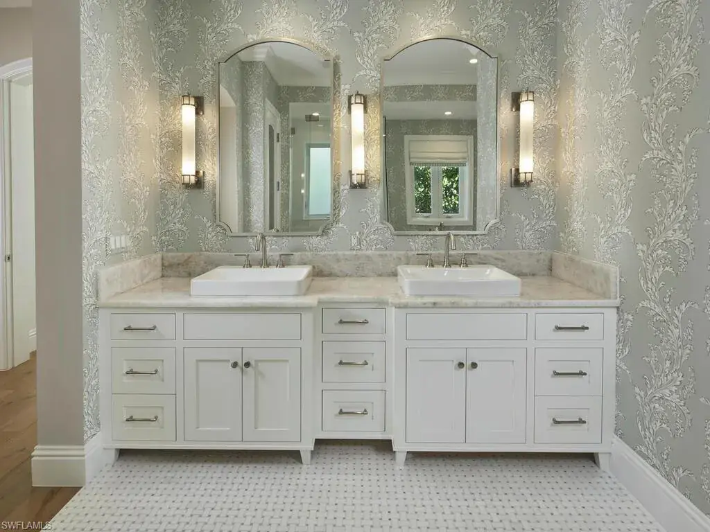 Coastal Home in the Heart of Old Naples. Four blocks from the beach, this 4-bedroom plus den, 3½-bath residence is perfectly positioned on one of the most coveted avenues in Old Naples with southern rear exposure in the desirable X500 flood zone. The home spans 3,772 square feet under air (4,262 total), featuring concrete block construction on both floors and impact-resistant windows and doors for lasting peace of mind. This home captures the essence of the Naples coastal lifestyle – light, bright, and beautifully finished. Completely renovated, the interior showcases custom finishes, designer wallpaper, wide plank wood flooring, plantation shutters and custom window treatments, blending timeless elegance with modern design. The chef’s kitchen features Quartzite countertops, high end Wolf and Sub-Zero appliances, dual wall ovens, beverage and freezer drawers, and a large island ideal for entertaining. The first-floor primary suite includes a spa-inspired bath, freestanding tub, and walk-in shower. Upstairs, two of the three guest bedrooms and a second family room open to private balconies, while both levels feature Maytag laundry appliances.Outdoors, enjoy the saltwater pool equipped with a Pentair automation system, heater and chiller, a brand new 2025 standing-seam aluminum roof and custom shutters, ensuring style and durability for years to come. This home is just minutes from Fifth Avenue South, Third Street South, Naples Pier, and Wynn’s Market.