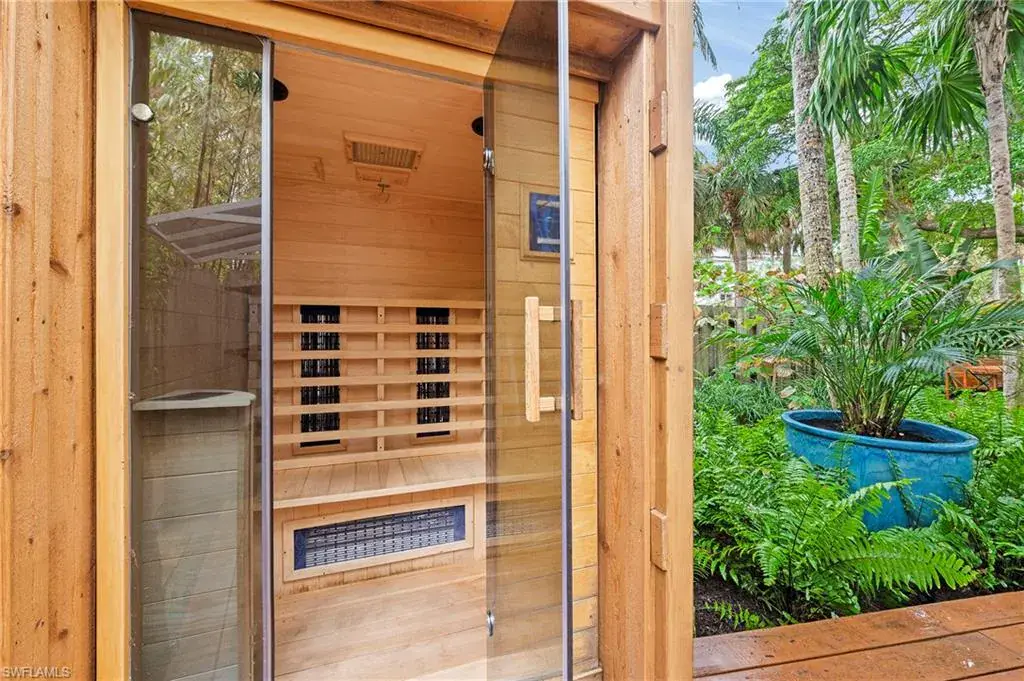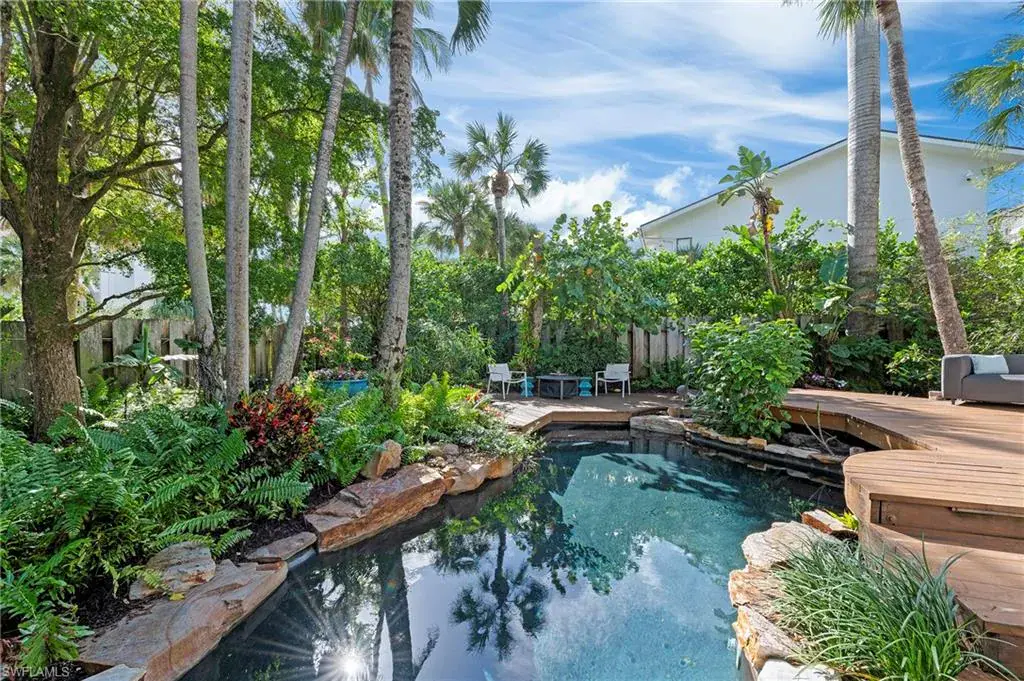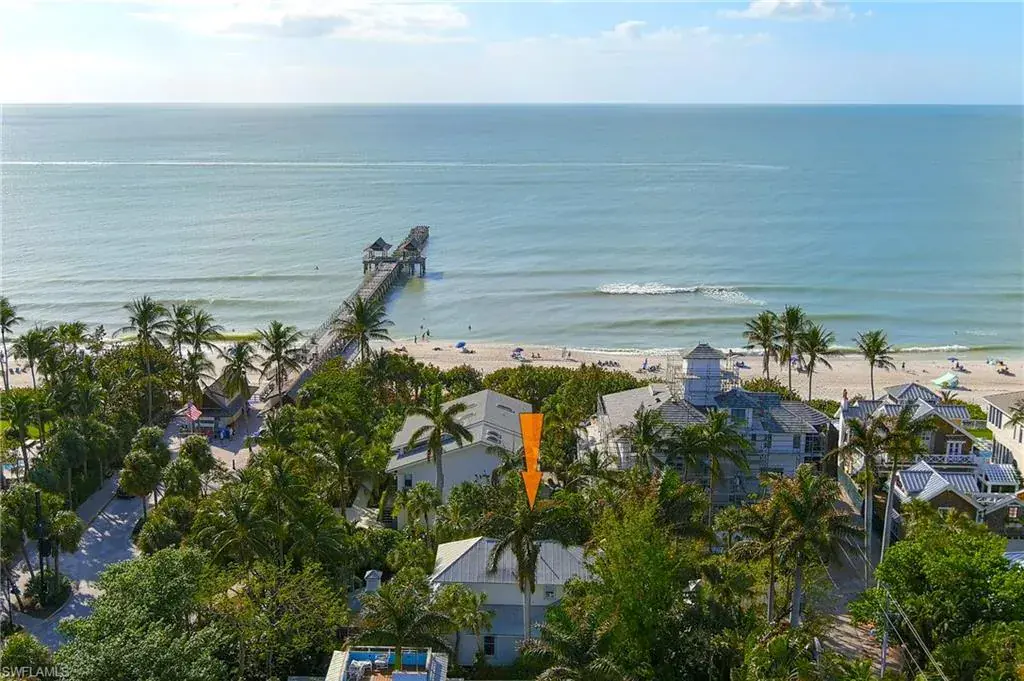 A rarely offered opportunity! Just steps from the iconic Naples Pier and the sugar-sand beaches of Naples, FL. This one-of-a-kind treehouse bungalow is tucked within a lush tropical landscape and offers the perfect blend of modern amenities and artistic character. Designed for both relaxation and entertaining, the property provides a true private retreat while being just moments from world-class dining, shopping, and the vibrant lifestyle of 3rd Street South. Inside and out, the home boasts a collection of unique features including a durable metal roof, a heated swimming pool, a private courtyard oasis, and a detached bar house with its own kitchen for effortless entertaining. Tranquil touches such as a koi pond, a “widows-watch” raised covered seating area, an infrared sauna, and an outdoor shower create a spa-like atmosphere, while alley access adds convenience and future potential. Set on an oversized 77′ x 151′ lot, the possibilities here are endless. For investors, the property offers strong potential as a vacation rental or as a new construction spec home in one of Naples’ most sought-after neighborhoods. For end users, it’s an extraordinary canvas to create your dream beach retreat just steps from the Gulf of Mexico. With the newly reimagined Naples Pier soon to be completed, this property represents a truly rare chance to own a piece of paradise in the heart of Olde Naples. This property is a MUST-SEE!