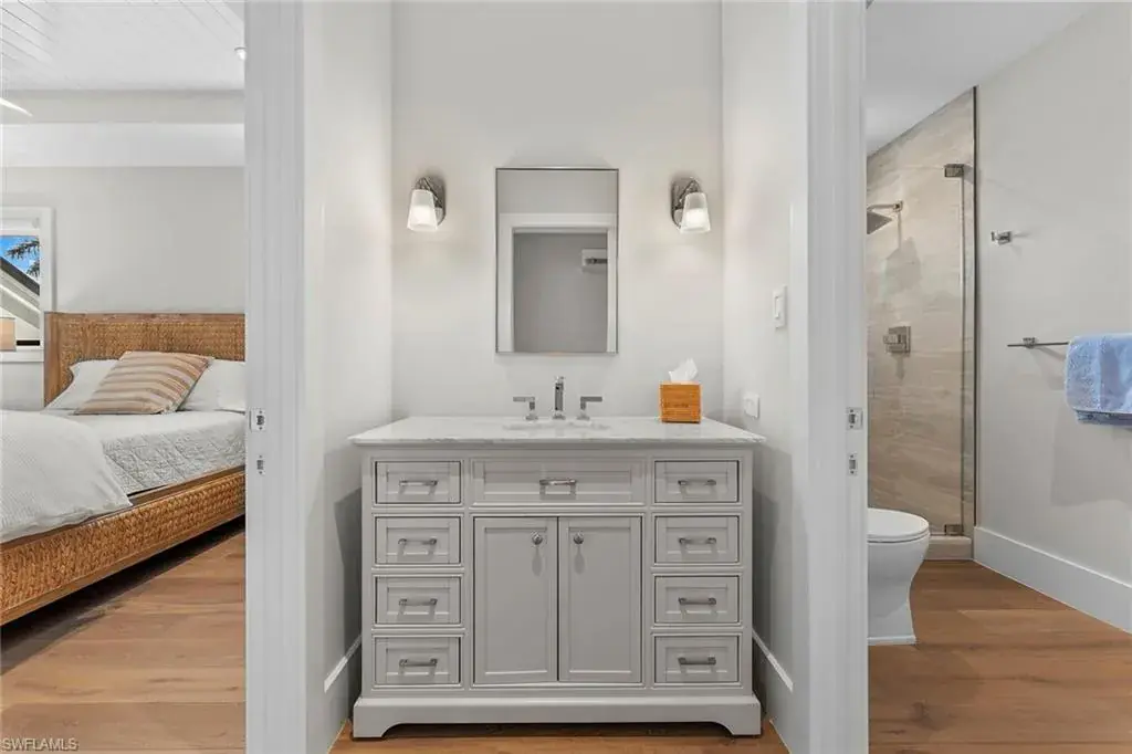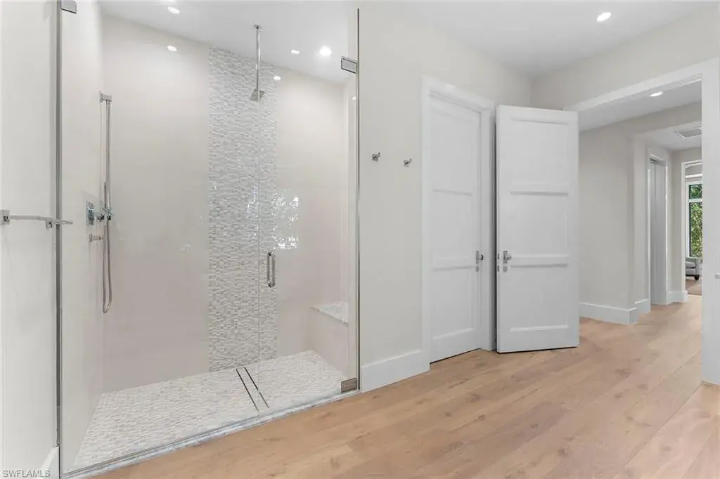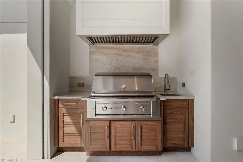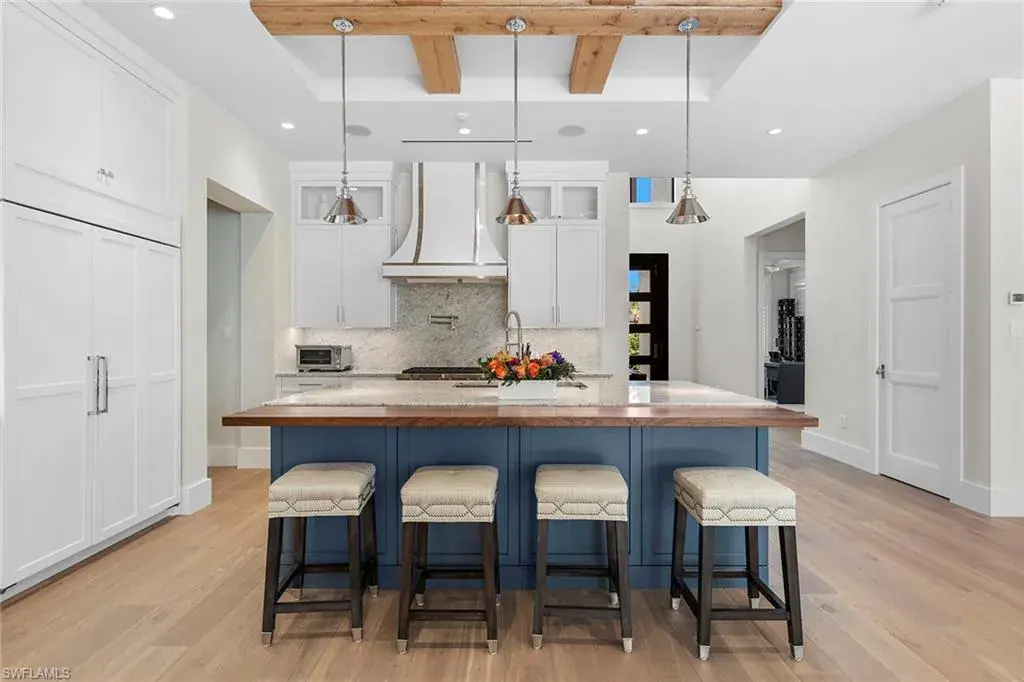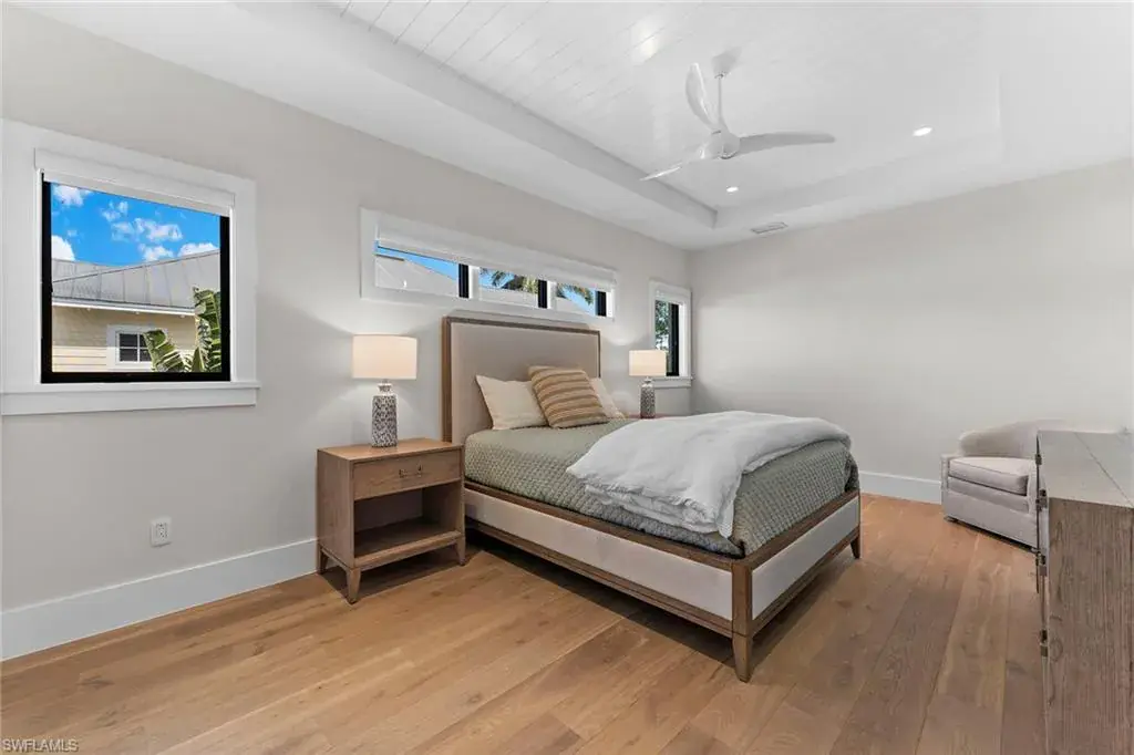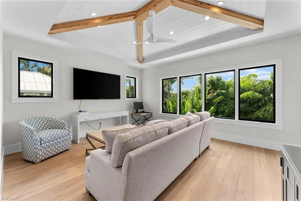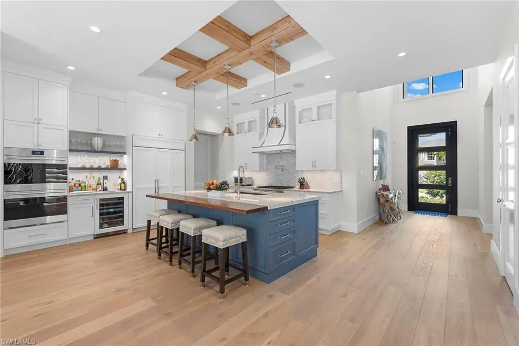 In the vibrant heart of Old Naples, this beautiful residence offers an unparalleled blend of elegance and coastal charm. Just a short distance from shopping and dining on Fifth Avenue and only five blocks from pristine gulf beaches, this exceptional property is the ideal retreat for those who crave luxury and convenience. Go inside to discover an open and airy floor plan, where natural light pours through expansive windows, illuminating stylish living spaces and linear stone fireplaces. The seamless indoor-outdoor flow invites you to relax in the private, lush landscaped backyard, complete with an inviting pool, tranquil fire pit, and multiple areas for lounging and entertaining. The spacious light-filled primary suite is a sanctuary, offering a serene retreat. The spa-like bath includes a soaking tub, a walk-in shower and dual vanities. The home also features four beautifully appointed upstairs guest suites, each designed for comfort and privacy, along with an additional upstairs living area. A generously sized laundry room and an oversized two-car garage complete the space, adding convenience and functionality to this remarkable home.