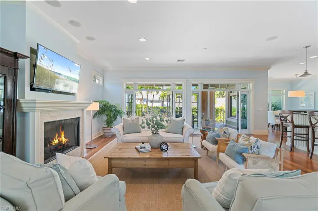 Between the Gulf of Mexico and Naples Bay, this coastal contemporary home captures the charm of Old Florida living. Just six blocks to the beach and Naples Pier, and moments from 3rd Street South and 5th Avenue, it’s perfectly situated for the Old Naples lifestyle. Filled with natural light, the home features 3 bedrooms plus a den, 3.5 baths, a gourmet kitchen, dining area, morning nook, and custom elevator. French doors open to rich wood floors and custom ceilings. Outdoor spaces include a front porch, second floor balcony, covered lanai, heated pool and spa, and lush tropical landscaping for privacy. Built to modern standards with impact windows, a whole-house generator, new A/C, and elevated construction that’s remained high and dry—this residence offers timeless coastal style and enduring quality in an exceptional location.