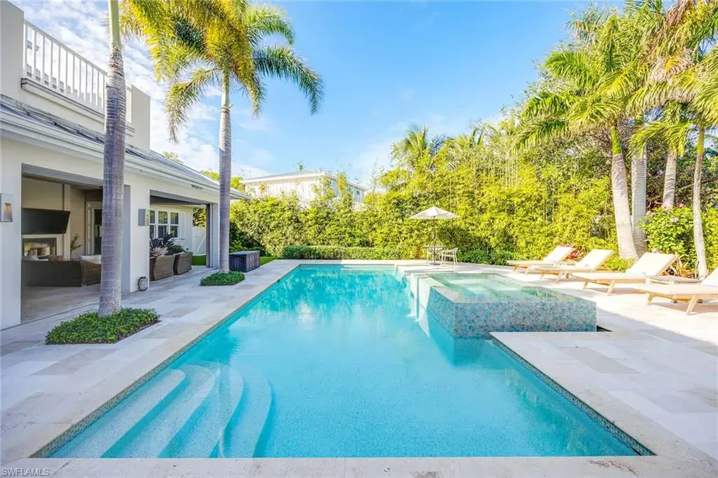 Experience the epitome of coastal luxury in this exquisite residence of five to six bedrooms and two living rooms on a tranquil, tree-lined street in walking distance to the pristine sands of Naples Beach. In the desired Ridge Lake neighborhood, this home is a testament to unparalleled craftsmanship and an unwavering commitment to the finest details. Indulge in culinary delights within the gourmet kitchen, a masterpiece of design and functionality. Display your vintages in the impressive glass wine room, a collector’s haven. The expansive outdoor living space is an entertainer’s dream, complete with electric roll-down screens and shutters. Pool deck allows for full sun all day. Built with uncompromising quality, this residence’s foundation has two stories of concrete block, and a poured concrete second floor in the X flood zone. Impact-resistant windows and doors, and a durable standing seam metal roof. The oversized garage will accommodate your vehicles, bikes, beach chairs and beach golf cart. This is the ideal home.