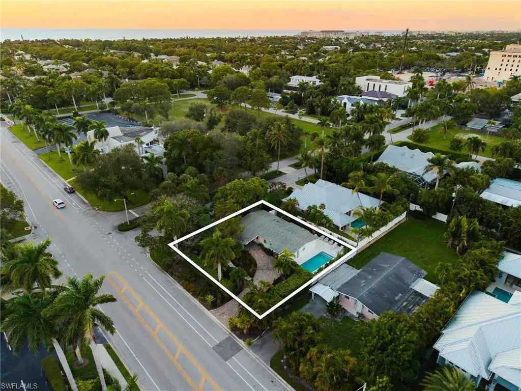 Perfectly positioned in the heart of Old Naples, this charming 3 bedroom, 2 bath coastal cottage offers a rare opportunity to enjoy Naples living now, with exceptional potential for future redevelopment. Just a short stroll or bike ride to the pristine Gulf beaches and the vibrant shops and dining of 5th Avenue South, the home features an open floor plan, updated kitchen, and inviting indoor outdoor flow. The private backyard oasis showcases refreshed mature landscaping, a heated saltwater pool, and tranquil patio space ideal for entertaining or relaxing. Whether enjoyed as is, used as a seasonal retreat, or envisioned as a future new build, this property captures the best of Naples lifestyle and location.