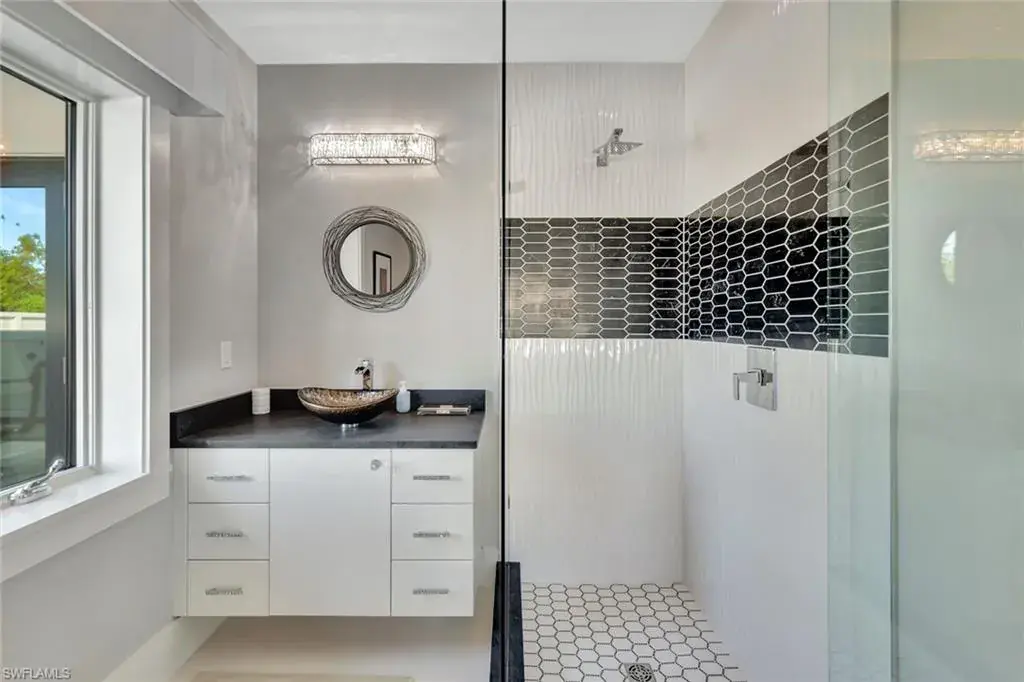 NOT IN A FLOOD ZONE & NEVER LOST POWER! This 2022 custom-built Old Naples home combines luxury and practicality in a prime location. Just steps from NCH, 5th Avenue, and the beach, this transitional cottage-style residence features nearly 5,000 sq. ft. of air-conditioned space, 5 en suite bedrooms (including a private guest cabana), and a study.