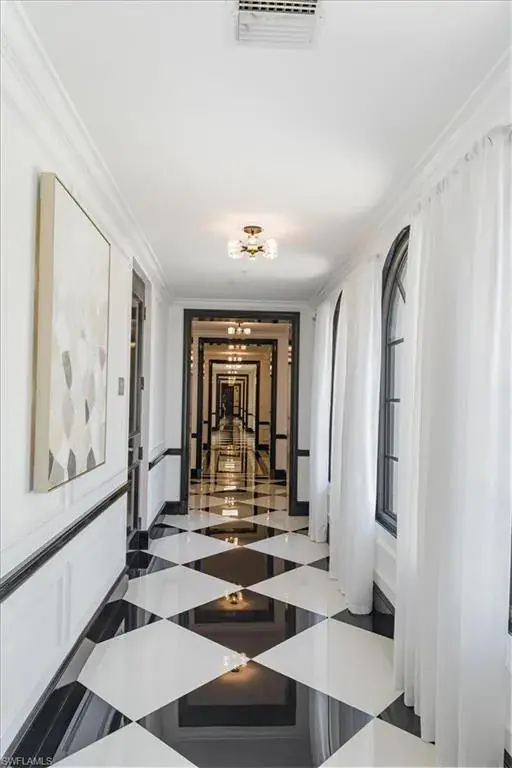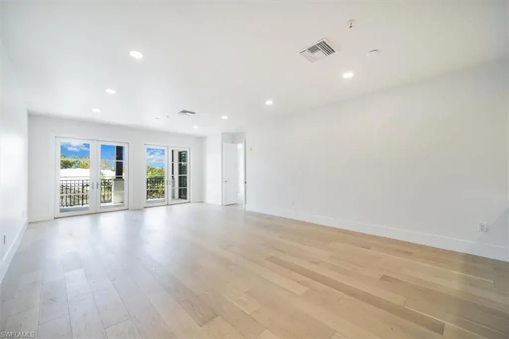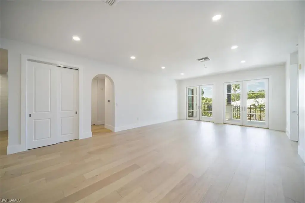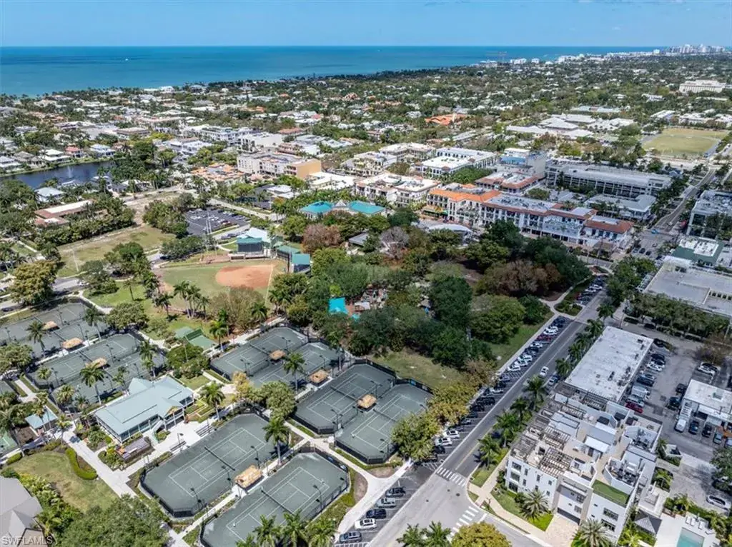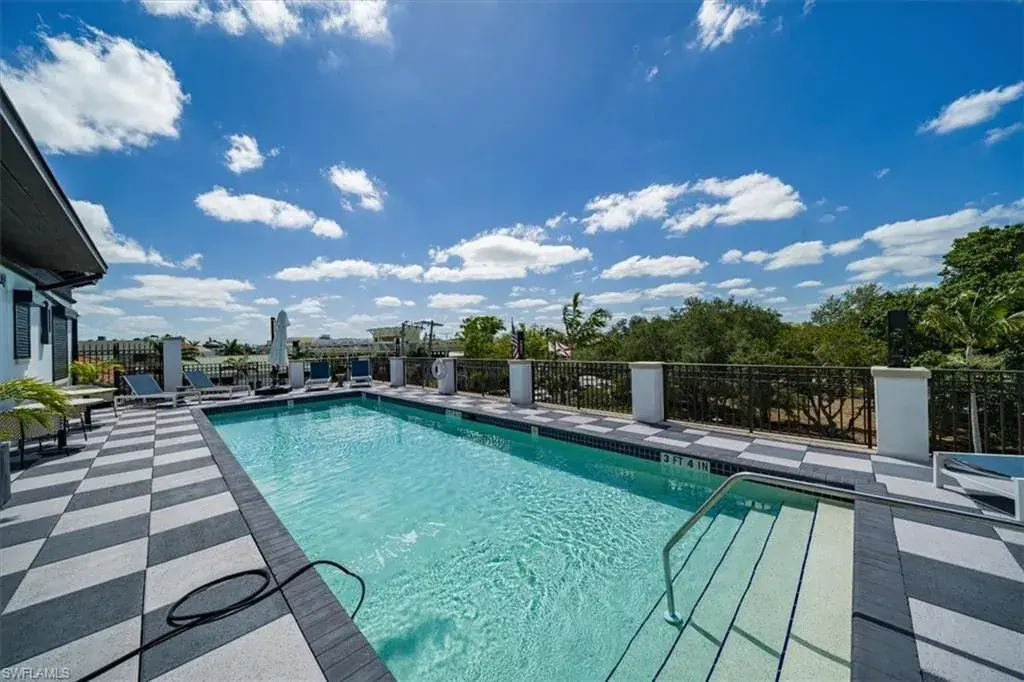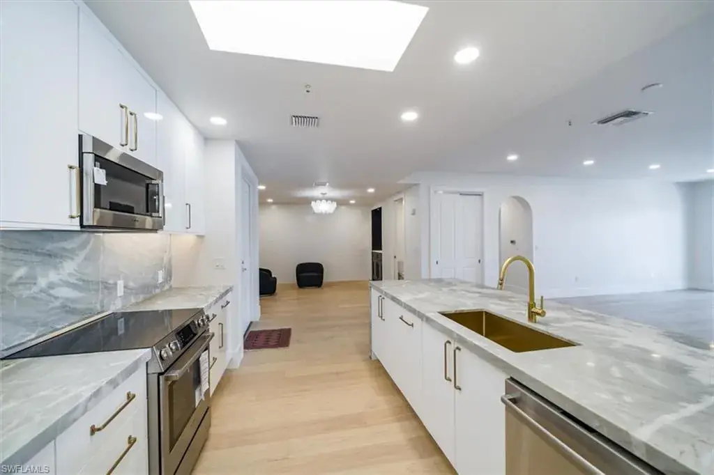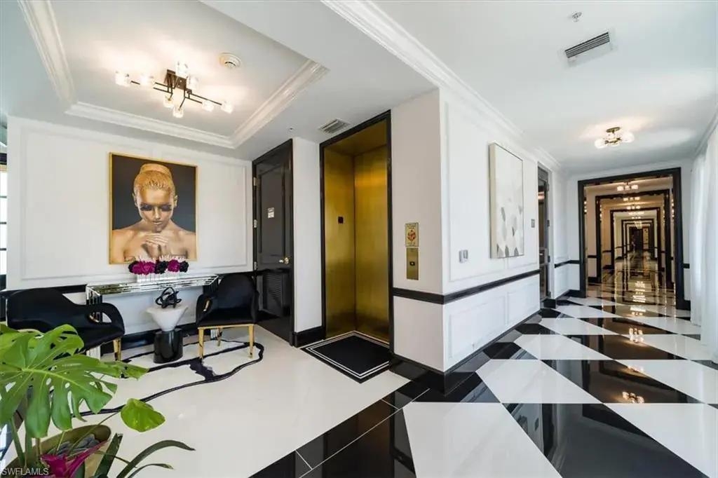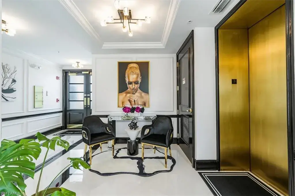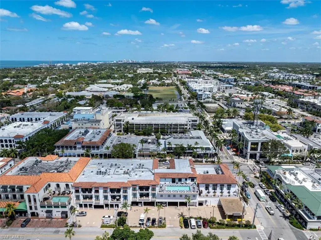 Experience the epitome of luxury living in the heart of downtown Naples, located above Provident Jewelers on prestigious 5th Avenue. This completely remodeled unit features 2 spacious bedrooms and 2.5 baths, all of which have been thoughtfully redesigned for modern living. Wide plank hardwood floors flow seamlessly throughout, while the chef’s kitchen showcases high-gloss white cabinets, brushed gold hardware, BOSCH appliances, and stunning quartz countertops. The den area includes a built-in bar and shiplap wall accents, and the private laundry area offers ample storage. The owner’s suite impresses with French door entry, hardwood floors, balcony access, and an en-suite bathroom with a large walk-in shower and floating tub. The guest suite features an en-suite bath, closet, and balcony access overlooking Cambier Park. Additionally, the residence boasts a rooftop swimming pool for owners and a reserved garage space secured under the building, just seconds away from sandy beaches, restaurants, and shops. There is nothing this convenient in downtown Old Naples with all these features and amenities. The very best available!