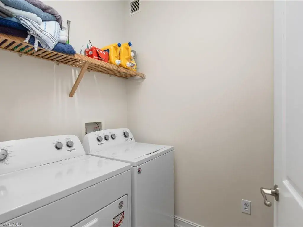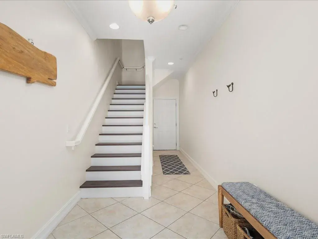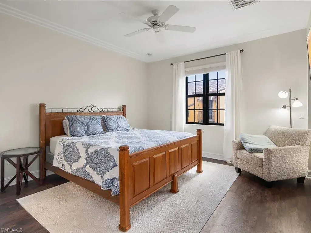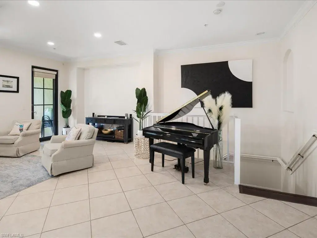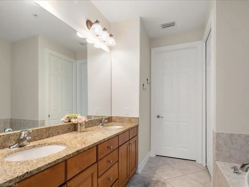 ENORMOUS PRICE REDUCTION! San Pablo model on 2nd floor with 3BR, 2BA, 2 car garage. Great room connects the living/dining area and kitchen into an open concept conducive for relaxation as well as entertaining. Walk out to the balcony from the living area and overlook the Spanish-style buildings with lush, fragrant greenery. Relaxation at it’s finest. The interior has recent paint and several of the rooms have been upgraded with luxury vinyl plank floors. Decorative touches include crown molding and baseboards. The primary bedroom has a spacious bathroom separate tub and shower, twin sinks, large walk-in closet and enclosed water closet. With a split floor plan, the additional bedrooms are at the other end of the condo for privacy. Pocket doors are a nice feature of the condo and the classy kitchen has SS appliances, granite countertops, tall functional cabinets, and seating at the bar. Ole’ lives like a mini city within Lely Resort as it has restaurants, theatre, pool, sauna, tennis, and much, much more!