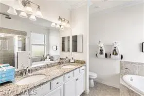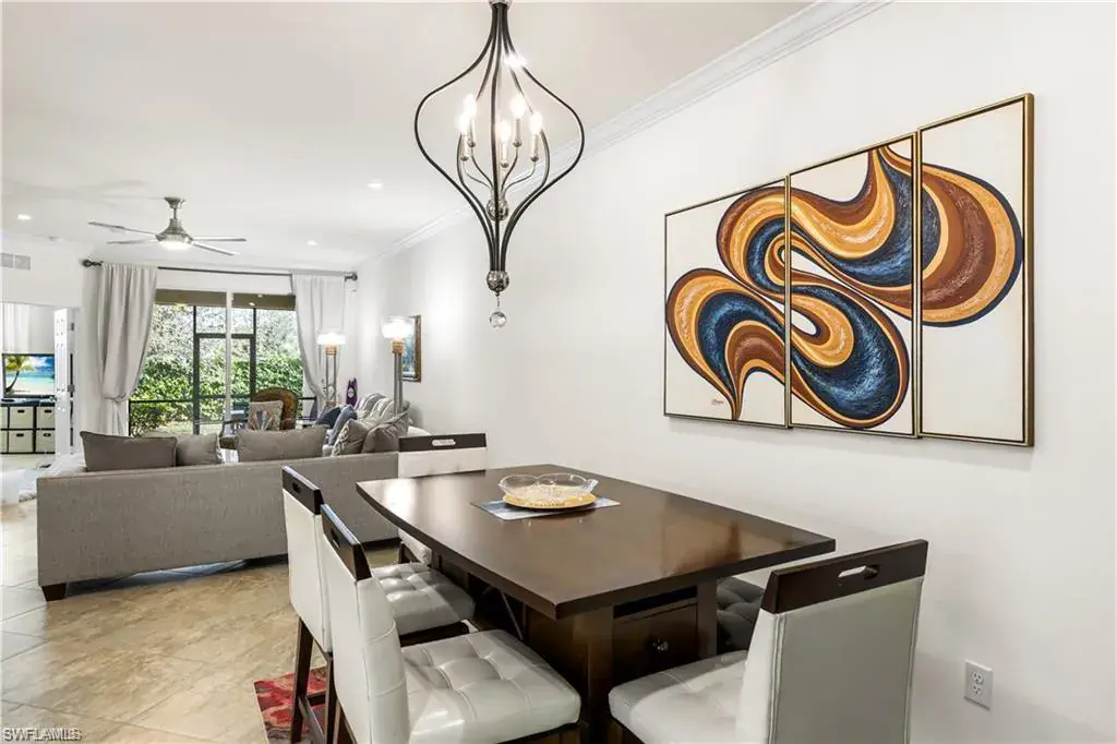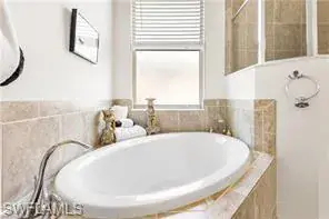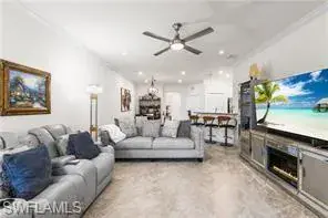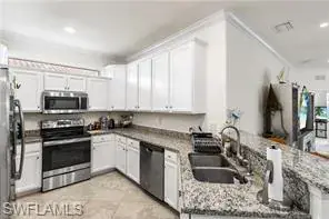 Featuring a stylish tile roof, brick-paved driveway, and lanai, this home offers storm shutters, an epoxy-coated garage floor, and more. Step inside to find large upgraded light neutral taupe tile set diagonally across the living, dining, and bathroom areas, enhancing the spacious feel. French doors lead to the den, perfect for a home office or additional living space. The kitchen and bathrooms boast attractive light stone granite countertops, with the master suite offering his and her closets, dual sinks, and a separate tub and shower. Each villa is an end unit, providing added privacy and Southern rear exposure, allowing natural light to fill the home throughout the day. Located in the gated community of Orange Blossom Ranch, you’ll enjoy resort-style amenities including, tennis, pickleball, sand volleyball, basketball courts, a fitness center, playground, resort-like swimming pools, hot tub, and a clubhouse. Pets are welcome! Conveniently close to brand-new shopping centers and dining options, with low HOA fees and access to great schools. This home is the perfect blend of comfort, style, and convenience!