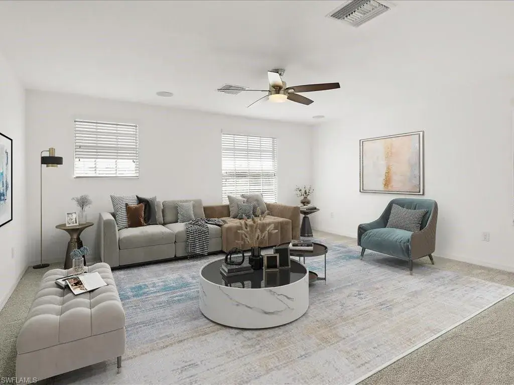 Large home, now the lowest price home of this size , in Orange Blossom Ranch !This exquisite Amalfi Model, nestled in the sought-after Orange Blossom Ranch, in Naples, Fl. has everything a family could desire—inside the gates and beyond. This 4 bedroom and three bathroom home has a den and a bonus room! Built in 2014 and situated on a premium corner lot, this two-story home has been meticulously updated with fresh landscaping and new paint both inside and out. The modern kitchen features brand-new , and never used, stainless steel appliances, and the second floor boasts newly installed plush carpeting for added comfort.