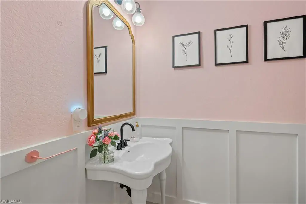 From the moment you step inside, you’ll appreciate the attention to detail. The interior features wainscoting in the bathroom, removable wallpaper, and stylish decorative fixtures throughout. The kitchen boasts a custom pantry door, while the half bath shines with a unique custom sink for a touch of elegance. Enjoy the Florida breeze year-round on your screened front and back lanais, with the rear lanai offering unobstructed sunset views over a tranquil canal and no rear neighbors for ultimate privacy. Nestled at the end of a quiet dead-end street, this home enjoys minimal traffic, providing a serene living environment.
