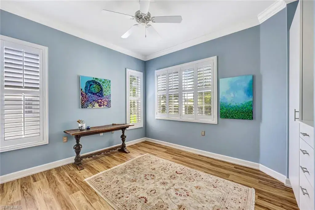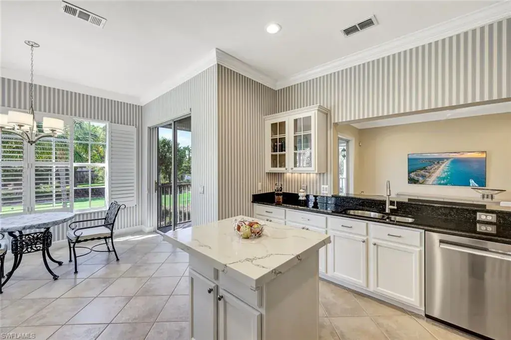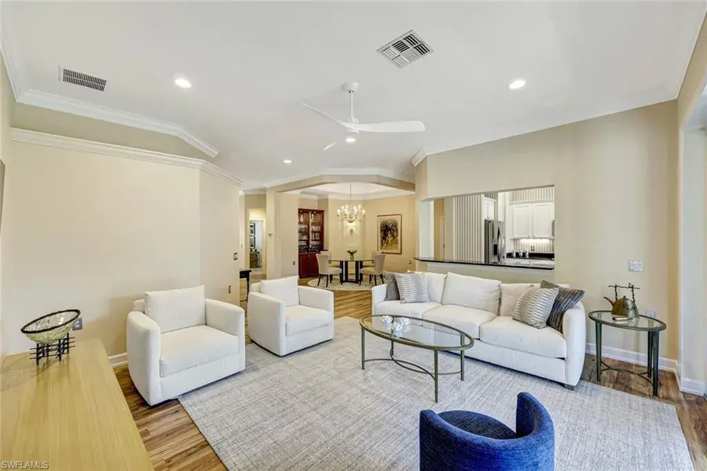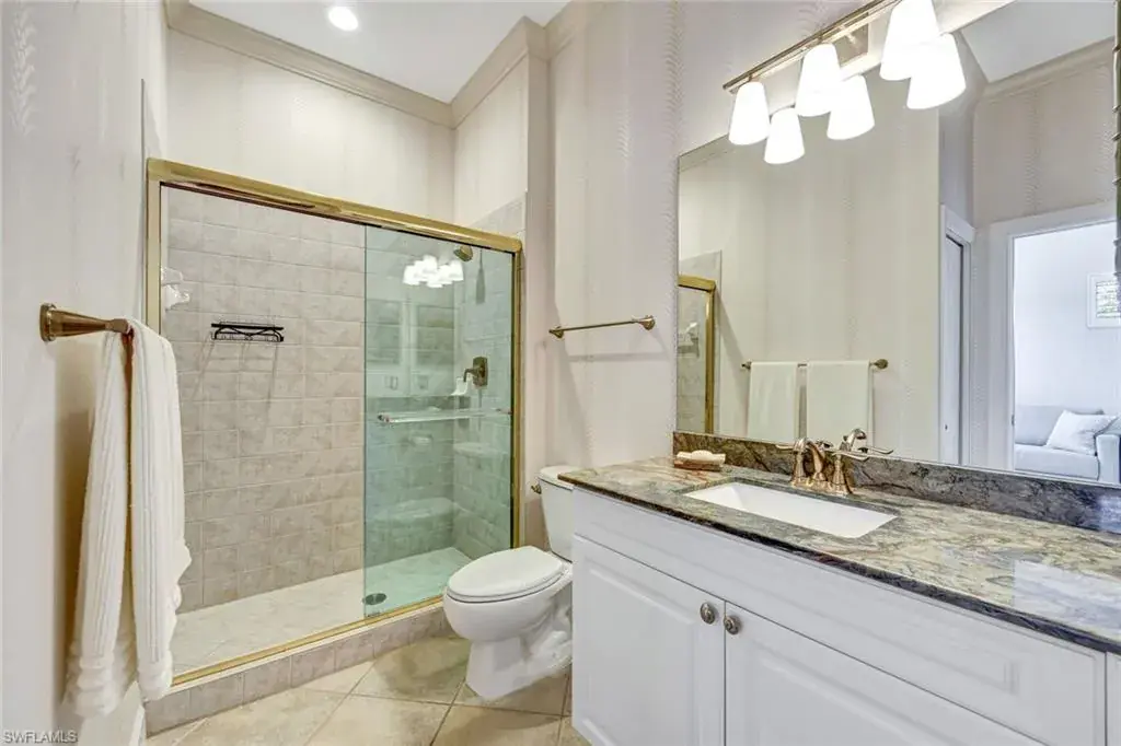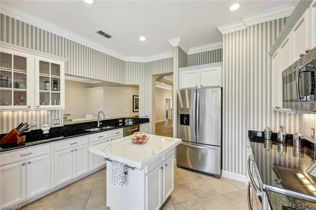 Postcard-perfect panoramic GOLF & WATER VIEWS from this SOUTH facing lakefront building at the very END OF THE CUL-DE-SAC street make for picturesque as well as peaceful living at Osprey Pointe in PELICAN MARSH. The premium location is topped off with a most desirable coach home layout. Designed as an UPPER-FLOOR END UNIT with a roomy 2-CAR GARAGE, the spacious 3 BR+2 DEN/3 FULL BA floor plan is complemented by an expansive screened lanai. TEN-FOOT CEILINGS w/ 11-ft. coffers create light-filled spaces that are enhanced by rich crown molding and a neutral color palette throughout. Distinctive features range from a PRIVATE ELEVATOR and lanai access from the great room, morning room and owner’s bedroom, to an island kitchen with double ovens and custom closet systems in all bedrooms. Meticulously maintained, the home is upgraded with newer AC, water heater and appliances. This REMARKABLE FIND is elevated by a quiet, intimate lifestyle at OSPREY POINTE offering a private pool w/ hot tub and renovated clubhouse for social gatherings. NEW METAL ROOFS & GUTTERS + EXTERIOR PAINTING ALMOST COMPLETED. At the Pelican Marsh community center you find a restaurant w/ al-fresco dining, six pickleball courts, eight tennis courts, bocce courts, a state-of-the-art fitness center w/ varied classes, and social spaces. Miles and miles of walking paths are the icing on the cake. Pelican Marsh Golf Club memberships are optional. Located off US 41 in North Naples, Pelican Marsh residents enjoy three access-controlled gated entrances to the east, south and west with close proximity to Vanderbilt Beach; Vanderbilt Galleria and its weekly Farmers Market or Mercato for Whole Foods shopping and a fun night out are just around the corner.