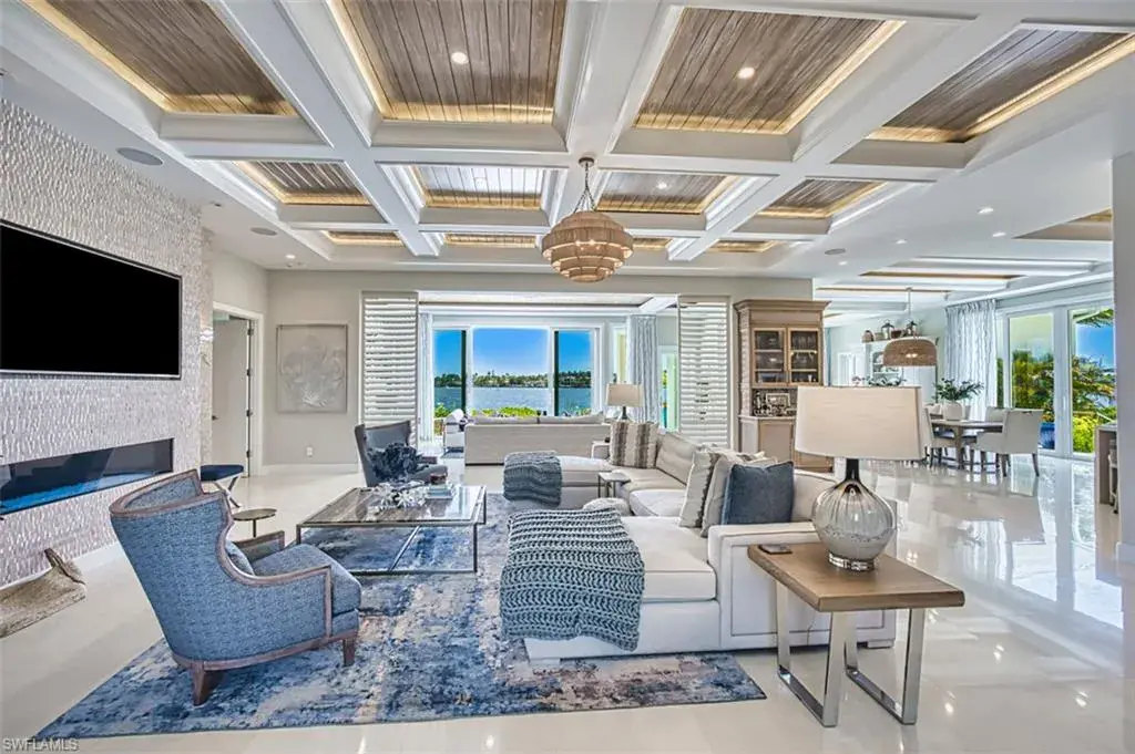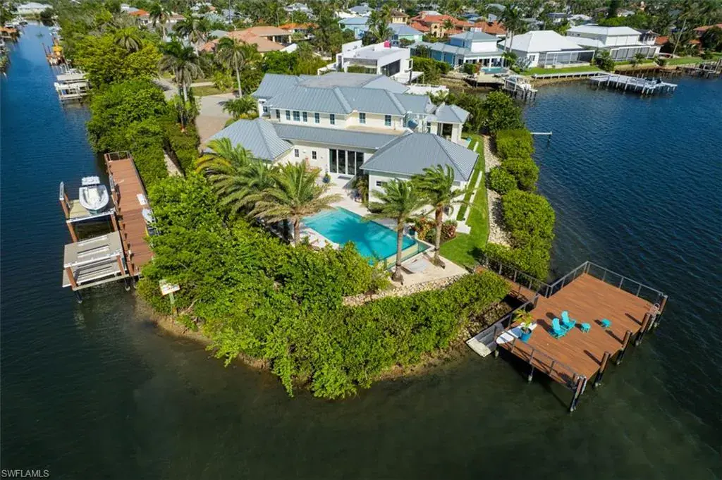 Offering spectacular waterfront living at it’s finest is this crowning jewel of Jewel Box Avenue. Residing at the point of Chesapeake canal and Naples Bay stands this 4 bedroom en-suite estate with panoramic west facing water views from nearly every room. Owners will enjoy the first floor primary en-suite with 2 large walk in closets, huge primary bath with separate shower and soaking tub. Steps from the primary bed is a cozy outdoor sitting area with electric (remote controlled) retractable screens and shutters to enjoy the amazing sunsets over the bay. Guest will enjoy the second floor privacy with elevator access. Each en-suite has its own wrap around balcony access with spacious lounge areas and west facing water views. Additionally the second floor offers multiple en-suite wet bars, sitting area and media room that could easily be used as a 5th bedroom. Perhaps the star of the show is the nearly 8000 sq-ft of outdoor living space with waterfront infinity edge pool, 2 spas, outdoor kitchen, pool bath and multiple docks and boat lifts. Boaters will appreciate this section of Naples Bay is a no wake zone and the home resides well away from the channel marked area thus offering peace and quiet calm waters. Additionally the boat lifts have been strategically installed on the north canal side of the property offering further protection. The area has recently undergone extensive dredging and this property can dock larger vessels with a 24,000 lbs boat lift and 13,000 lbs jet ski/kayak platform lift. The list of upgrades to this home are extensive with a recent 7 figure renovation and refurnishing which WAS NOT a result of flooding or any storm damage. If you are looking for a well built turnkey waterfront property that lives like a high end resort 1340 Jewel Box should be considered.