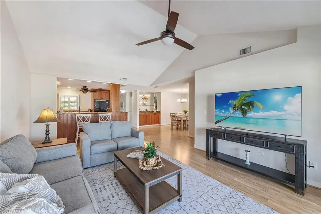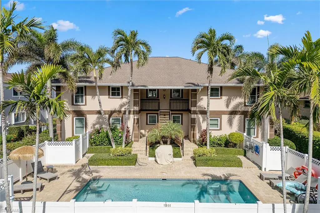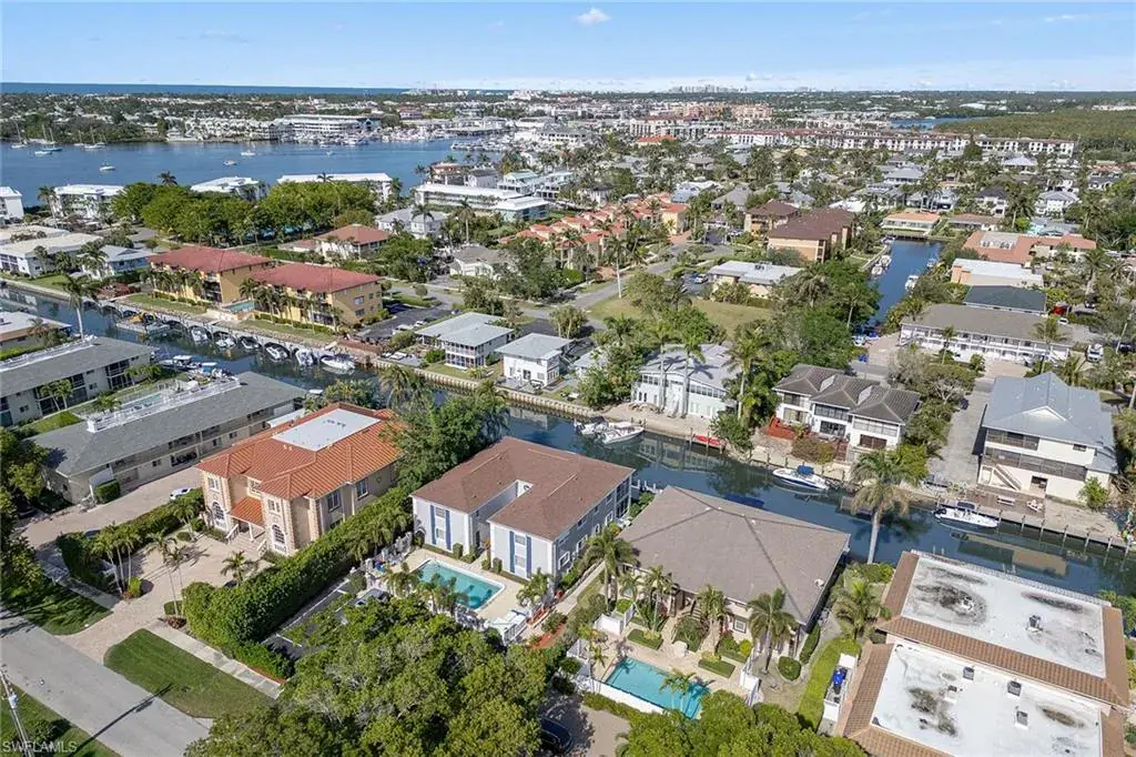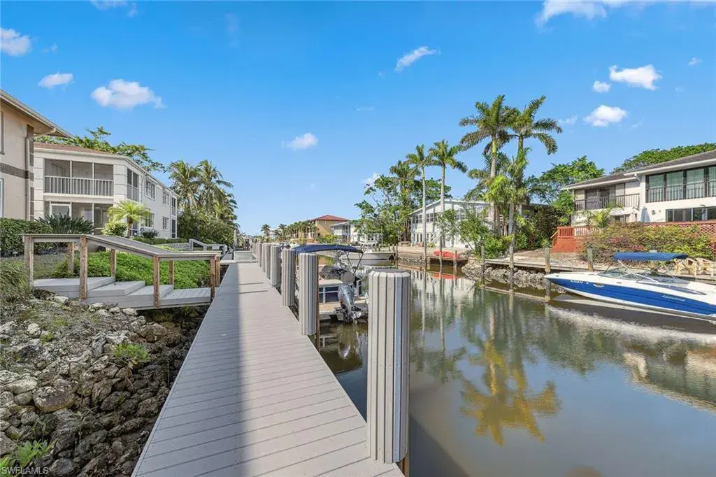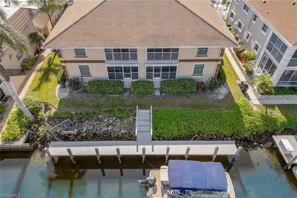 Investors – endless potential – prime investment opportunity on the water in Naples and close to downtown 5th Avenue, Naples. This well-maintained, solid concrete block construction quadruplex on the water offers four units with excellent income potential. Six ample parking spaces, a large shared heated pool, with a 6-foot privacy fence give the occupants a perfect getaway retreat. Each furnished unit has two full baths and two full bedrooms, a fully equipped kitchen with granite countertops, laundry room, dining room, open-concept living room (second-floor units have vaulted ceilings in living area) and a lanai overlooking the water. Each unit has wood/tile flooring, plantation shutters, custom glass shower doors and new ceiling fans. First-floor units offer a conjoining door that allows for the entire first floor to be shared as one unit. (Perfect for a large family.) Each unit can be rented individually. Boaters enjoy a brand new 60-foot boat dock with composite decking, boat slip equipped with bumpers to protect your vessel and quick, no-bridge access to Naples Bay and the Gulf. Your vision, your opportunity!