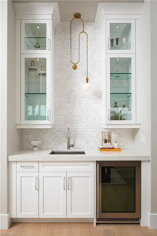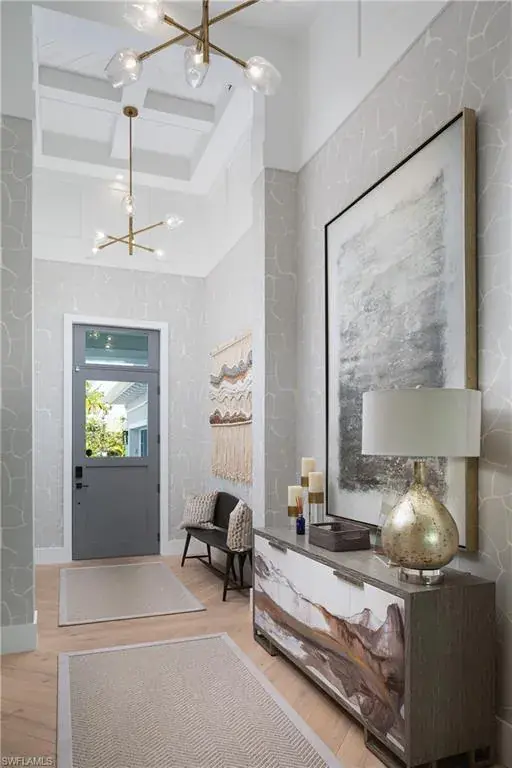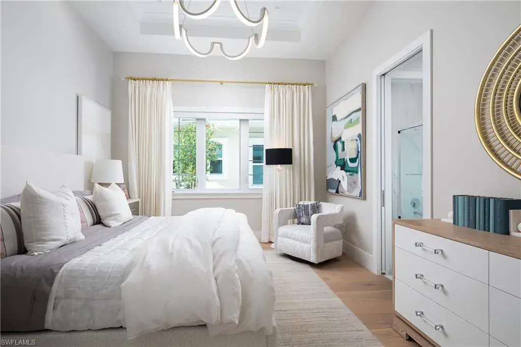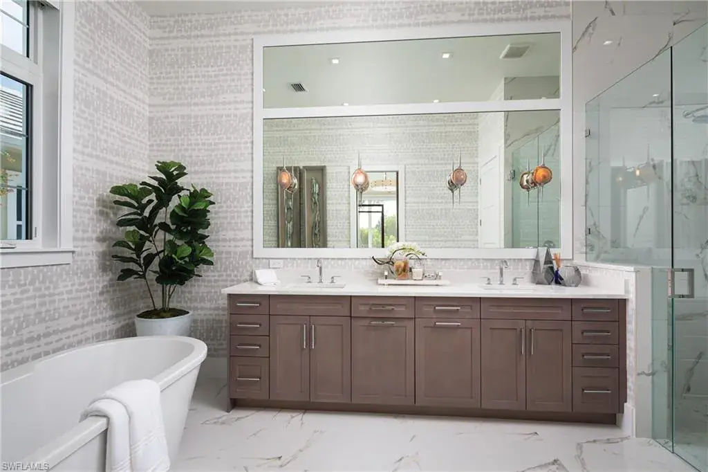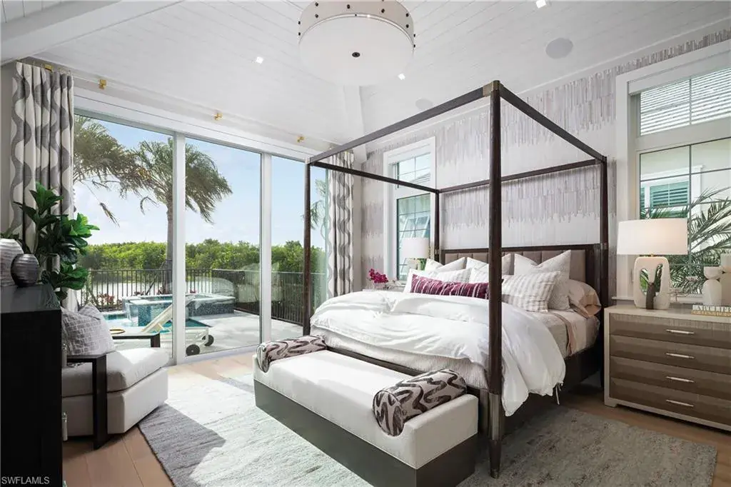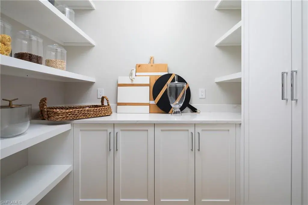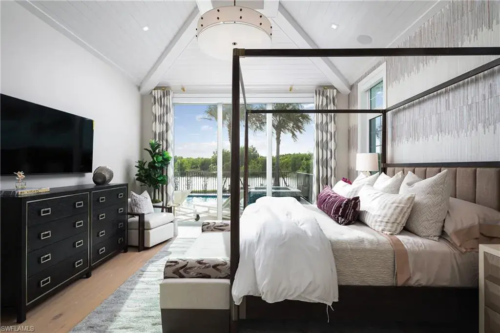 Magnificent, fully-furnished new home in the sought after Fiddler’s Creek village of Oyster Harbor. Award-winning interior design makes this home a jewel to behold with so many designer-selected finishes – custom millwork and built-ins, marble fireplaces, designer wallpaper, high-end lighting, custom art, window treatments and bespoke pillows and bedding throughout. Interior boasts soaring ceilings with shiplap, wide plank European white oak flooring, smooth drywall and an open floorplan that emphasizes a seamless transition to outdoor entertaining. The chef’s kitchen is outfitted with Thermador appliances, European style cabinets with double stacked uppers, walk-in pantry with built-ins, quartz counters and slab quartz backsplash. Multiple sliding doors open to the expansive covered outdoor living area featuring retractable screens, vaulted ceilings, TV, outdoor kitchen with built-in grill, custom pool and spa and marble pool deck. Home is finished with impact windows and doors, garage storage system and epoxy garage floor.