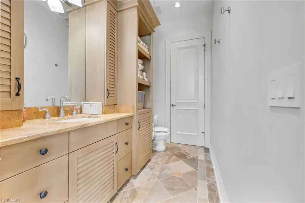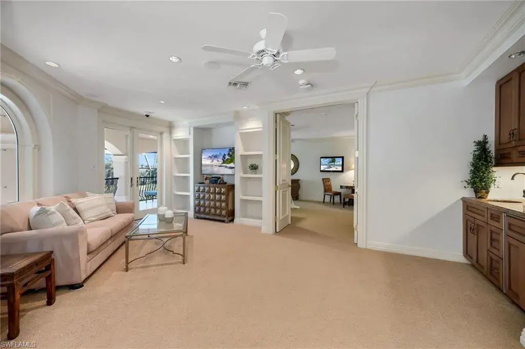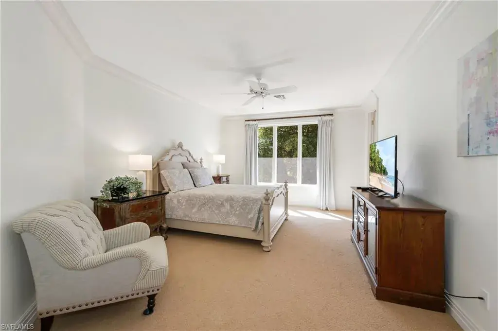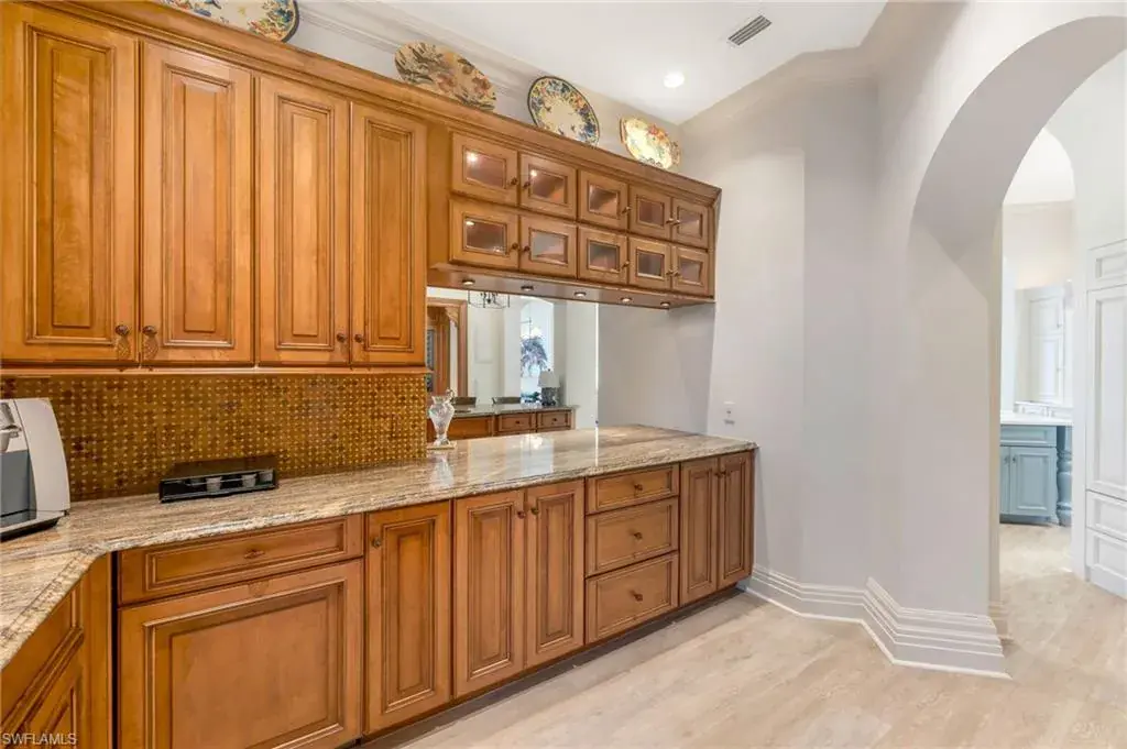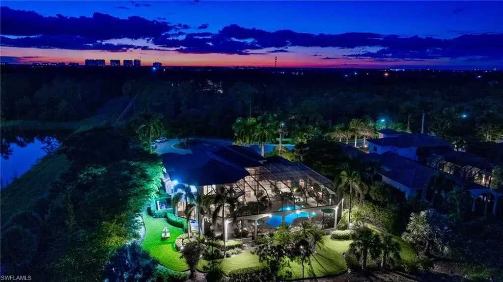 NO WAITING-GOLF CLUB MEMBERSHIP available immediately! Absolutely stunning home nestled on almost an acre on Tee 15 South! Enter the grand front door into the Grande Foyer anchored with a fireplace & curving stairs to the 2nd floor and with floor to ceiling windows/sliders and extending to beautiful lanai and the good morning sunrises beyond. New flooring throughout first floor, upgraded to LED lighting throughout, and upgraded light fixtures inside & out. This home is ideally designed for entertaining, from the formal & informal living spaces, the welcoming wet bar complete with wine refrigerators and gracious seating. The artisan designed kitchen is a chef delight with top tier appliances, warming tray, trash compactor, range hood, double oven/cook top, single wall oven, garbage disposals in both kitchen sinks, stainless steel sinks, touch facet on main kitchen sink indoor icemaker, new quartz countertop offering “miles” of prep space, a custom island, and 3 self-cleaning ovens. The Butler’s Pantry is well equipped with additional dishwasher & sink, beverage fridges, 2 additional icemakers, loads of storage and additional countertop spaces. 2 reverse osmosis in kitchen & outdoor kitchen. The dining room has beautiful natural light. There is a sink and refrigerator in the upstairs entertainment center. Each of the generous bedrooms are en-suite and the primary suite is an oasis of relaxation with a seating area, spacious walk-in closets and leading to a spa inspired bath complete with oversized soaking tub, masterful shower & dual vanities. The lanai is opulent, with a soaring two story screen, cozy covered entertaining space, full outdoor kitchen, 2 TV’s on lanai, outdoor speakers for surround sound, new outdoor fans, all new grill parts for both fireplaces, all overlooking a sparkling pool with integrated spa, soft & hard scaping including a Koi Pond with waterfall! Updates include 4 A/Cs new in past 5 years, new roof in 2022, new pool heater & pump, 75 gallon hot water heater, whole house Lutron lighting system, whole house Creston control system, 30 zone whole house water shutoff, whole house water filter & softener, termite control around perimeter, indoor/outdoor security cameras, outdoor security lighting, added landscape & landscape lighting, storm screens, garage door spring replaced, garage cabinets, outdoor sink in garage, finished floor & lighting in garage and it is air conditioned! Mediterra offers world-class amenities, including two Tom Fazio-designed 18-hole championship golf courses, a Gulf-front beach club & restaurant, pickleball, tennis & bocce courts, an updated clubhouse, a soon-to-be expanded sports & lifestyle center and more.