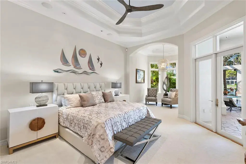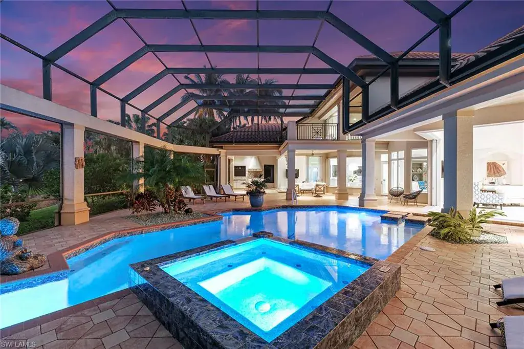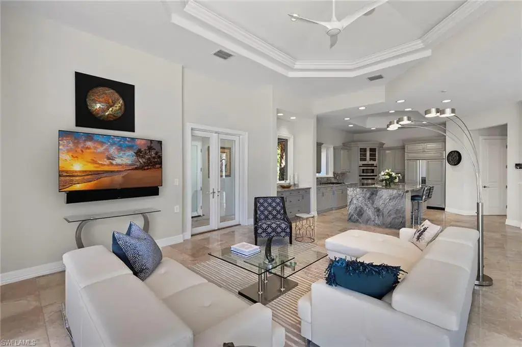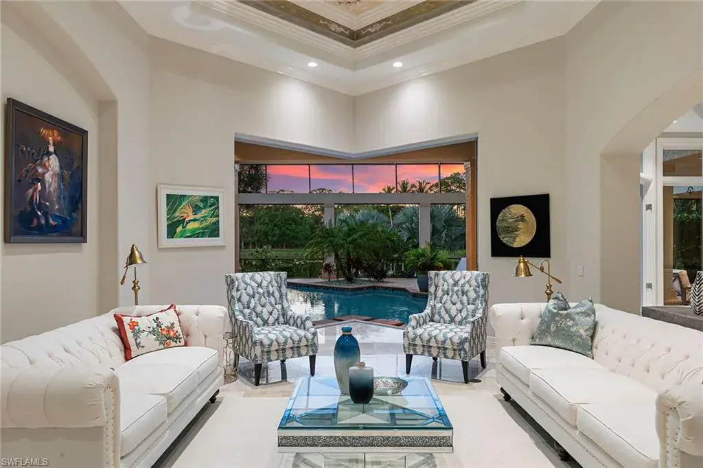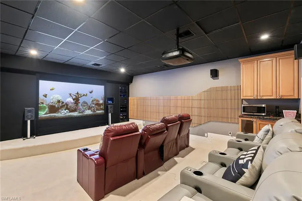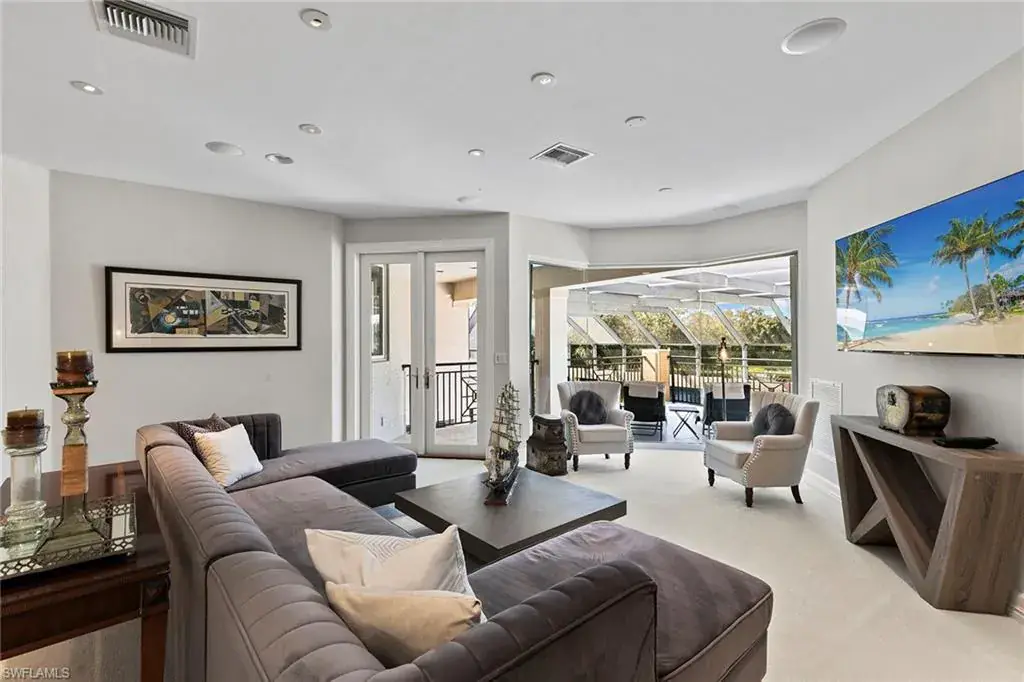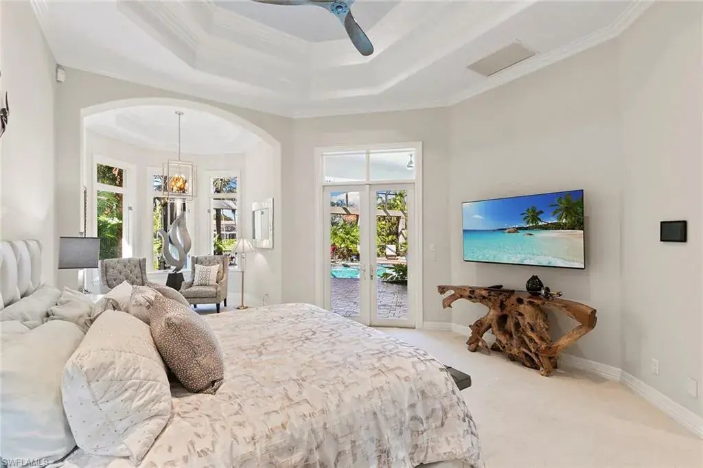 Nestled on a private homesite over 3/4 of an acre, this exceptional residence offers ultimate privacy and peace of mind, enhanced by a roof completed in 2018. Inside, state-of-the-art technology — including three touch panels, an iPad station, and 16 cameras — ensures your comfort and security. Enjoy the convenience of a private movie experience in your home theater, or convert this space into a FIFTH bedroom for extra guests. The stunning foyer is bathed in natural light through expansive glass walls, leading you into an open, airy living space. Zero-corner sliding doors offer seamless transitions between indoor and outdoor living, inviting you to the pool and outdoor entertaining area. The spacious kitchen, featuring a wet bar with an additional cooktop and wine cooler, is perfect for both casual dining and gourmet cooking. For the ultimate convenience, the three-car garage includes GarageTek flooring and an auto lift for a fourth car. With three generous guest suites, a home office with built-in desks, and a luxurious primary suite complete with a morning kitchen and ample closet space, this home is designed for those who appreciate both comfort and elegance. Imagine stepping onto the soft sands of the Gulf, with the tranquil waves lapping at your feet and the sky ablaze with a golden sunset. This is everyday life at Mediterra’s fully renovated, private Beach Club — reopening early summer! From the moment you arrive, your experience is effortless: valet parking, reserved lounge chairs, and umbrellas awaiting you, or set up on request for the ultimate beachside comfort. With 10,000 square feet of space, the Beach Club offers a variety of luxurious amenities, including indoor and alfresco dining, a full bar, a sparkling swimming pool, and changing rooms with lockers for your convenience. As the sun begins to set, indulge in a dinner while the vibrant colors of the horizon provide the perfect backdrop to your evening. Located within the exclusive, award-winning community of Mediterra, you’ll have access to a host of world-class amenities, including two Tom Fazio-designed golf courses offering unlimited afternoon play, pickleball, tennis, bocce, and so much more. Whether you’re enjoying a relaxing day at the Beach Club, playing a round of golf, or unwinding at home, nothing compares to the lifestyle Mediterra offers. Come, live the dream.