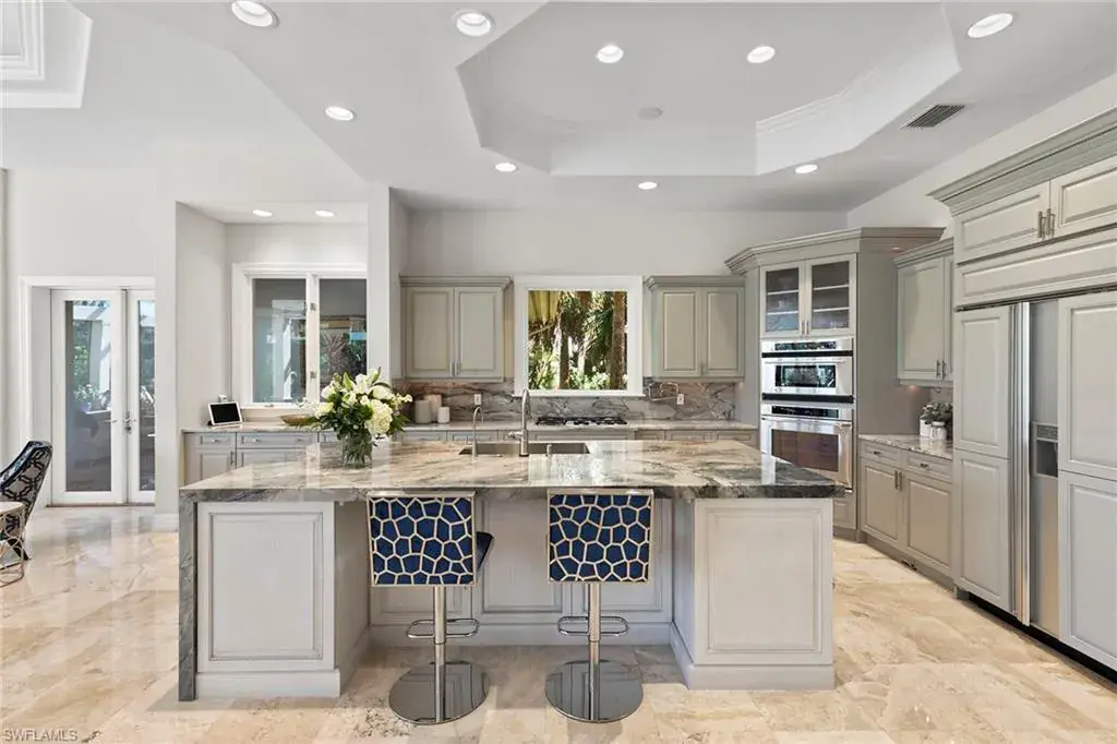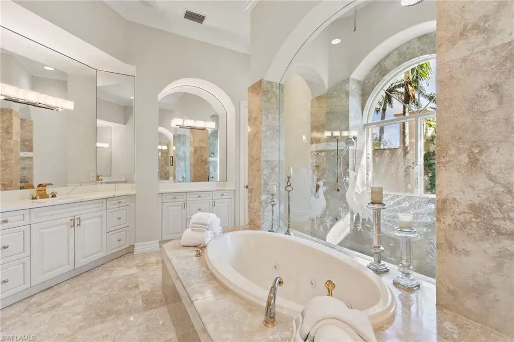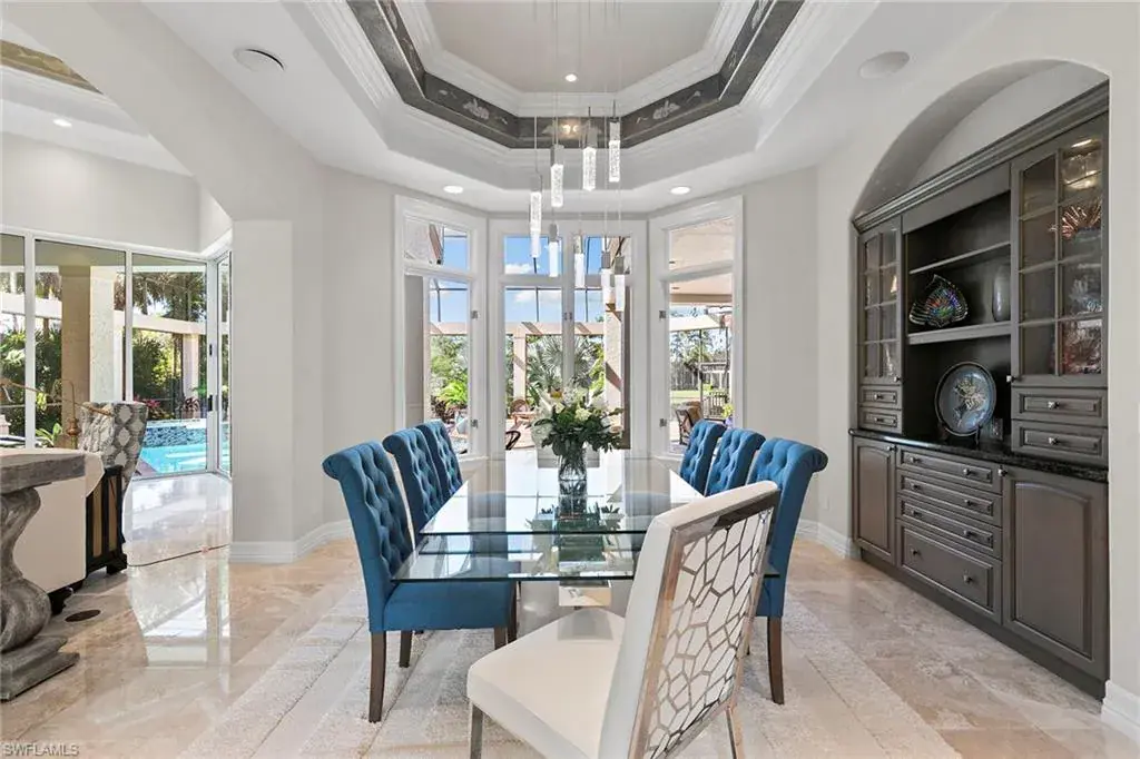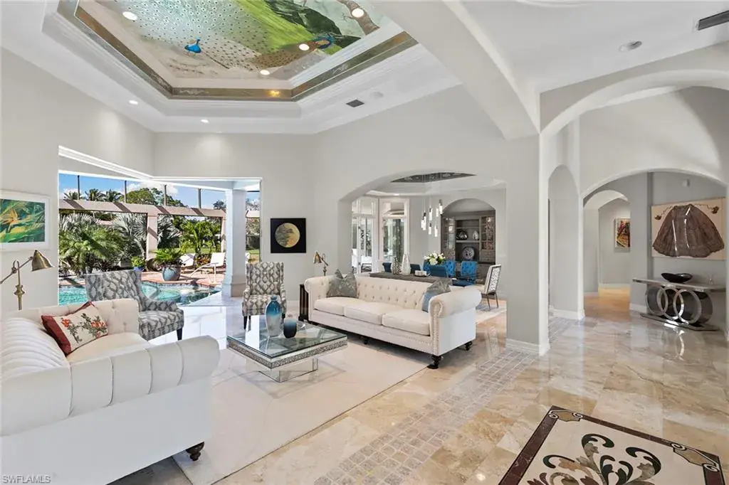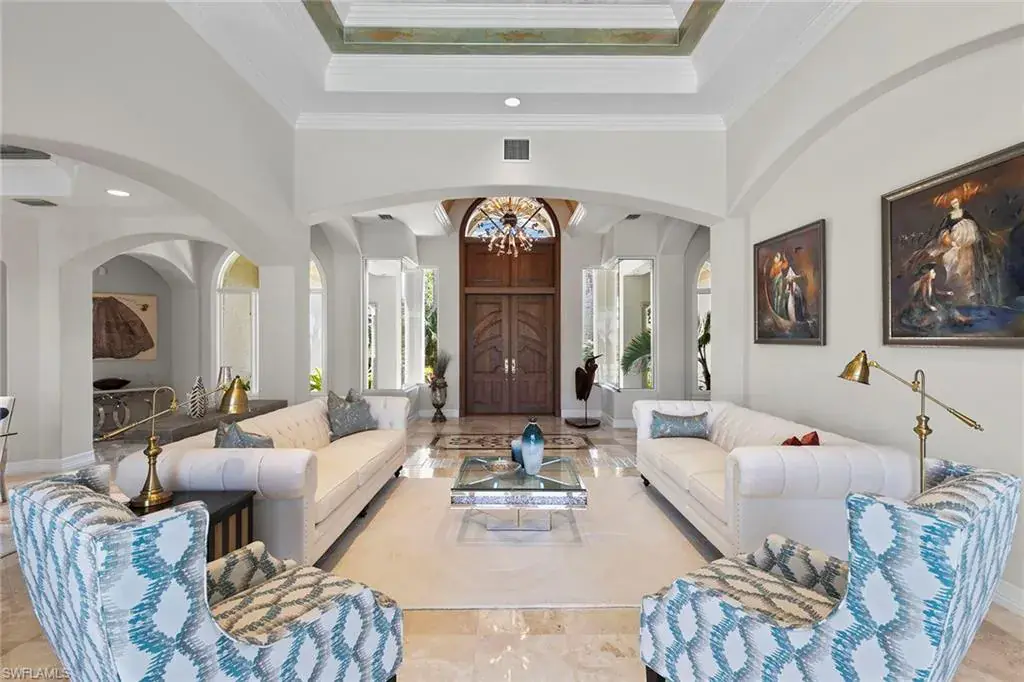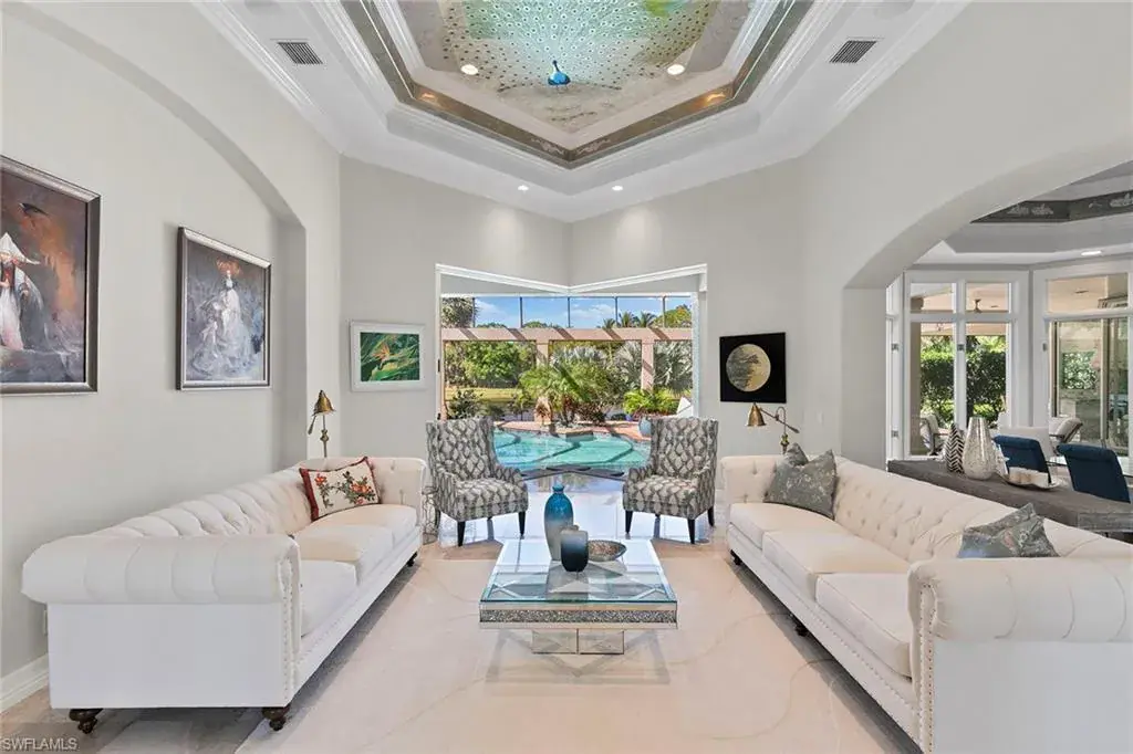 Nestled on a private homesite over 3/4 of an acre, this exceptional residence offers ultimate privacy and peace of mind, enhanced by a roof completed in 2018. Inside, state-of-the-art technology — including three touch panels, an iPad station, and 16 cameras — ensures your comfort and security. Enjoy the convenience of a private movie experience in your home theater, or convert this space into a FIFTH bedroom for extra guests. The stunning foyer is bathed in natural light through expansive glass walls, leading you into an open, airy living space. Zero-corner sliding doors offer seamless transitions between indoor and outdoor living, inviting you to the pool and outdoor entertaining area. The spacious kitchen, featuring a wet bar with an additional cooktop and wine cooler, is perfect for both casual dining and gourmet cooking. For the ultimate convenience, the three-car garage includes GarageTek flooring and an auto lift for a fourth car. With three generous guest suites, a home office with built-in desks, and a luxurious primary suite complete with a morning kitchen and ample closet space, this home is designed for those who appreciate both comfort and elegance. Imagine stepping onto the soft sands of the Gulf, with the tranquil waves lapping at your feet and the sky ablaze with a golden sunset. This is everyday life at Mediterra’s fully renovated, private Beach Club — reopening early summer! From the moment you arrive, your experience is effortless: valet parking, reserved lounge chairs, and umbrellas awaiting you, or set up on request for the ultimate beachside comfort. With 10,000 square feet of space, the Beach Club offers a variety of luxurious amenities, including indoor and alfresco dining, a full bar, a sparkling swimming pool, and changing rooms with lockers for your convenience. As the sun begins to set, indulge in a dinner while the vibrant colors of the horizon provide the perfect backdrop to your evening. Located within the exclusive, award-winning community of Mediterra, you’ll have access to a host of world-class amenities, including two Tom Fazio-designed golf courses offering unlimited afternoon play, pickleball, tennis, bocce, and so much more. Whether you’re enjoying a relaxing day at the Beach Club, playing a round of golf, or unwinding at home, nothing compares to the lifestyle Mediterra offers. Come, live the dream.