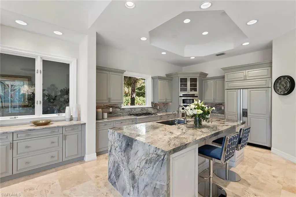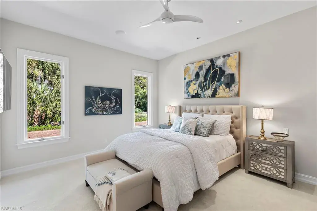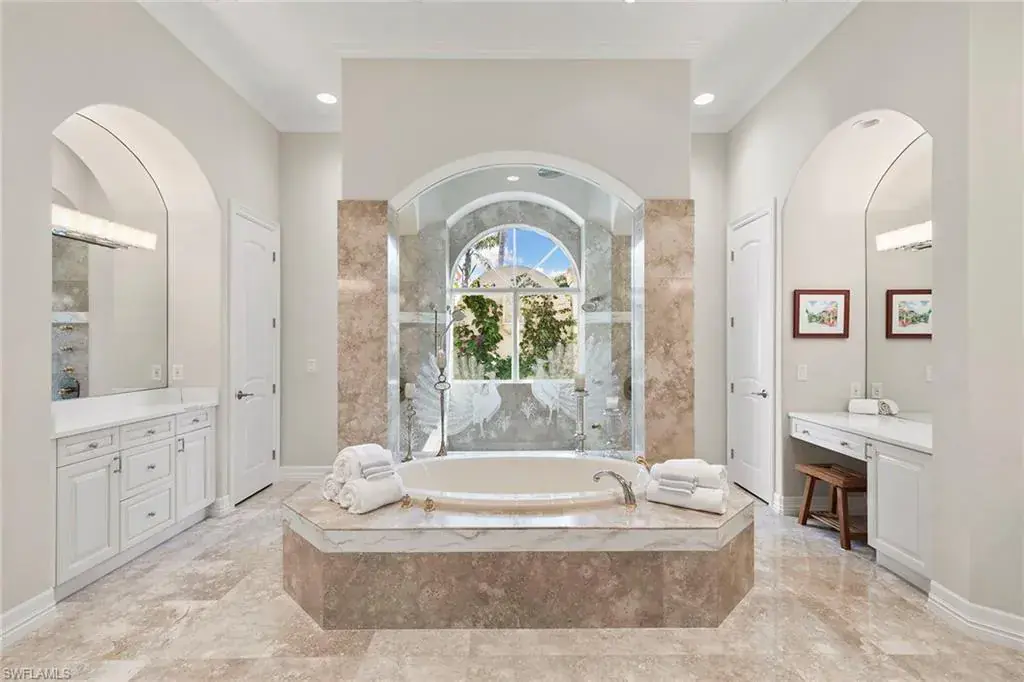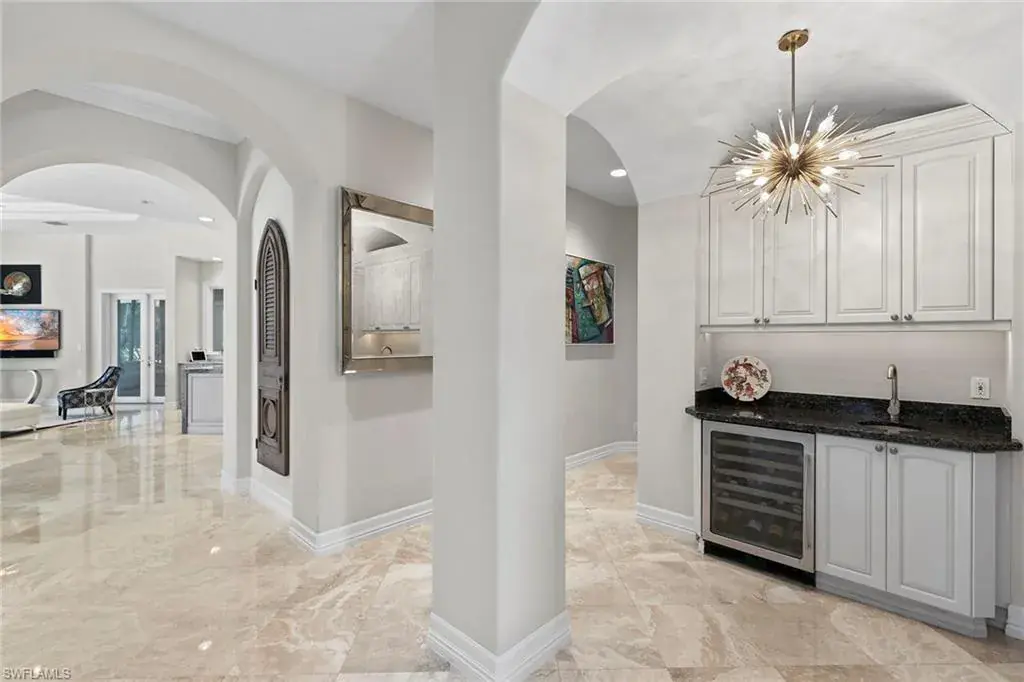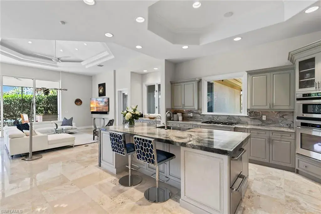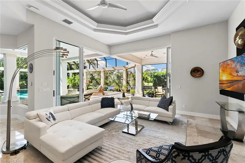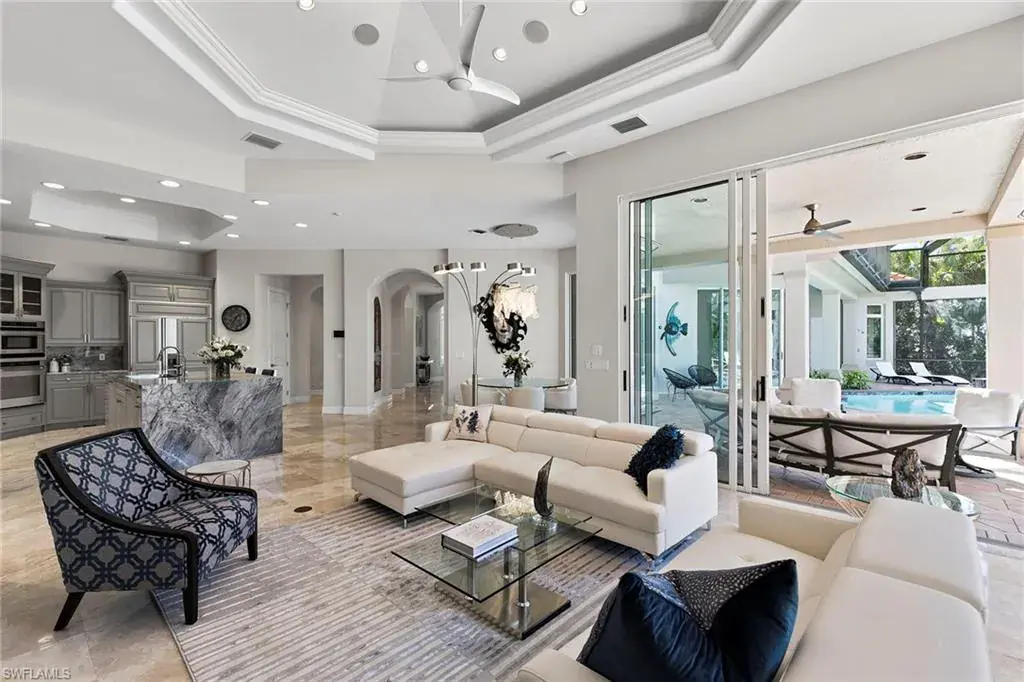 Nestled on a private homesite over 3/4 of an acre, this exceptional residence offers ultimate privacy and peace of mind, enhanced by a roof completed in 2018. Inside, state-of-the-art technology — including three touch panels, an iPad station, and 16 cameras — ensures your comfort and security. Enjoy the convenience of a private movie experience in your home theater, or convert this space into a FIFTH bedroom for extra guests. The stunning foyer is bathed in natural light through expansive glass walls, leading you into an open, airy living space. Zero-corner sliding doors offer seamless transitions between indoor and outdoor living, inviting you to the pool and outdoor entertaining area. The spacious kitchen, featuring a wet bar with an additional cooktop and wine cooler, is perfect for both casual dining and gourmet cooking. For the ultimate convenience, the three-car garage includes GarageTek flooring and an auto lift for a fourth car. With three generous guest suites, a home office with built-in desks, and a luxurious primary suite complete with a morning kitchen and ample closet space, this home is designed for those who appreciate both comfort and elegance. Imagine stepping onto the soft sands of the Gulf, with the tranquil waves lapping at your feet and the sky ablaze with a golden sunset. This is everyday life at Mediterra’s fully renovated, private Beach Club — reopening early summer! From the moment you arrive, your experience is effortless: valet parking, reserved lounge chairs, and umbrellas awaiting you, or set up on request for the ultimate beachside comfort. With 10,000 square feet of space, the Beach Club offers a variety of luxurious amenities, including indoor and alfresco dining, a full bar, a sparkling swimming pool, and changing rooms with lockers for your convenience. As the sun begins to set, indulge in a dinner while the vibrant colors of the horizon provide the perfect backdrop to your evening. Located within the exclusive, award-winning community of Mediterra, you’ll have access to a host of world-class amenities, including two Tom Fazio-designed golf courses offering unlimited afternoon play, pickleball, tennis, bocce, and so much more. Whether you’re enjoying a relaxing day at the Beach Club, playing a round of golf, or unwinding at home, nothing compares to the lifestyle Mediterra offers. Come, live the dream.