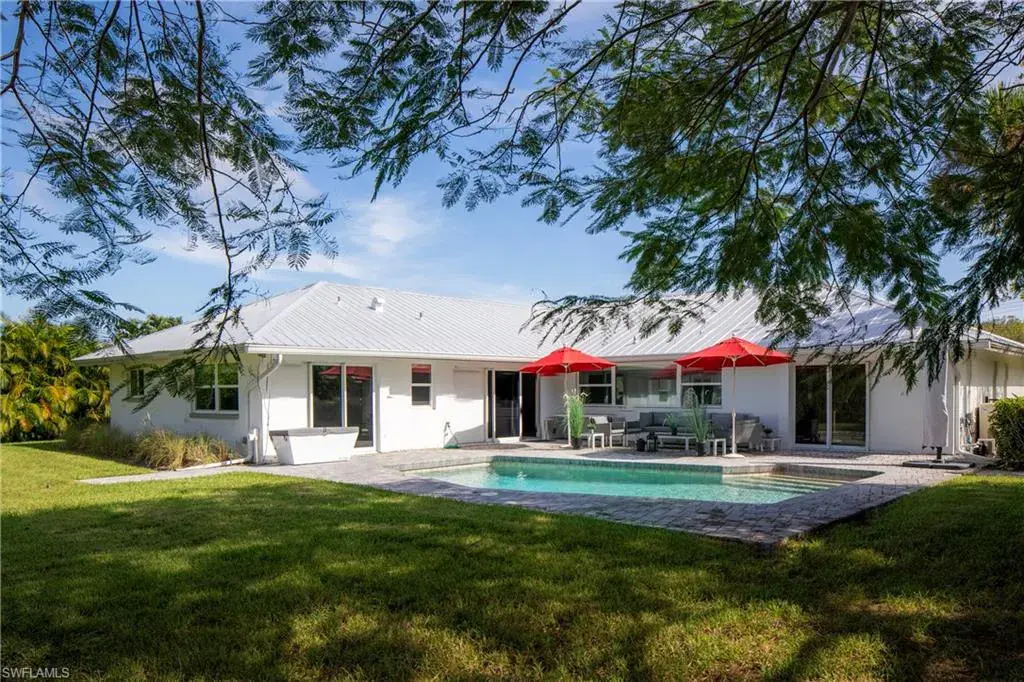 Enjoy the luxury of impact windows, a new metal roof, and a high-efficiency GE washer/dryer. The Western exposure fills the home with natural light and stunning sunset views. The expansive 14,374-square-foot estate sized lot offers a private oasis with a new paver patio, electric pool heater, and lush St. Augustine sod. Relax by the private pool or explore nearby white sand beaches and vibrant Mercato for shopping and dining. This pet-suitable fully fenced haven includes an attached garage, central AC and heating, and ample parking. Experience the ultimate in privacy and elegance.