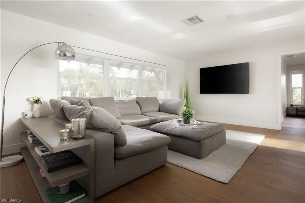 Welcome to 409 Cypress Way East, an exquisite custom home in sought after Palm River Estates, Naples, FL, masterfully remodeled by Latitude 26 Builders. Nestled in a central community with no mandatory HOA, this residence offers sunset golf course views and proximity to the beach, dining, and entertainment.
