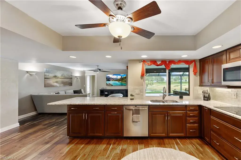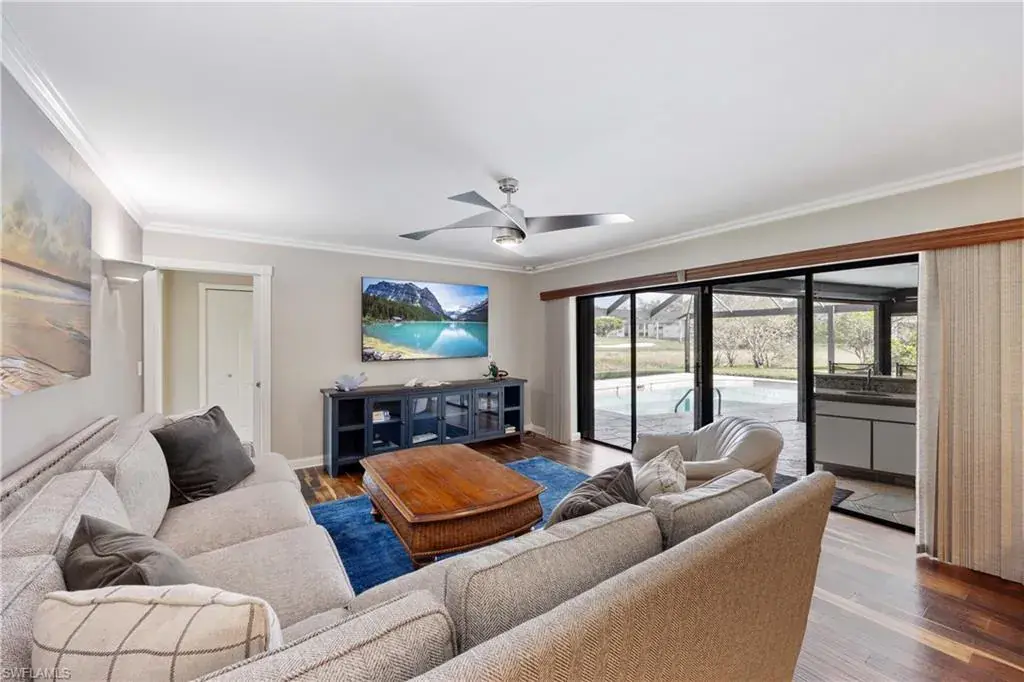PRICE ADJUSTMENT- Enjoy Naples living in this 3-bedroom split floor plan, 3-bathroom pool home, perfectly situated with stunning rear golf course views located in the Lely Country Club with one of the LOWEST HOA costs per year in Naples. This residence features many LARGE walk-in closets not seen in many homes, an open concept living, beautiful UPGRADED hard wood flooring, chair rail and crown moldings, IMPACT windows that flood the home with natural light. An UPDATED GOURMET kitchen has been completed with new stainless-steel appliances, including double wall oven, elegant finishes, and custom cabinetry that create a sophisticated atmosphere. The oversized private outdoor living area, with unobstructed views from the panoramic screened-in heated pool, outdoor kitchen area, plenty of seating options offered for your relaxation and entertainment. Enjoy serene views of the lush fairways of Royal Palm Golf Club right from your backyard. Easy access to Naples’ 5th Avenue finest dining, shopping, and white-sand beaches of Naples and Marco Island this exceptional home offers the best of Florida living in an unparalleled location. Seize the opportunity to make this dream home yours today!