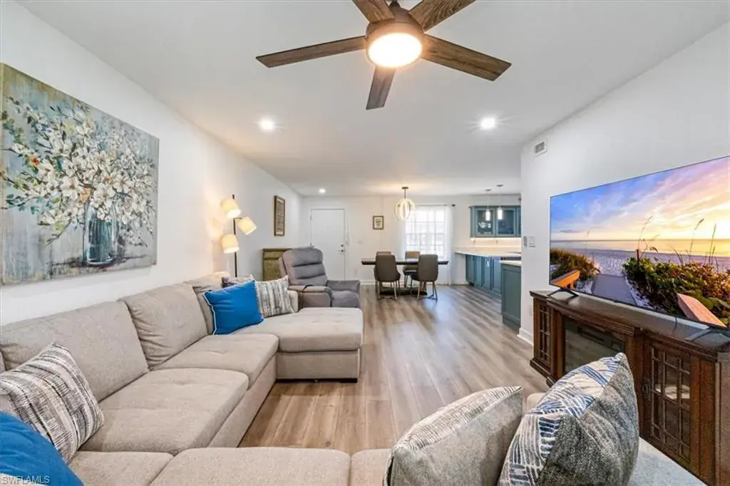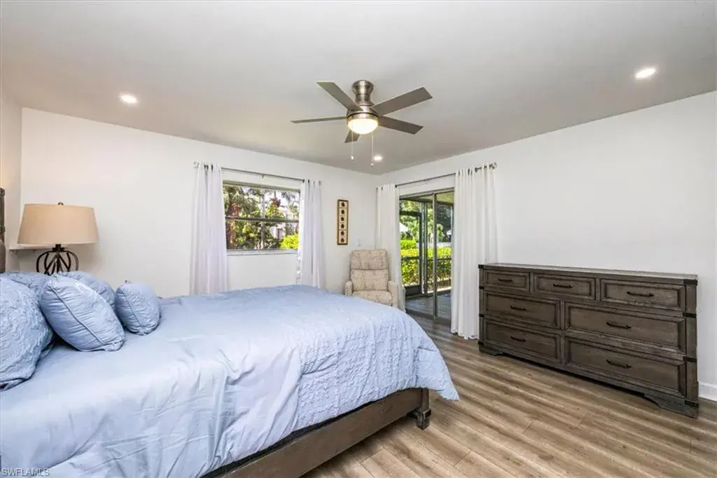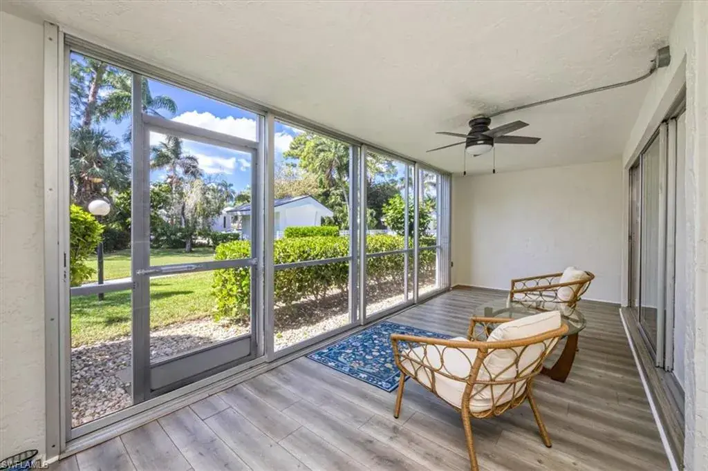 This charming furnished 2-bedroom, 2-bath end-unit condo is nestled in a small, quiet community in the heart of Park Shore. Completely remodeled, the home offers a light and bright open layout with luxury vinyl wood-look flooring and features a stunning kitchen with custom cabinetry, pullouts, a huge pantry, wine fridge, beautiful quartz countertops, and stainless steel appliances. The oversized primary suite includes a spacious walk-in closet and ensuite bath with dual sinks, custom cabinetry and a frameless, tiled walk-in shower. The guest bathroom has also been tastefully updated. Enjoy the large enclosed lanai overlooking lush landscaping for year-round enjoyment. Close it for additional air-conditioned living space or open the sliding doors to relax in the screened-in area. Just steps from the community pool and BBQ area, this home also includes a covered carport, guest parking, and bike storage. Perfectly located near shopping, dining, and downtown Naples, with optional membership to the Park Shore Association offering private beach park access.