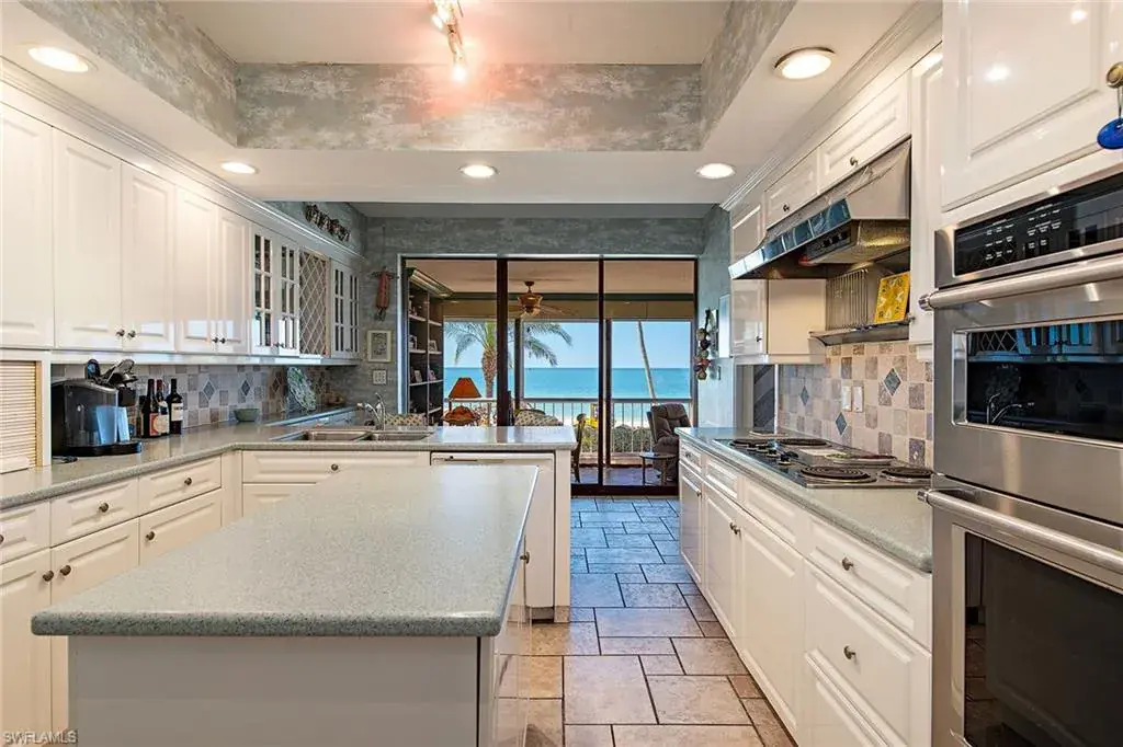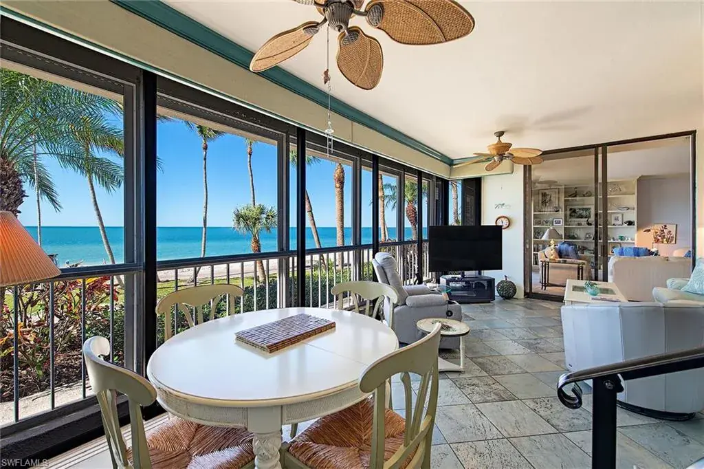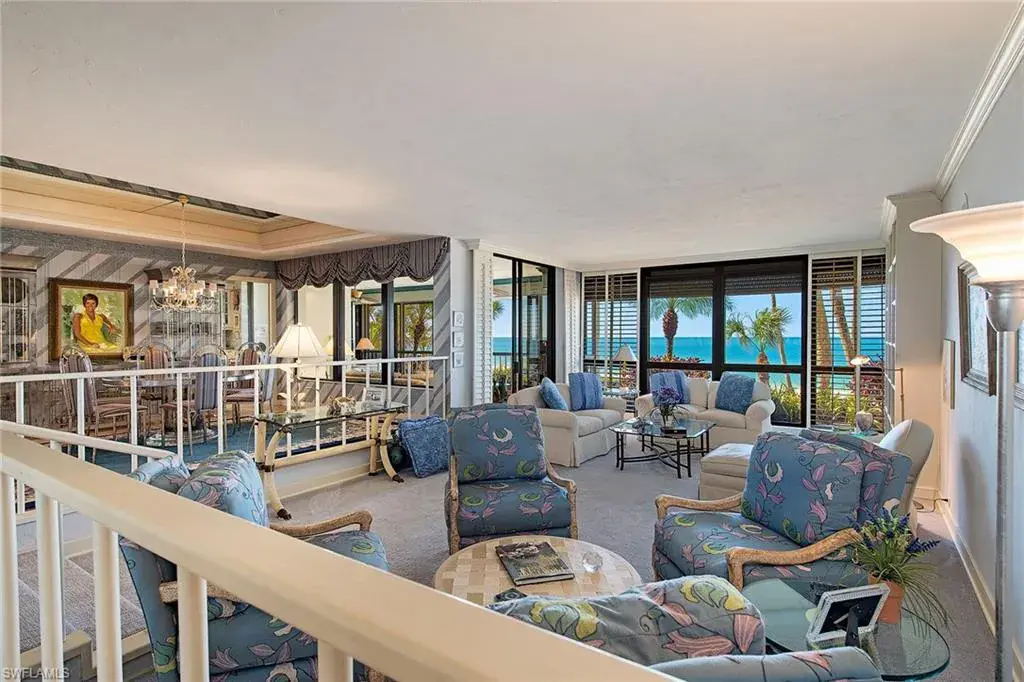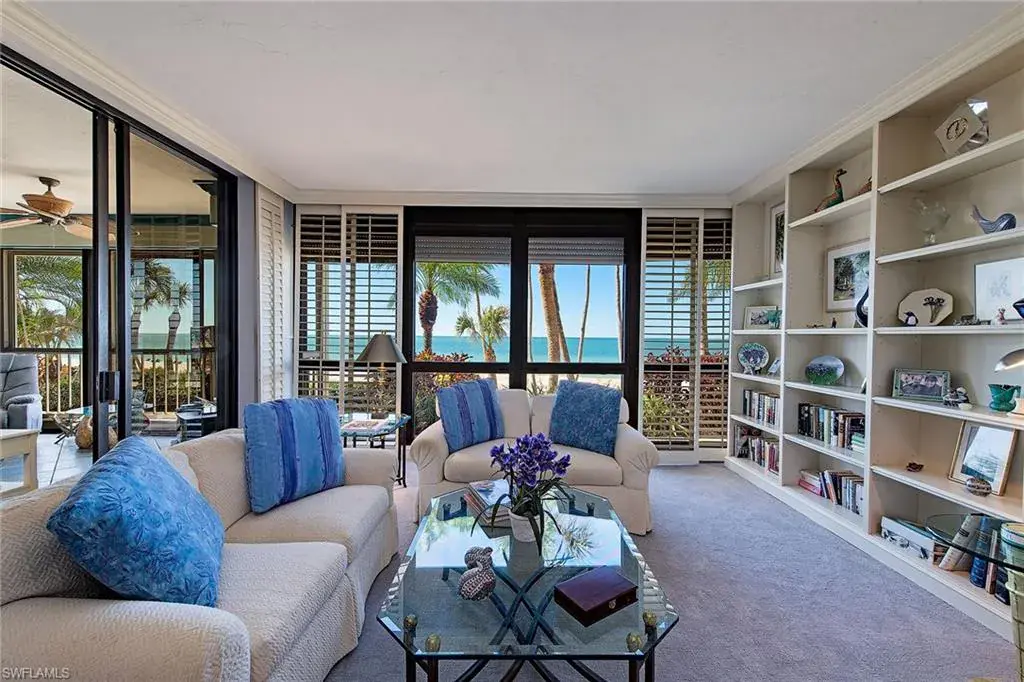 Beach house-level Park Plaza residence right at the water’s edge with picturesque Gulf views day and night. The expansive lanai lives like a family room and is perfect for listening to the sounds of the surf and taking in spectacular sunsets. Gracious-size rooms with high ceilings and every single room has mesmerizing Gulf views to gaze upon all day. This charming residence has been well-loved and is ready for someone else to make it their own special place. It offers all of the benefits of high-rise living yet lives like a beach house with steps to the pool and beach from the second floor if one doesn’t want to use the elevator. Rarely available #02 residence overlooking the beach in the heart of Park Shore with two parking spaces in the garage. All residences in Park Plaza have a sunken living room with steps. Lots of activities include a fitness center with sauna and heat bath, tennis, pickleball, new pool coming this summer, rooftop lounge +sun deck, social room, 24-hour gated security and a beautiful stroll to Venetian Village for lunch or dinner.