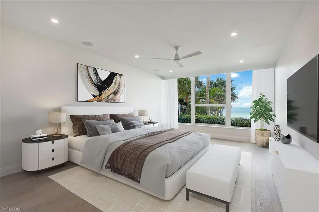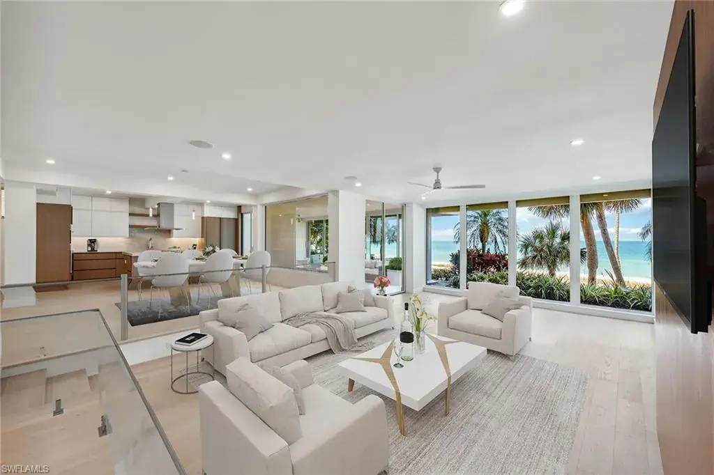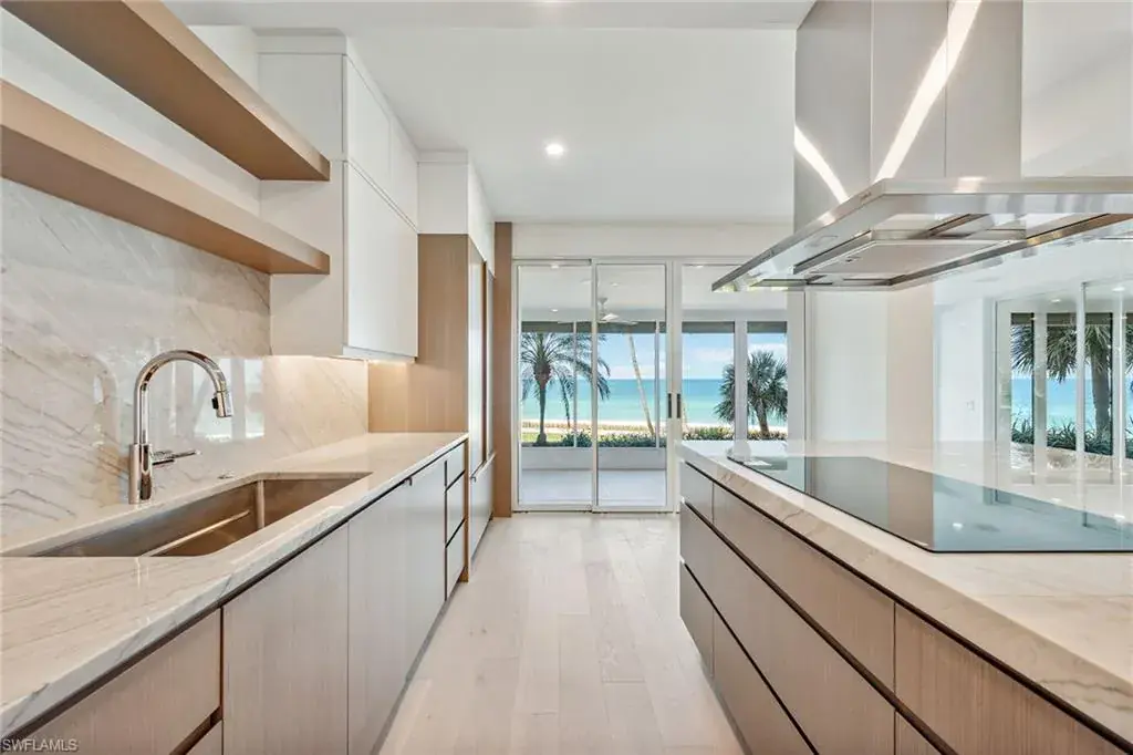 Indulge in luxurious beachfront living in this completely remodeled and redesigned 2nd-floor residence in Park Plaza of Park Shore. Stunning direct Gulf views welcome you as soon as you walk in the door and can be enjoyed from every room through floor-to-ceiling windows and sliders. The open kitchen highlights stainless steel JennAir and Bosch appliances, quartzite countertops, a large island with an induction cooktop, custom cabinetry, refrigerated drawers and breakfast bar. Other notable features include engineered wood flooring throughout, marble countertops in all 3 en-suite bathrooms, recessed and pendant lighting, and so much more. Plus, upgraded plumbing and electrical, all new ductwork, HVAC system, water heater and impact windows and sliders. For added security and convenience there is a secured entrance and onsite management and staff. Residents can enjoy luxury amenities, including a rooftop club room and terrace, a theater and billiards room, fitness room, saunas, pickleball and tennis courts, extra storage, guest suites, and the Park Shore promenade – 1.3-mile paved path to stroll along the beach. Park Plaza will soon have a fully redesigned pool deck with a brand-new pool, spa, grills, pavilion, terrace and social room. Owners can lease their units twice a year with a 90-day minimum. Boaters can purchase or lease a slip from Venetian Bay Yacht Club, and after a day on the water, walk to Venetian Village to indulge in incredible shopping & dining.