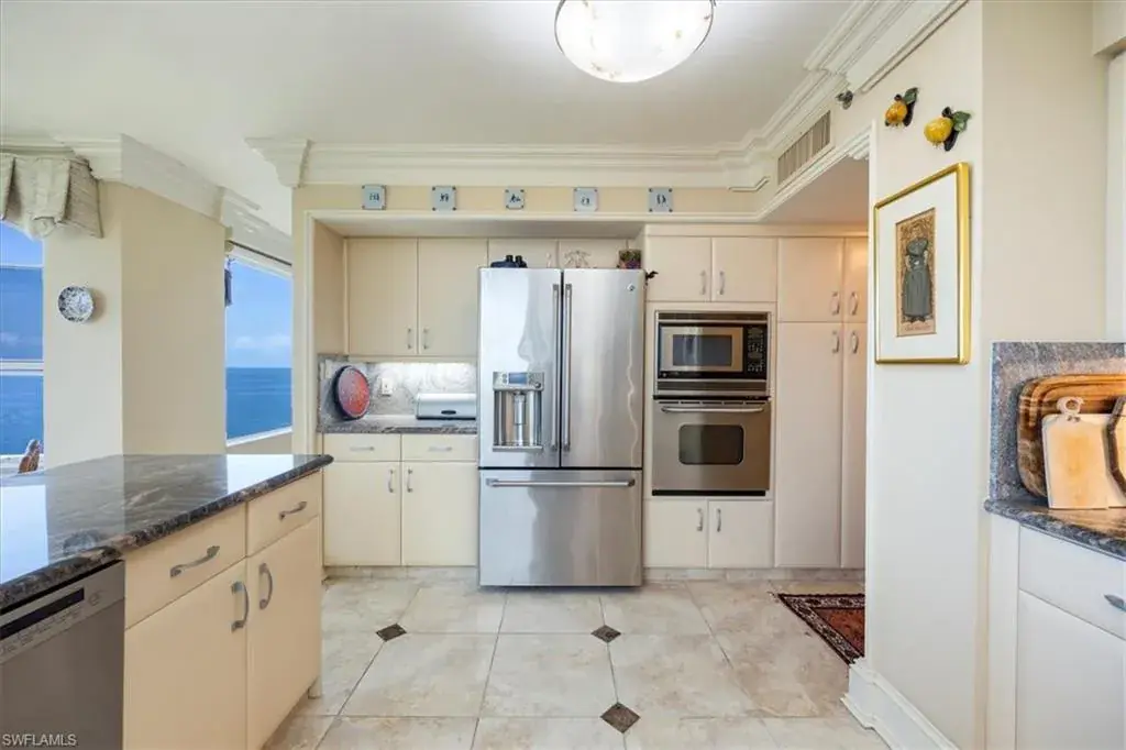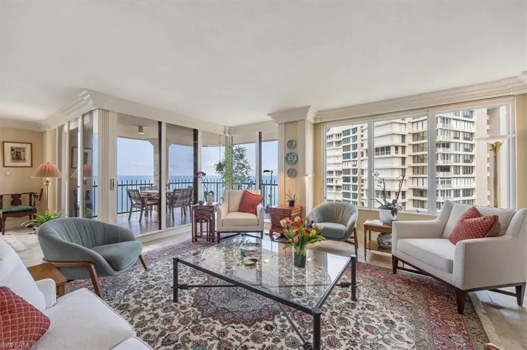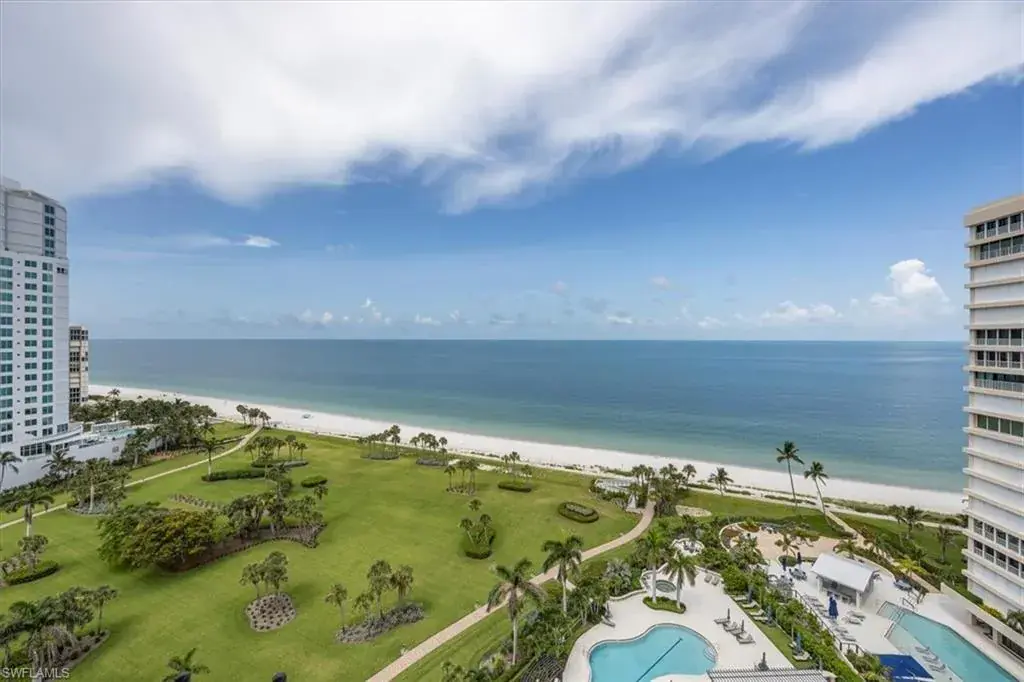 Welcome to this breathtaking Gulf-front residence, perched on the 17th floor of the prestigious Park Shore Tower. Walls of glass fill the space with natural light and frame panoramic views of the coastline. This expansive residence offers a bright, open layout designed for both elegant entertaining and everyday comfort. The kitchen boasts stunning views and is outfitted with granite countertops, stainless steel appliances, and elegant lighting fixtures. The spacious primary suite is a private oasis, featuring a spa-inspired bath wit tiled walk-in shower, soaking tub, bidet, and a customized walk-in closet. Step onto your private balcony to savor your morning coffee while taking in serene views and coastal breezes. The thoughtfully designed floor plan includes a guest suite with an en-suite bath and a third bedroom or office with a private bathroom, which can also function as a powder room for guests. At the end of the day, unwind on the south-facing lanai and watch the sun dip below the Gulf horizon—your front-row seat to spectacular sunsets. Additional highlights include under-building parking, storage, and access to a host of upscale amenities at Park Shore Tower: 24-hour security, a welcoming lobby, fitness center, and a newly updated pool area with a beachfront clubhouse. Just a short stroll away, enjoy the charm and energy of Venetian Village, with its sparkling lights, dining, and boutique shopping. Waterside Shops, Old Naples, and Mercato are also just minutes away. This exceptional residence blends timeless elegance with a relaxed, move-in-ready lifestyle—your perfect coastal sanctuary awaits.