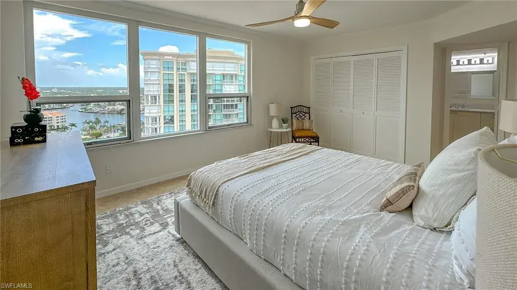 This gorgeous luxury beachfront condo is located on the 18th floor with breathtaking views of the beach, ocean and the bay! Park Shore Tower was designed to be a relaxing tropical paradise in the prestigious Park Shore. This home has been meticulously updated and is move-in ready! New quartz countertops take center stage in the kitchen. Large, beautifully updated master bathroom with new soaking tub, custom walk-in closet with built-ins, & fantastic view of the beach from the master bedroom to enjoy the sunsets. Your guests will also enjoy a spectacular ocean view from their guest suite. Impact glass & sliders with storm-shuttered balcony. Park Shore Towers offers a manned gate entrance, 24-hour security & a resident manager. Amenities incl. a Fully Renovated beachfront pool & fitness facility, spa, BBQ facilities, men’s & women’s saunas & showers, bike storage, a beautiful community room, a vehicle wash, and more! Walking distance to the Venetian Bay Yacht Club & The Village on Venetian Bay for 5-star shopping & dining.