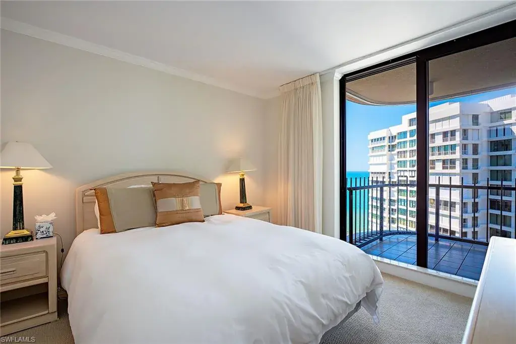 Enjoy expansive Gulf views from this sought-after and rarely available “D” residence. Positioned closest to the water and considered the premium stack in the building, this 2,252 square foot floor plan features an entry foyer, cozy breakfast nook, living and dining room with wet bar, 3 bedrooms and 3 full baths. The two unscreened terraces provide exceptional views of sunsets and sea life. Park Shore Tower amenities include 24-hour gated access and building attendant, a separate poolside clubhouse, exercise facility, additional storage and a two-bedroom, two-bath guest suite. The resort-like pool area has been renovated and includes grills and fire pit area. Stroll to Venetian Village for upscale shopping, dining and entertainment. Waterside Shops and Old Naples are a short drive from this prime central beachfront location. Boat docks are available across the street for lease or sale (subject to availability).