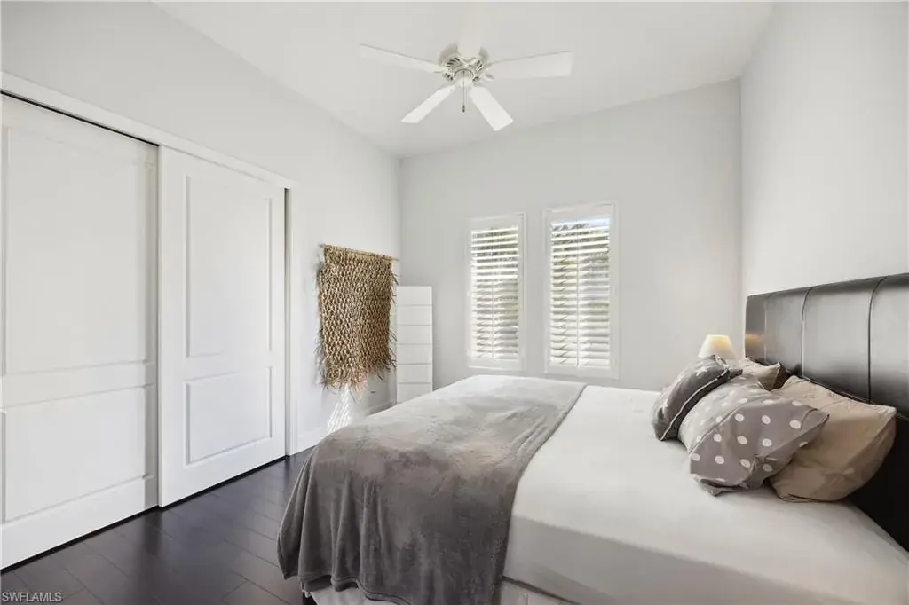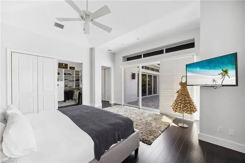 Inside, every detail speaks of luxury and precision. Rich wood flooring pairs beautifully with sleek white cabinetry, Silestone countertops, and professional-grade JennAir appliances. The serene primary suite is a private sanctuary featuring three custom-organized closets and a spa-inspired bath offering the ultimate in relaxation.