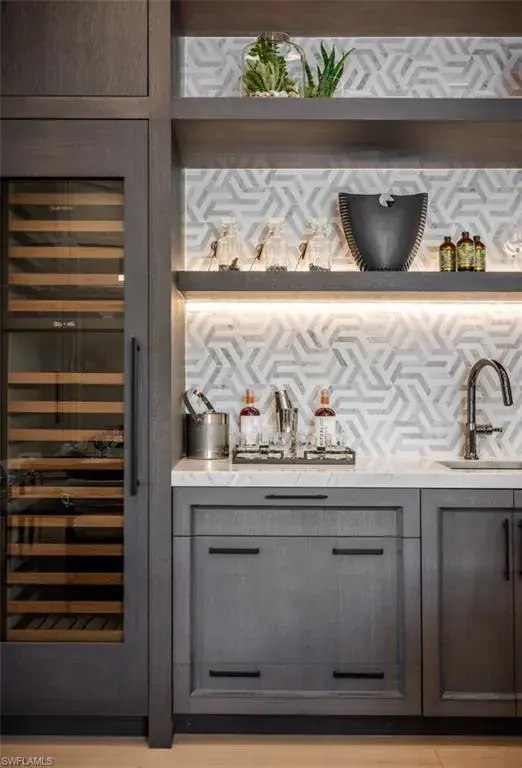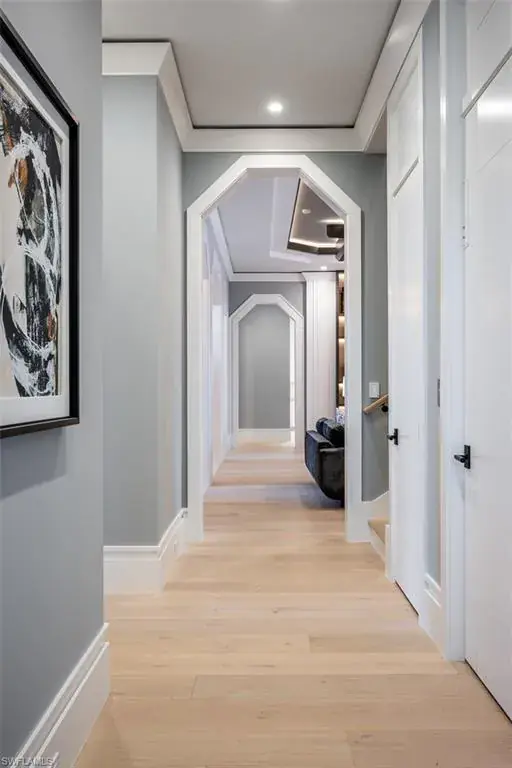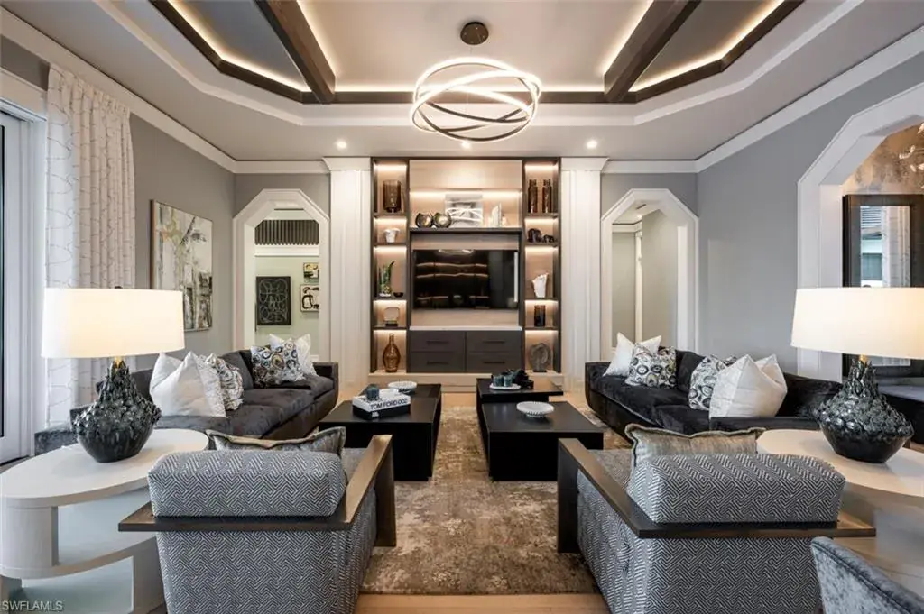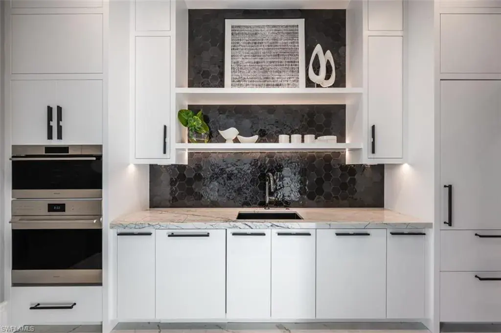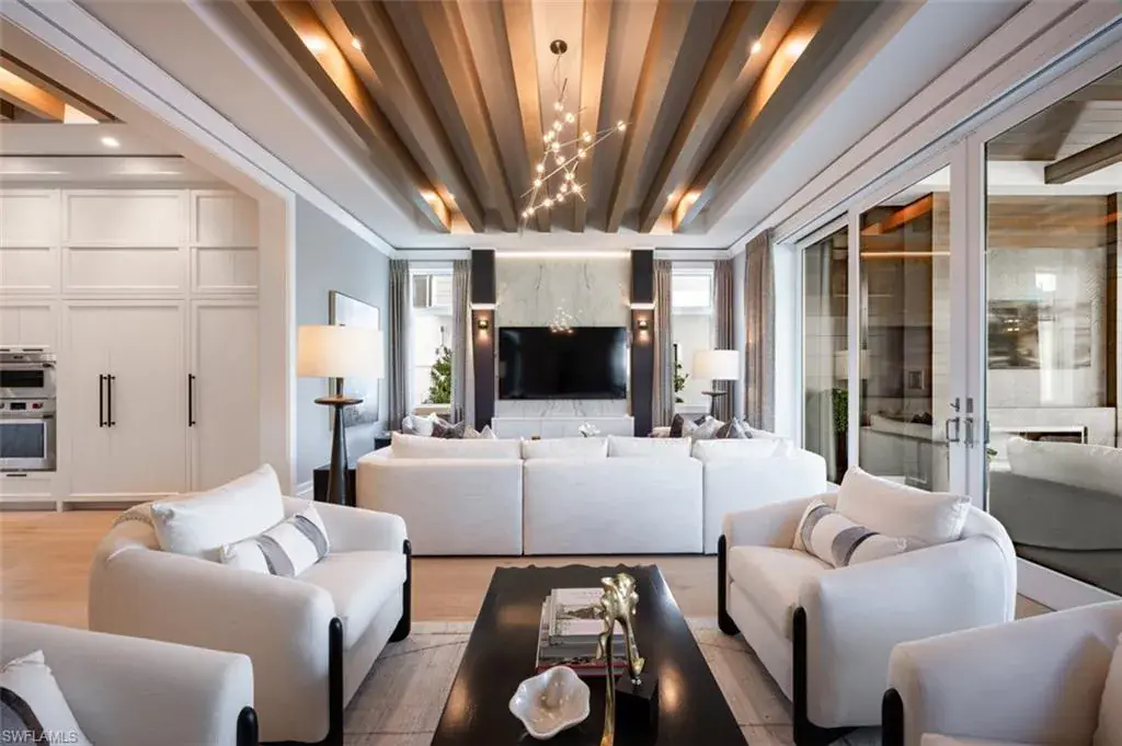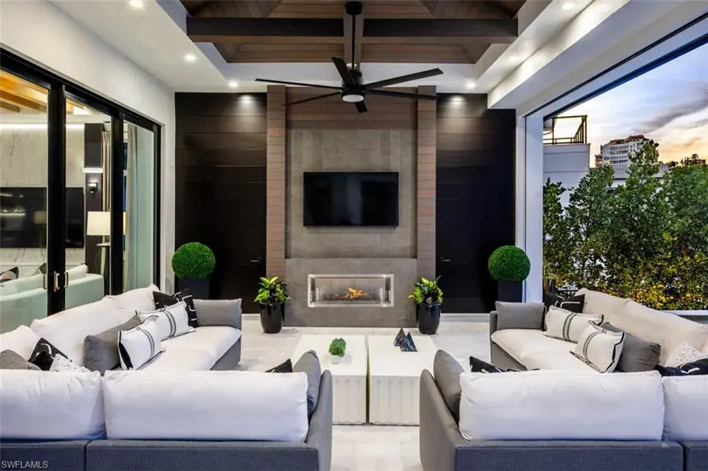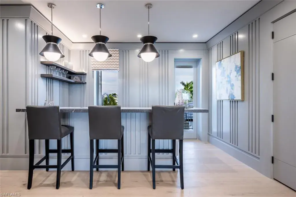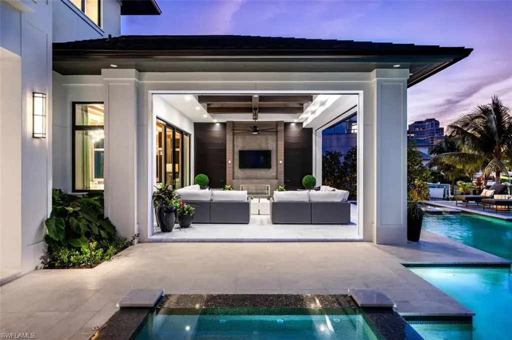 Indulge in the pinnacle of coastal luxury with this spectacular new-construction estate, perfectly positioned on the shimmering bay in prestigious Park Shore. Masterfully crafted to evoke the ambiance of a world-class resort, this breathtaking residence blends architectural excellence with sweeping white-water views, creating an unmatched living experience in one of Naples’ most coveted waterfront enclaves. From the moment you enter, walls of glass draw your eye directly to the bay. Every room is thoughtfully designed to blur the line between indoors and out, capturing the essence of elevated Florida living at its finest. The primary suite is a sanctuary of indulgence—an expansive retreat featuring a tranquil sitting area and spa like bath offers a true rejuvenation experience with multiple showerheads, exquisite stonework, and custom cabinetry that showcases both craftsmanship and elegance. Massive walk-in closets with beautifully executed built-ins provide unparalleled storage and display. The culinary spaces are equally extraordinary. Anchored by a professional gas range and multiple ovens, the showstopping chef’s kitchen is complemented by a full butler’s kitchen, walk-in pantry, beverage center, and an elite suite of top-tier appliances. Multiple dining areas—both formal and casual—flow seamlessly into sophisticated gathering spaces enhanced by custom fireplaces, designer lighting, soaring ceilings, and impeccable architectural detail. The outdoor living experience rivals the world’s finest resorts. Vast, covered terraces overlook the wide bay, inviting you to unwind in multiple lounge and conversation areas. The outdoor kitchen is fully equipped for open-air entertaining, while the resort-style pool—framed by panoramic water views—creates a dramatic focal point that transforms each sunset into a private show. A private elevator, four-car garage, loft area, executive office, and beautifully appointed guest suites complete this one-of-a-kind offering. Every finish has been curated with precision, every detail executed to perfection, and every space designed to elevate your lifestyle. This is more than a home—it is a statement of luxury, craftsmanship, and refined waterfront living, delivering the ultimate resort-style experience in the heart of Park Shore. Brought to you by Knauf Koenig Builders, Falcon Design Inc. and Clive Daniel Homes.