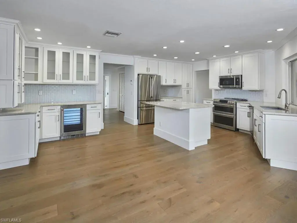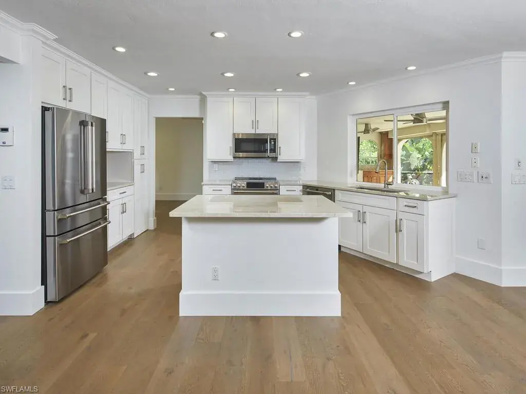 Coastal Charm Meets Park Shore Luxury! Discover the ultimate Naples lifestyle in this lakefront gem located in the prestigious Park Shore community—just a short walk to the beach, Venetian Village, and Waterside Shops offering world-class shopping and dining.This beautifully maintained home features a remodeled kitchen and guest bath, new appliances, spacious living and family rooms, hardwood flooring, and impact-resistant windows and sliding doors throughout. The expansive covered lanai with a summer kitchen and screened pool area provides the perfect setting for entertaining, relaxing by the water, or enjoying the stunning sunrise and sunset views over the lake. Move right in, use as a luxury rental investment, or build your dream home on this highly sought-after lakefront lot—priced at lot value for exceptional opportunity and upside potential. Park Shore residents enjoy access to the private Park Shore Beach and the ability to rent or purchase boat slips along Gulf Shore Blvd. Your piece of Naples paradise awaits!