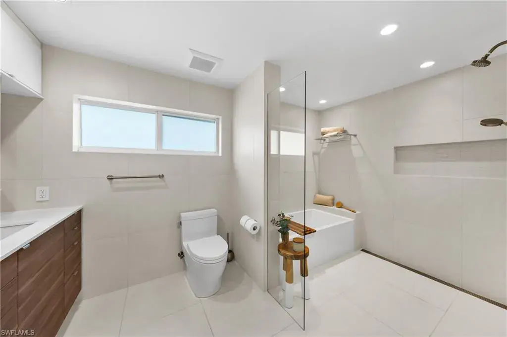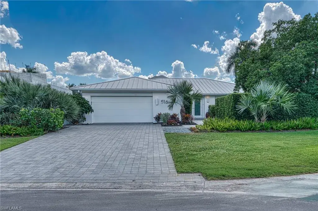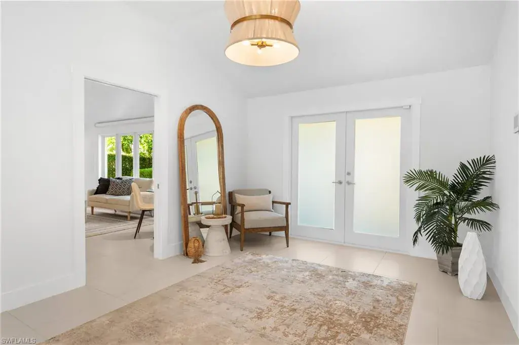 Indulge in a residence where chic sophistication meets serene comfort and luxury. This gorgeous Park Shore three bedroom plus Den and two bathroom, nearly 2,400 Sq. ft of living space, heated pool home leaves nothing to be desired with no stone left unturned with curb appeal that leaves a lasting impression. Situated WEST of US 41, you are just a short drive to the private beach afforded to Park Shore residents, Venetian Village, and tons of other shopping and dining options nearby. Greetings from the French door entryway lead you to the foyer with the den to the right and the kitchen straight ahead. The entertainer and chef alike in you will love the gorgeous kitchen with its oversized quartz island and spillway, modern appliances, coffee bar, and plentiful cabinet and counter space. Impeccable flow is enjoyed from the kitchen to the large living area with a separate wet bar which is flooded by natural light from the doors leading out to the enclosed lanai and pool area. The primary bedroom is a true retreat after a sun filled day with your double vanity, separate glam counter, walk-in closet (with built-ins) and seamless shower and tub. The den along with the two guest bedrooms enjoy tons of natural light along with easy access to the second full bathroom. Your private enclosed lanai with its gorgeous heated pool is the perfect setting for an evening spent at home or a gathering. The grounds beyond the portrait screens are stunning and will leave even the most discerning landscape architect green with envy. Sip your morning coffee or tea out on the front courtyard sequestered by mature and tall hedges and a gorgeous stately tree. Peace of mind is enhanced with tile flooring throughout, laundry in residence (with 2 laundry tubs, 2 car garage, and built in shelving in the garage as well. This property sits just 10 minutes from famed 5th Ave S, a 5 minute drive to the beach, and a top rated school system.